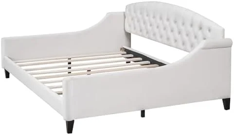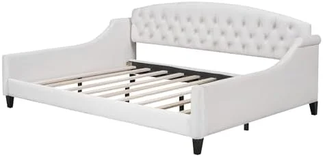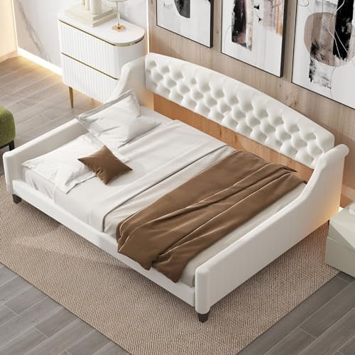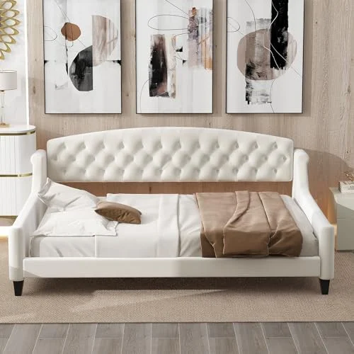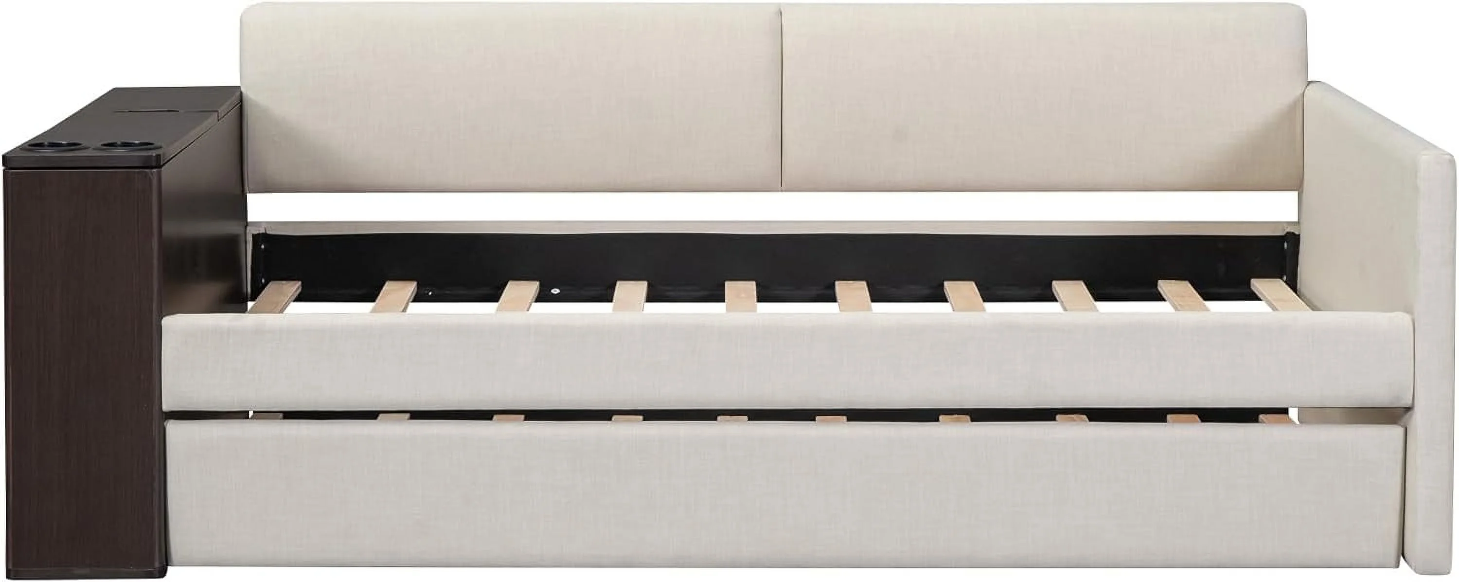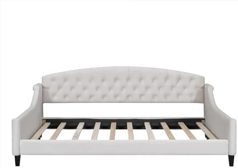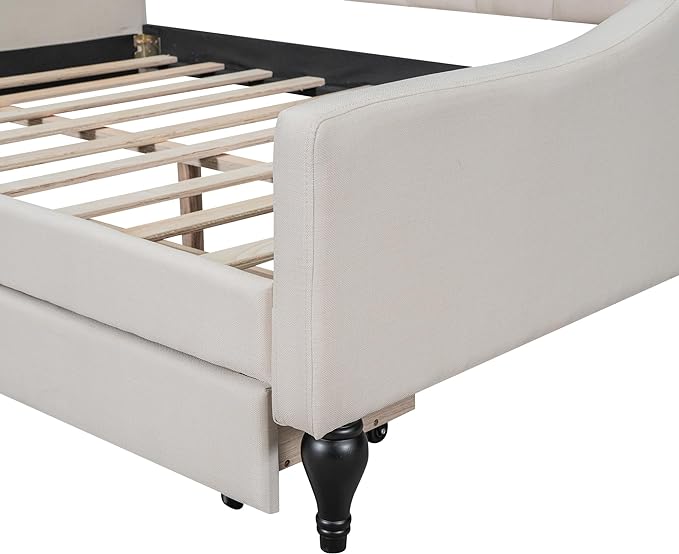 RUNFAYBIU Twin Size Daybed with Trundle Upholstered Twin Daybed Frame Sofa Bed for Bedroom Living Room Beige
