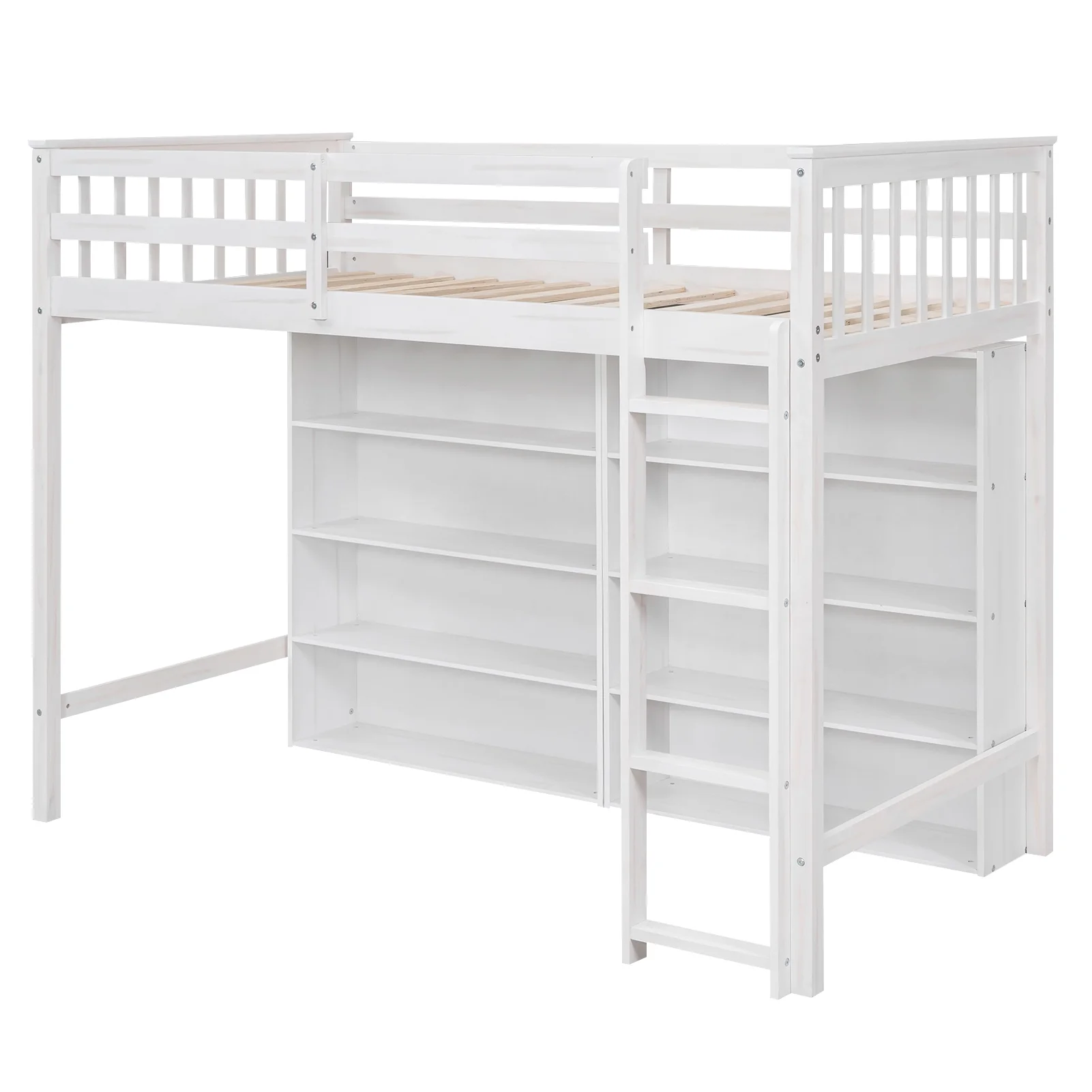 CoSoTower Twin Size Loft Bed with 8 Open Storage Shelves and Built-In Ladder, White