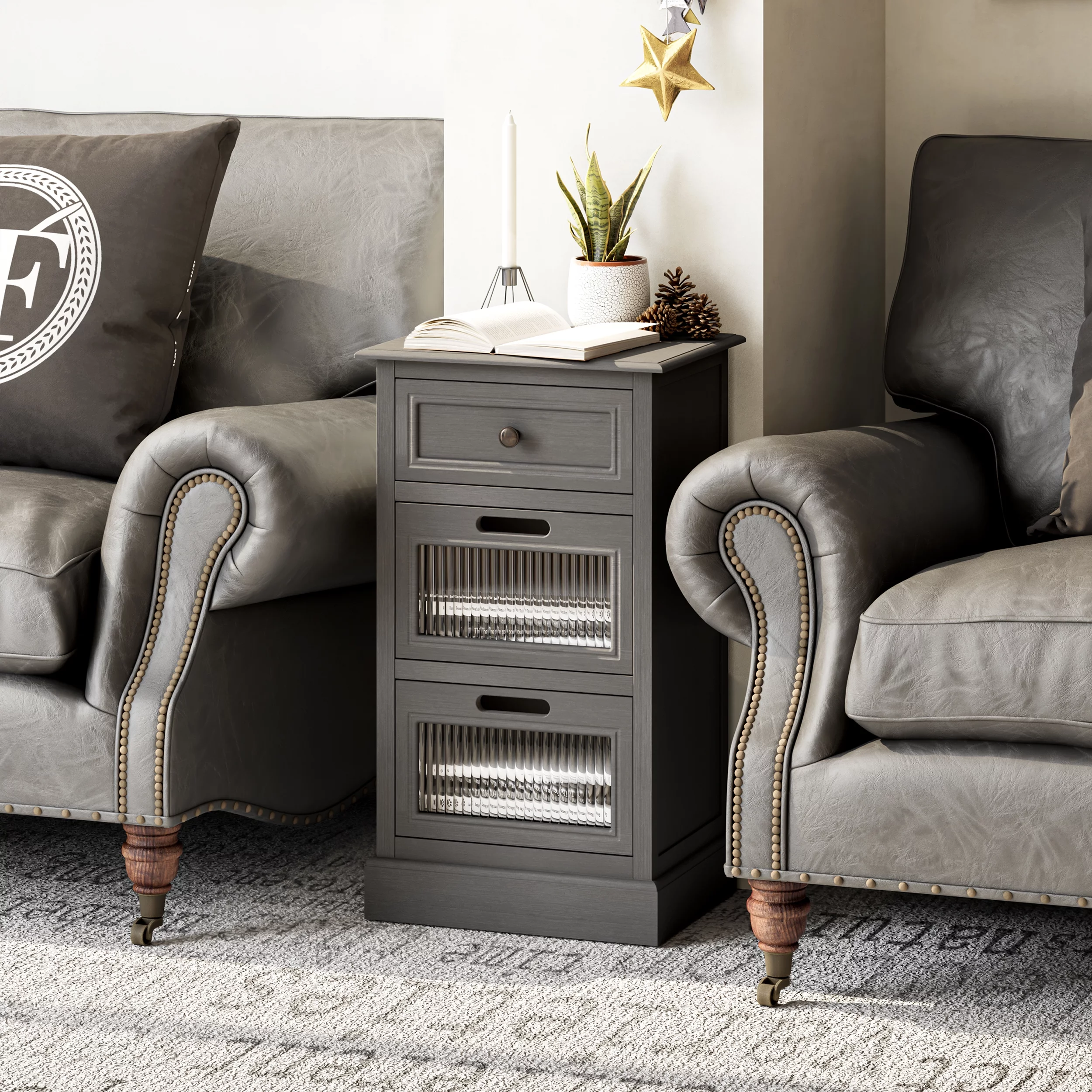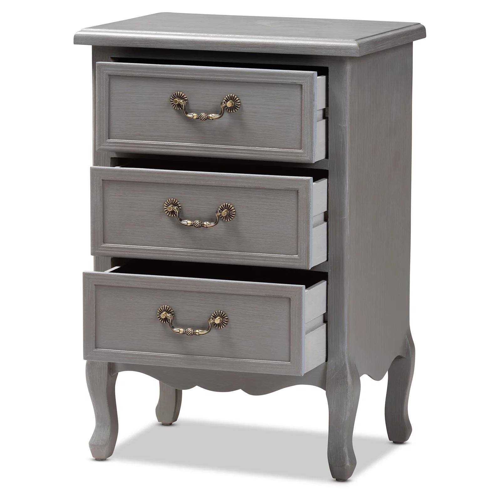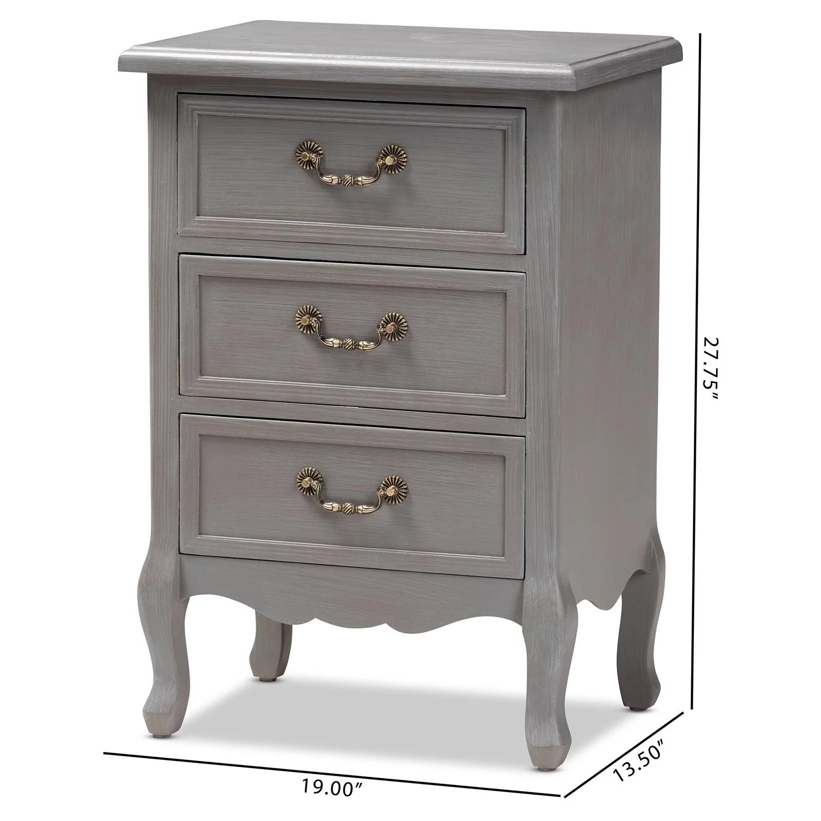 Baxton Studio Capucine Antique French Country Cottage Grey Finished Wood 3-Drawer End Table