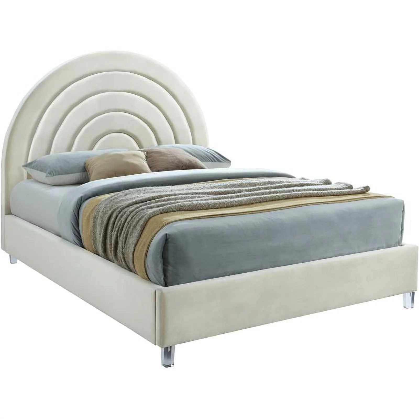 Maklaine 59.5''H x 60''W x 76.4''D Cream Velvet Full Bed in Acrylic Finish
