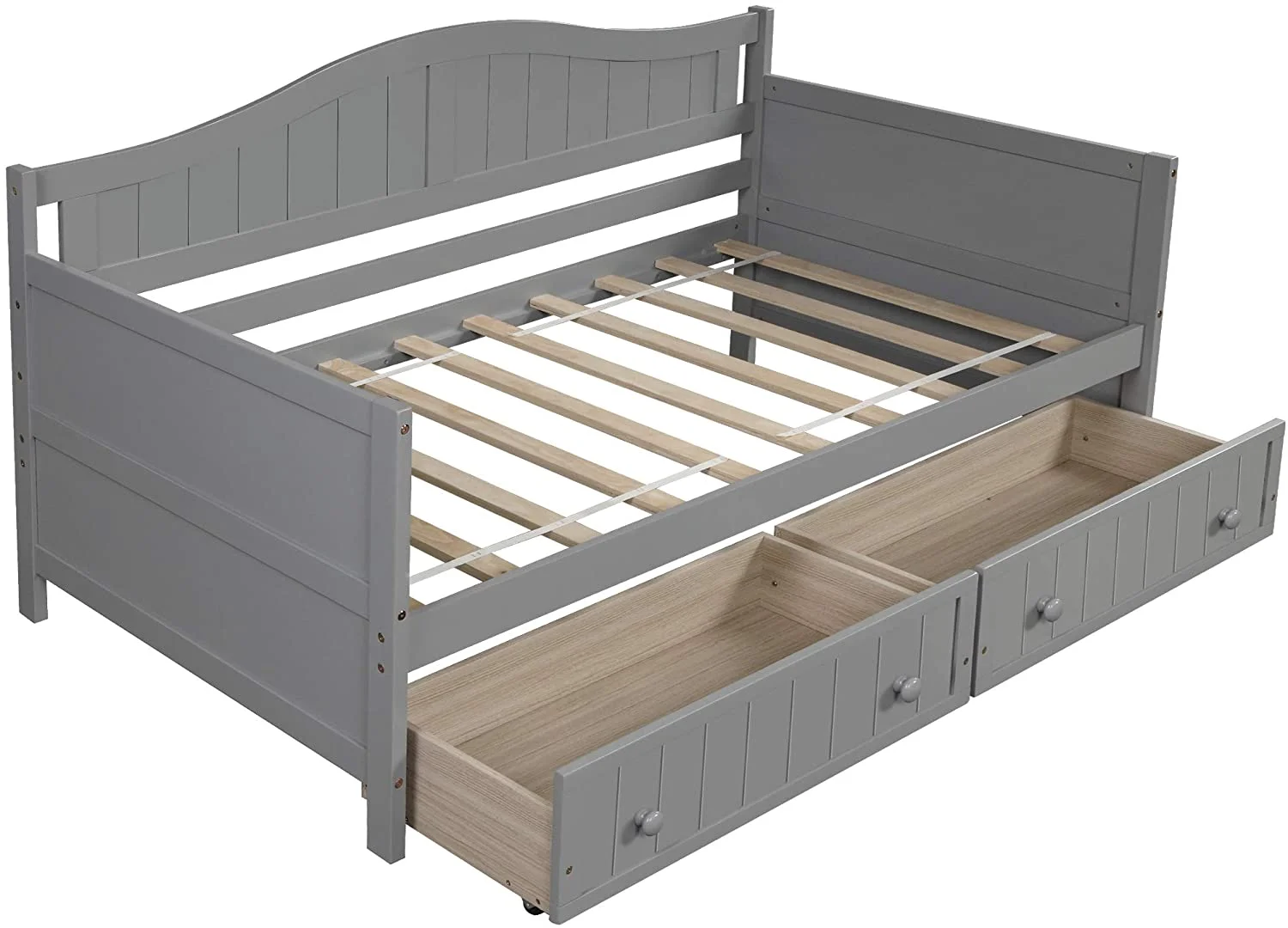 YGDU Twin Size Wooden Daybed with 2 Drawers for Bedroom Living Room,No Box Spring Needed,Gray