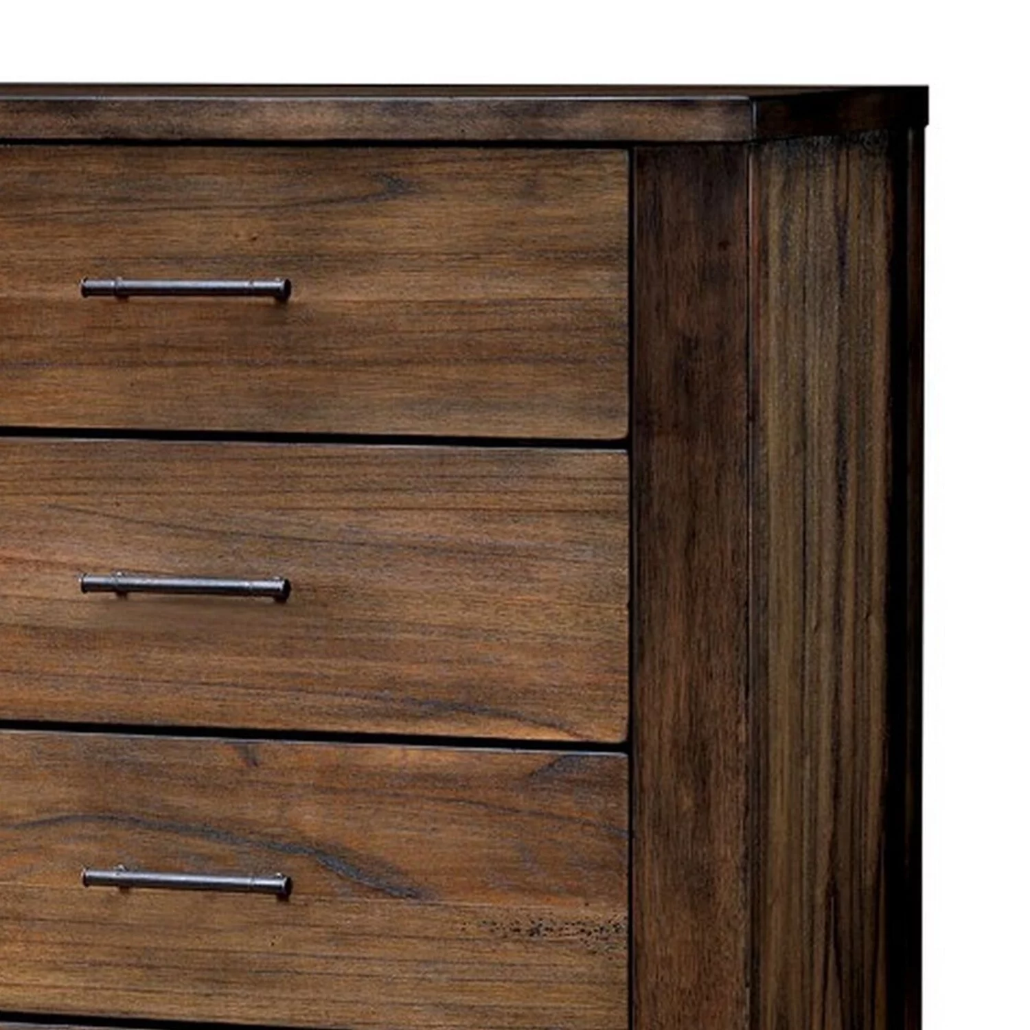 Benzara 5 Drawers Transitional Wooden Chest with Antique Bar Pulls, Rustic Brown