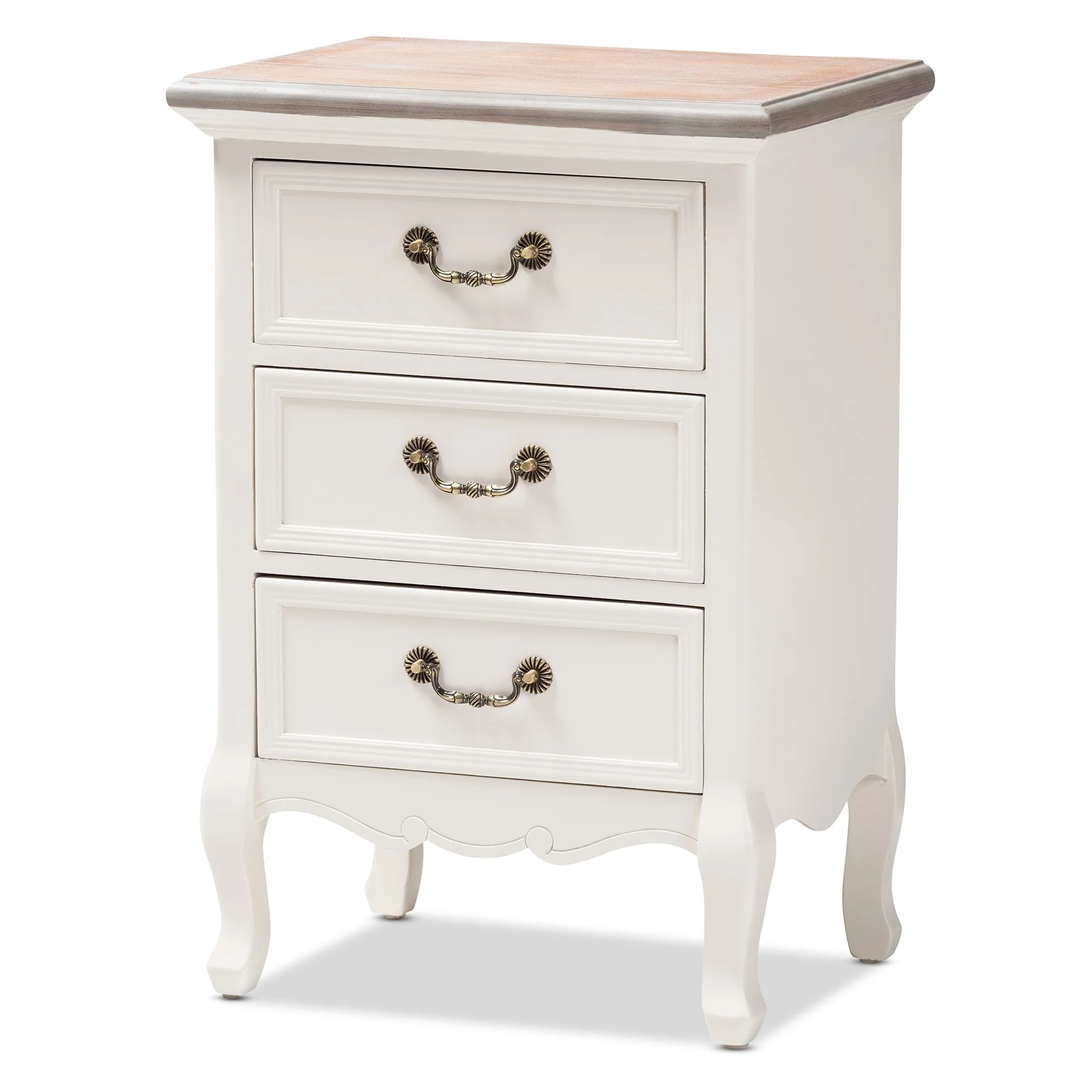 Baxton Studio Capucine Antique French Country Cottage Wood 3-Drawer End Table Grey
