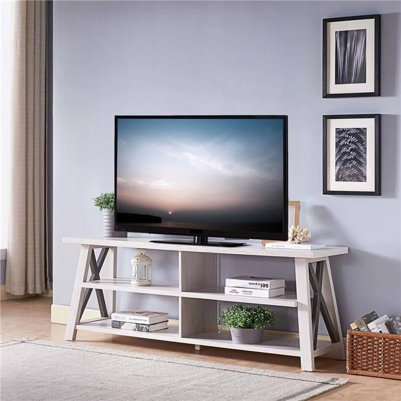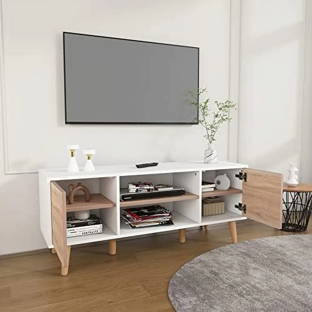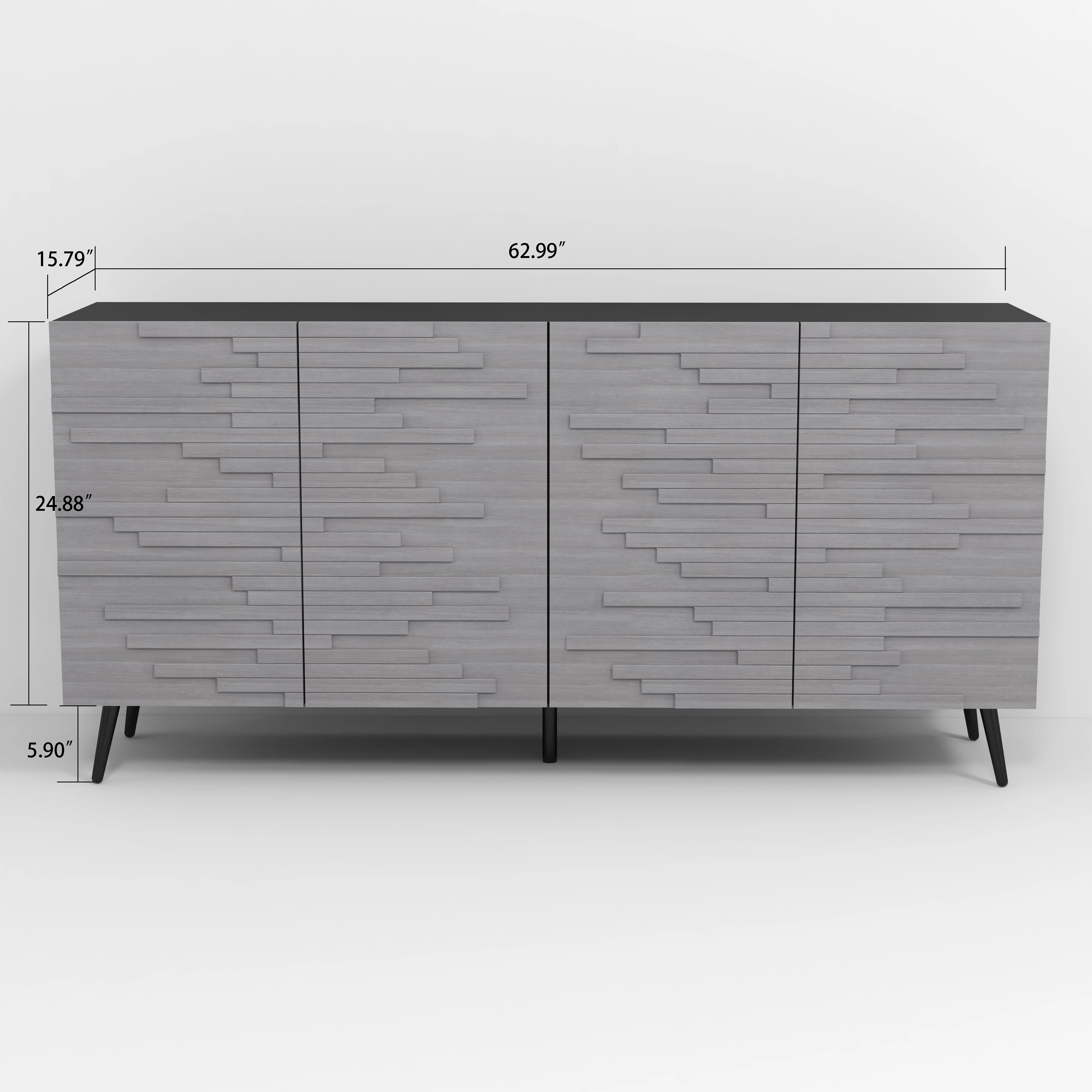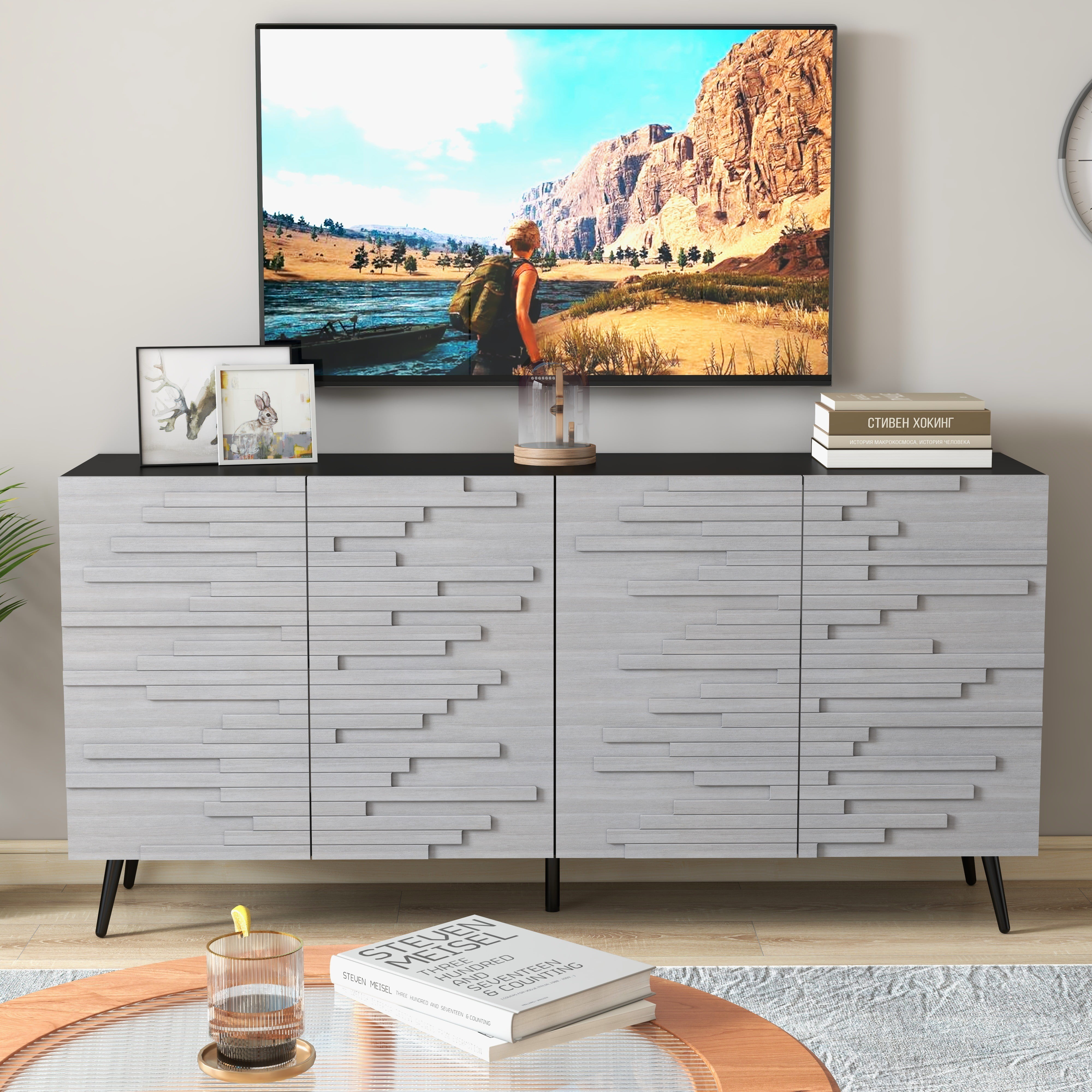 Twin Fins Modern Rustic 63-Inch Black TV Stand Cabinet - Fits Up to 65" TV