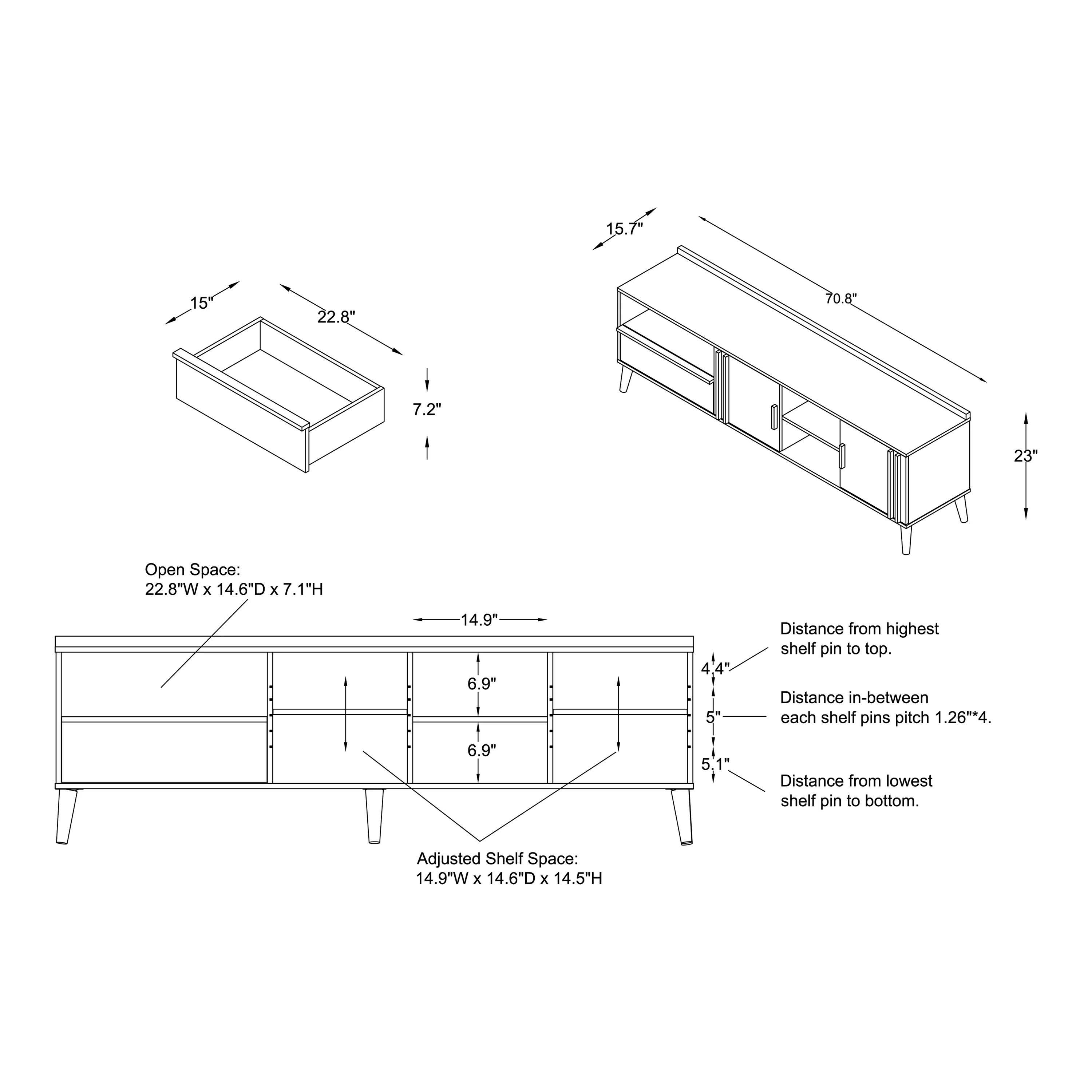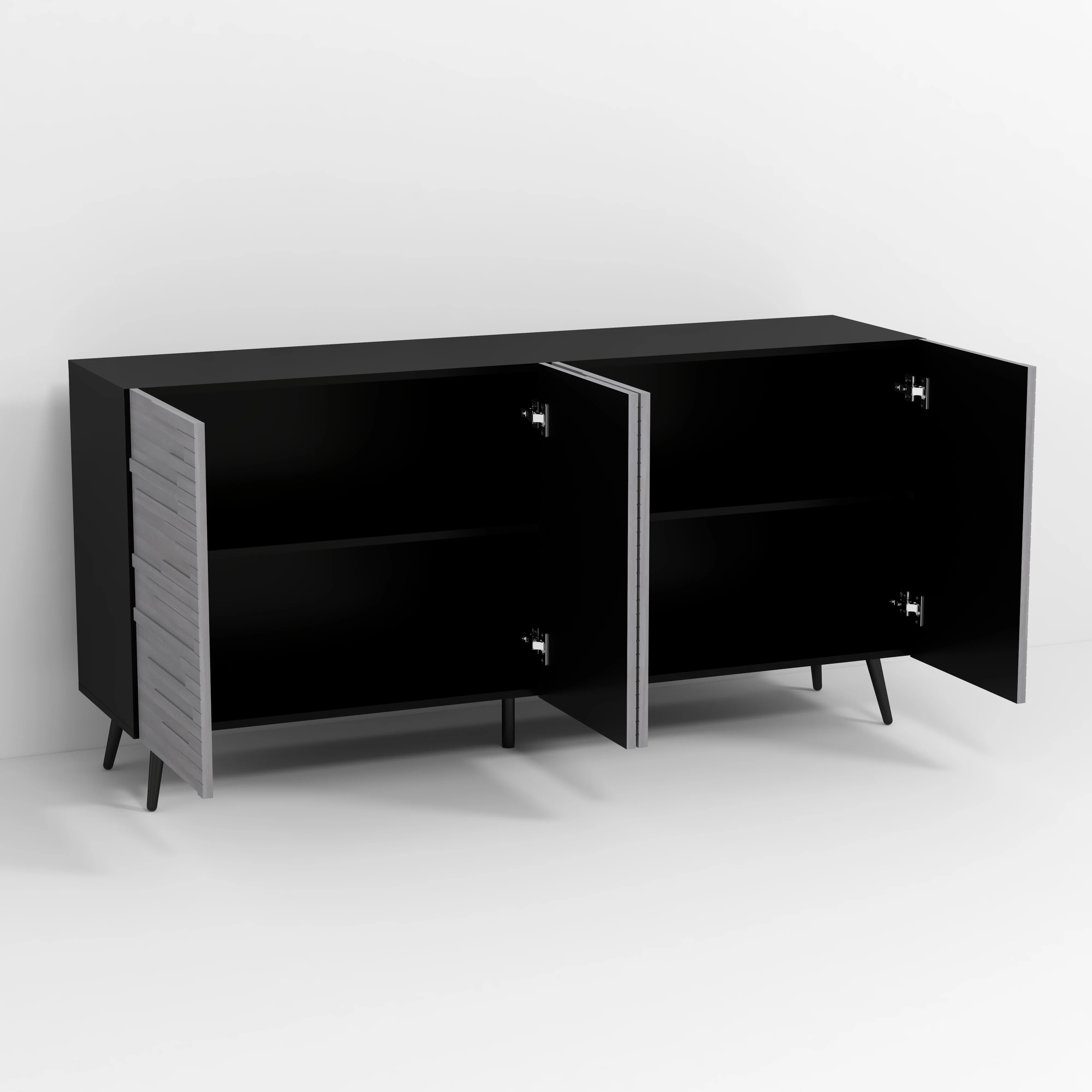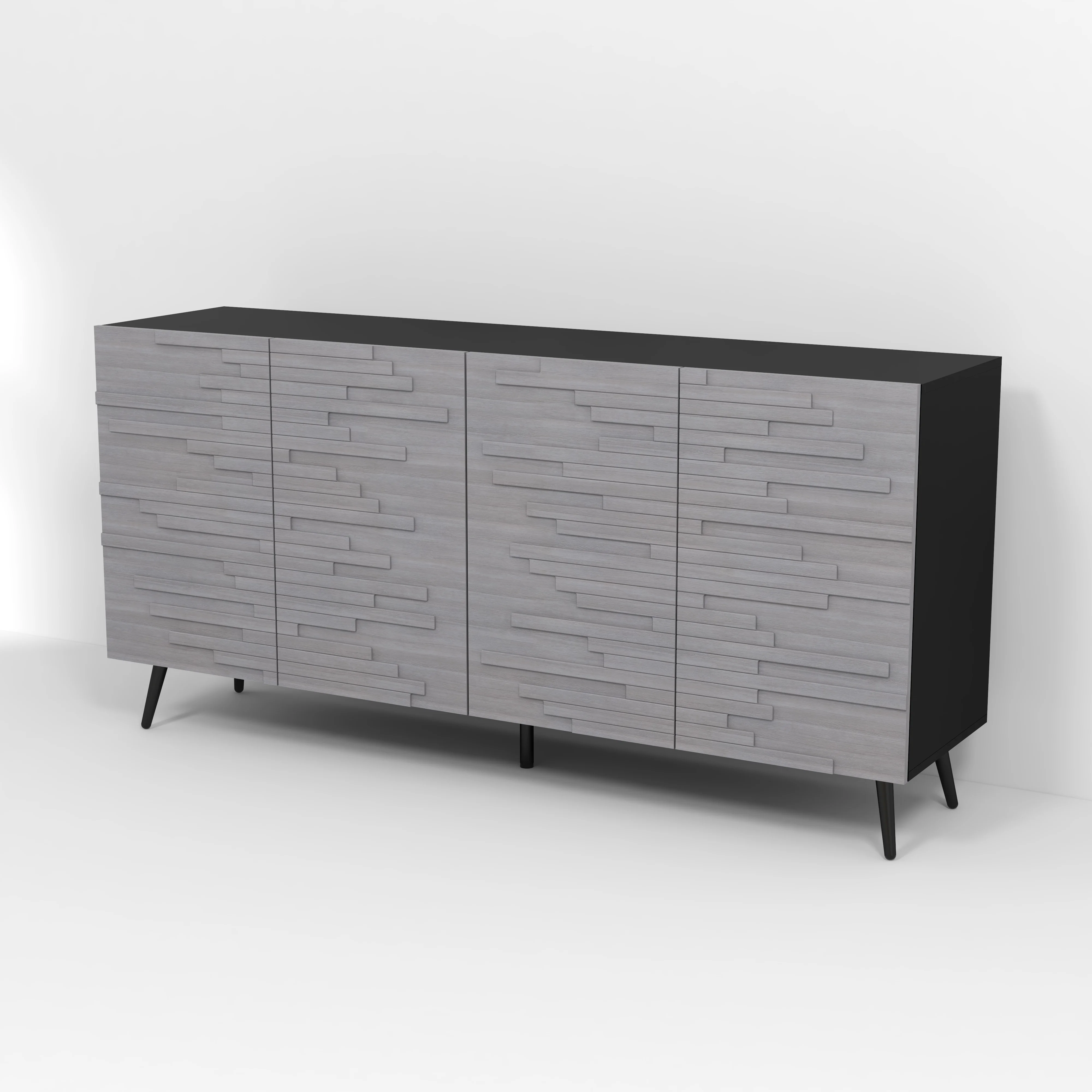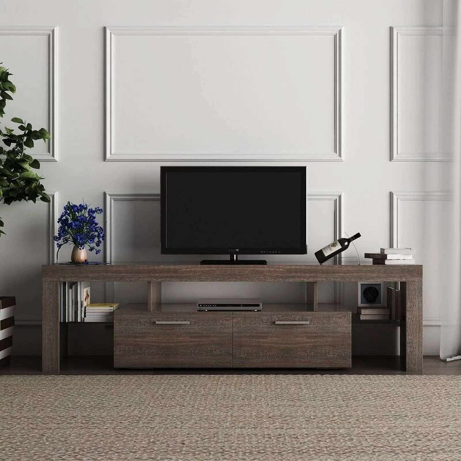 Twin Fins Modern Rustic 63-Inch Black TV Stand Cabinet - Fits Up to 65" TV