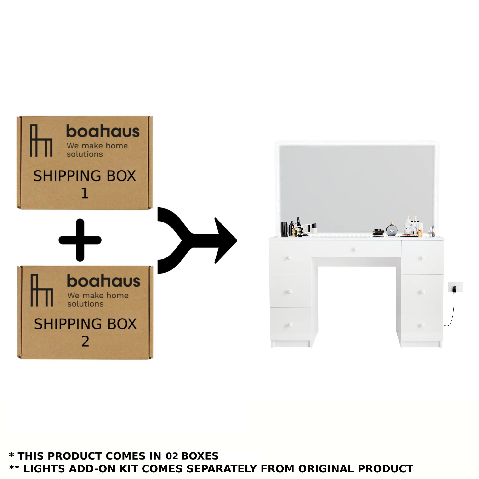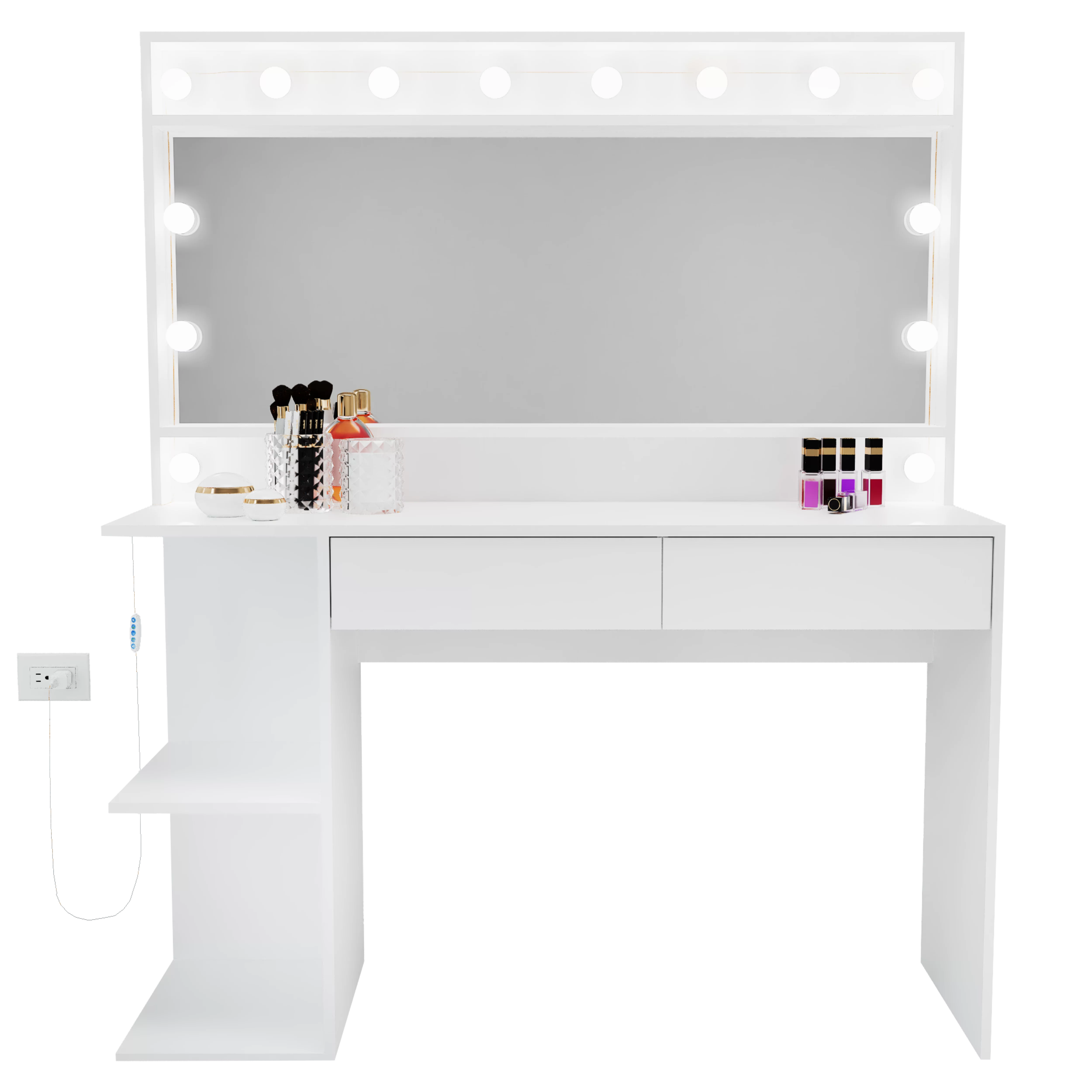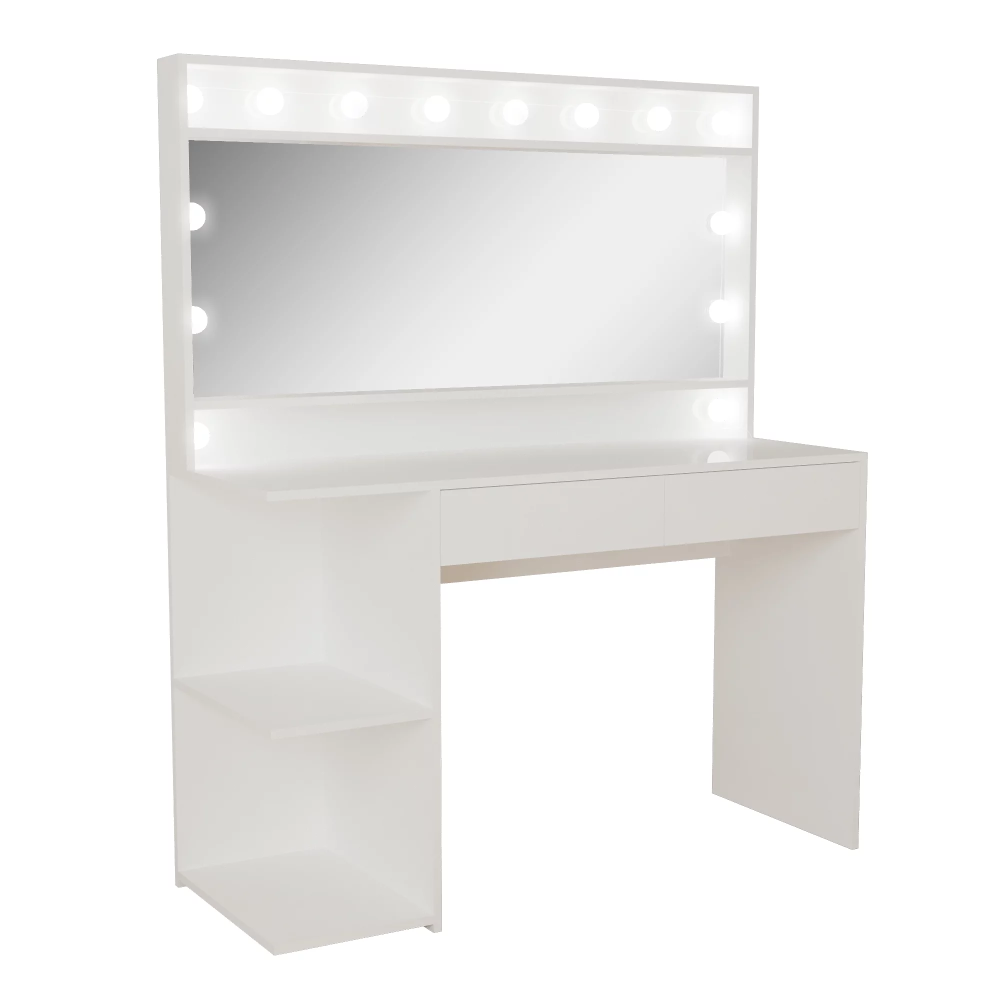 Boahaus Aurora Modern Vanity Table, White Finish, Light Bulbs, for Bedroom