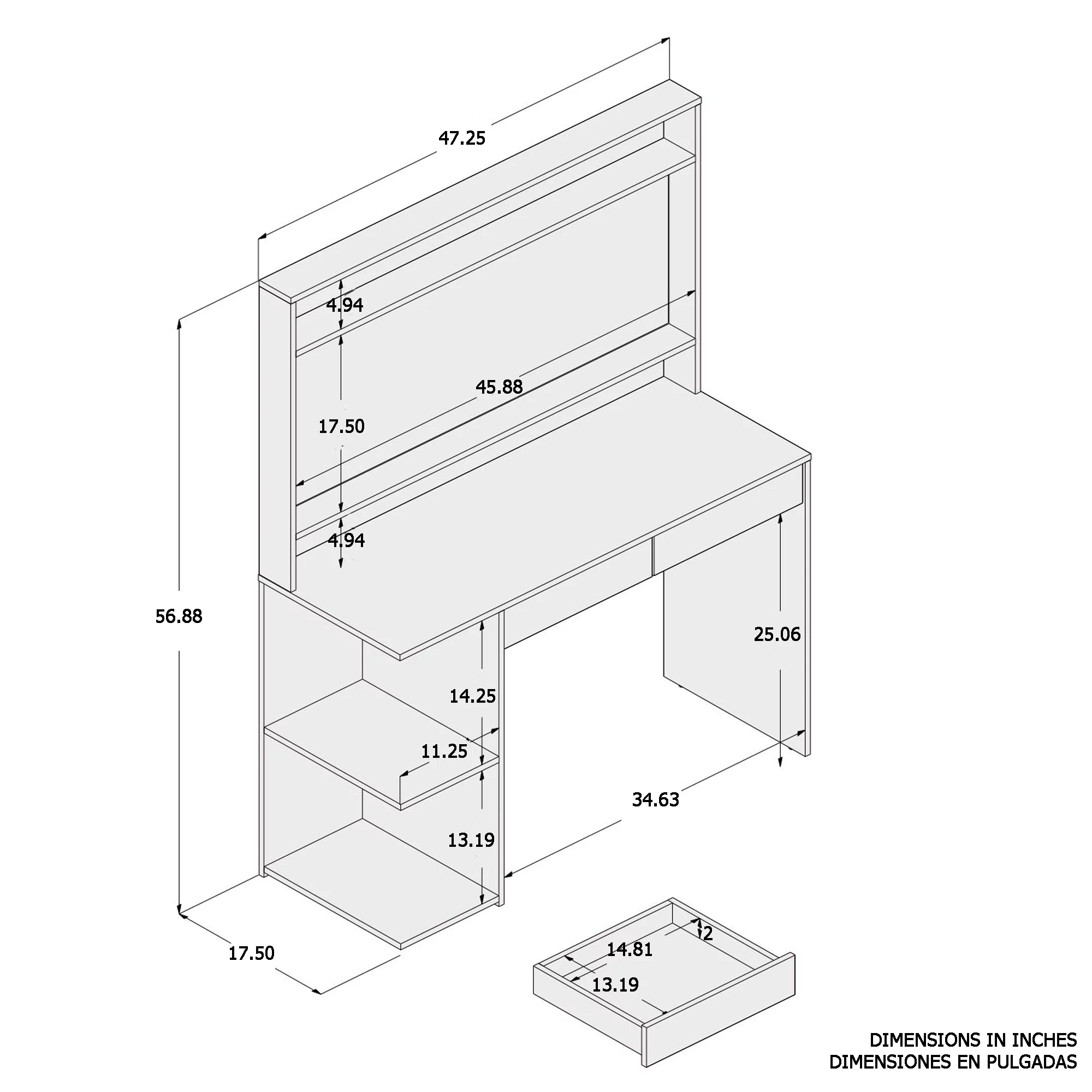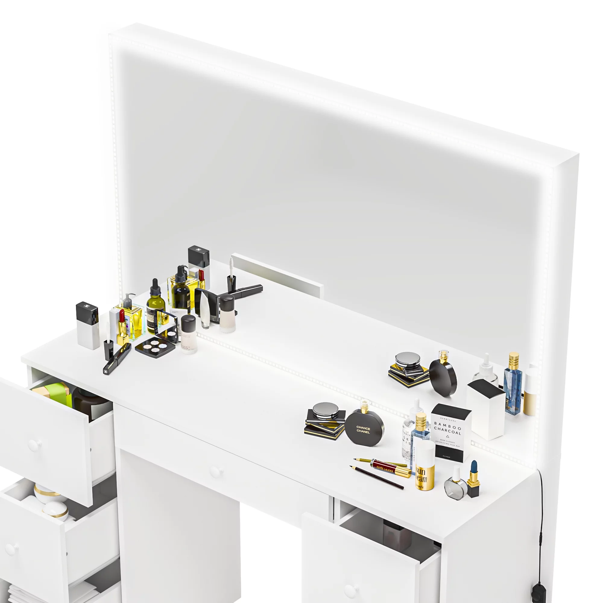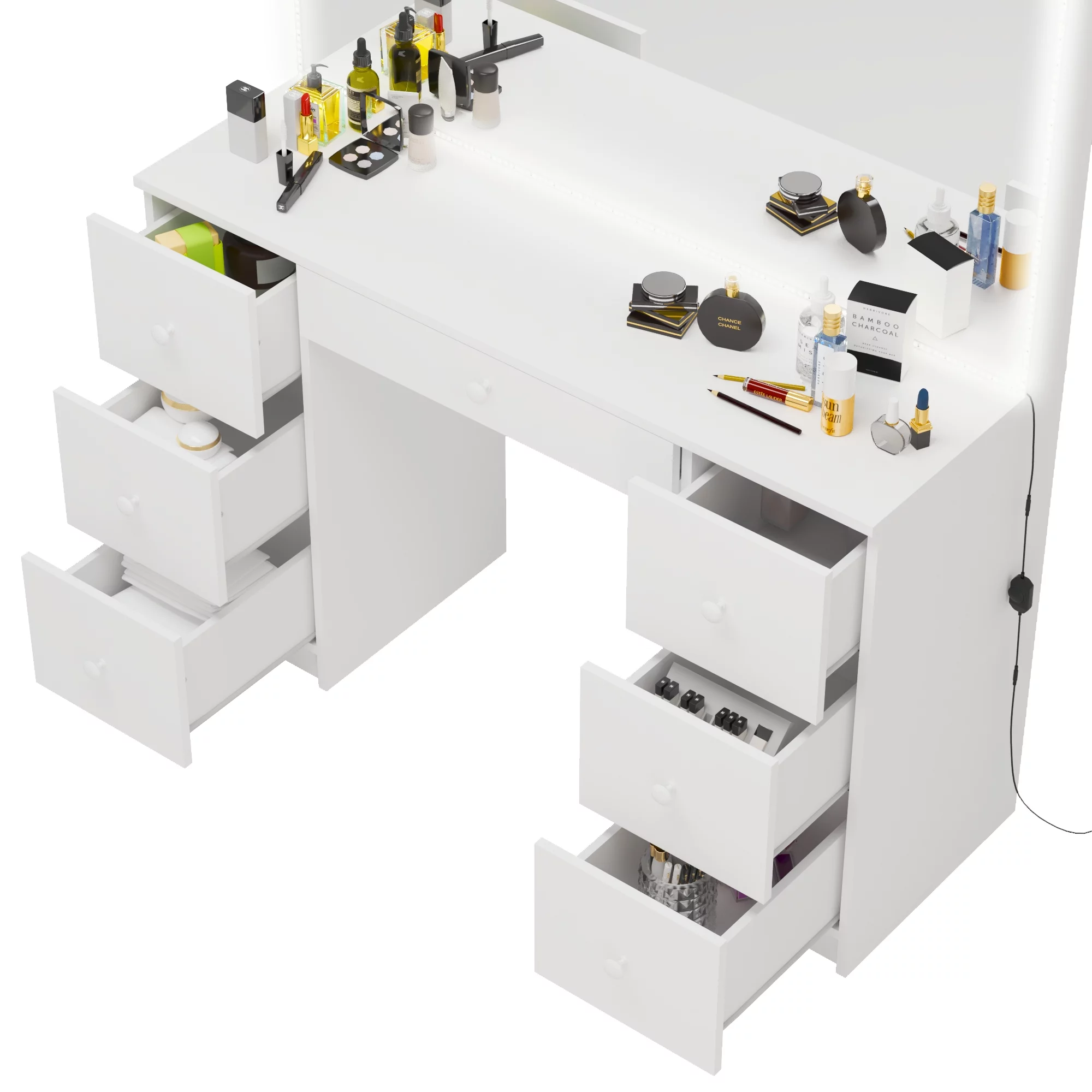 Hives and Honey Ainsley Vanity Desk with Make - Up organizer & integrated USB & power outlet, White