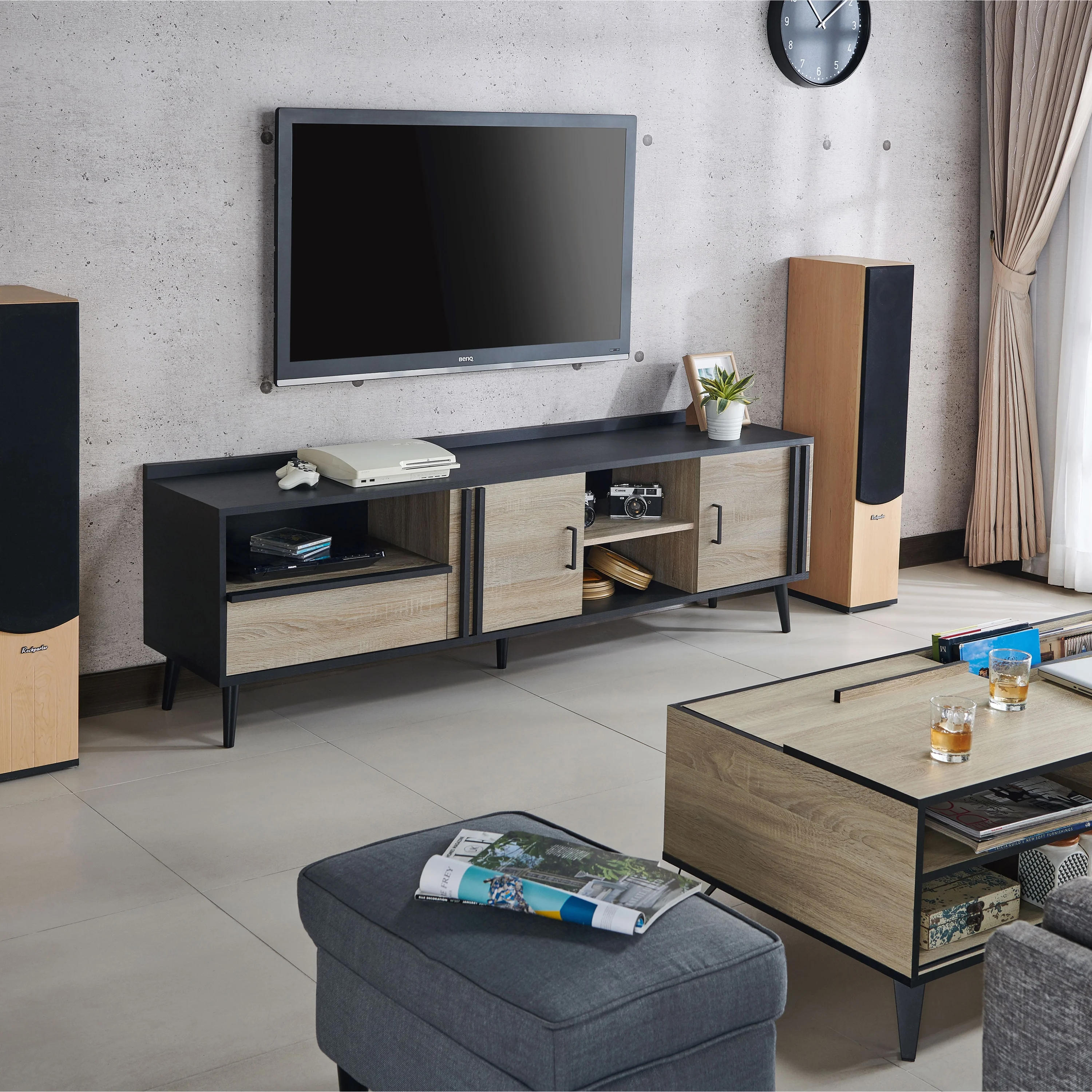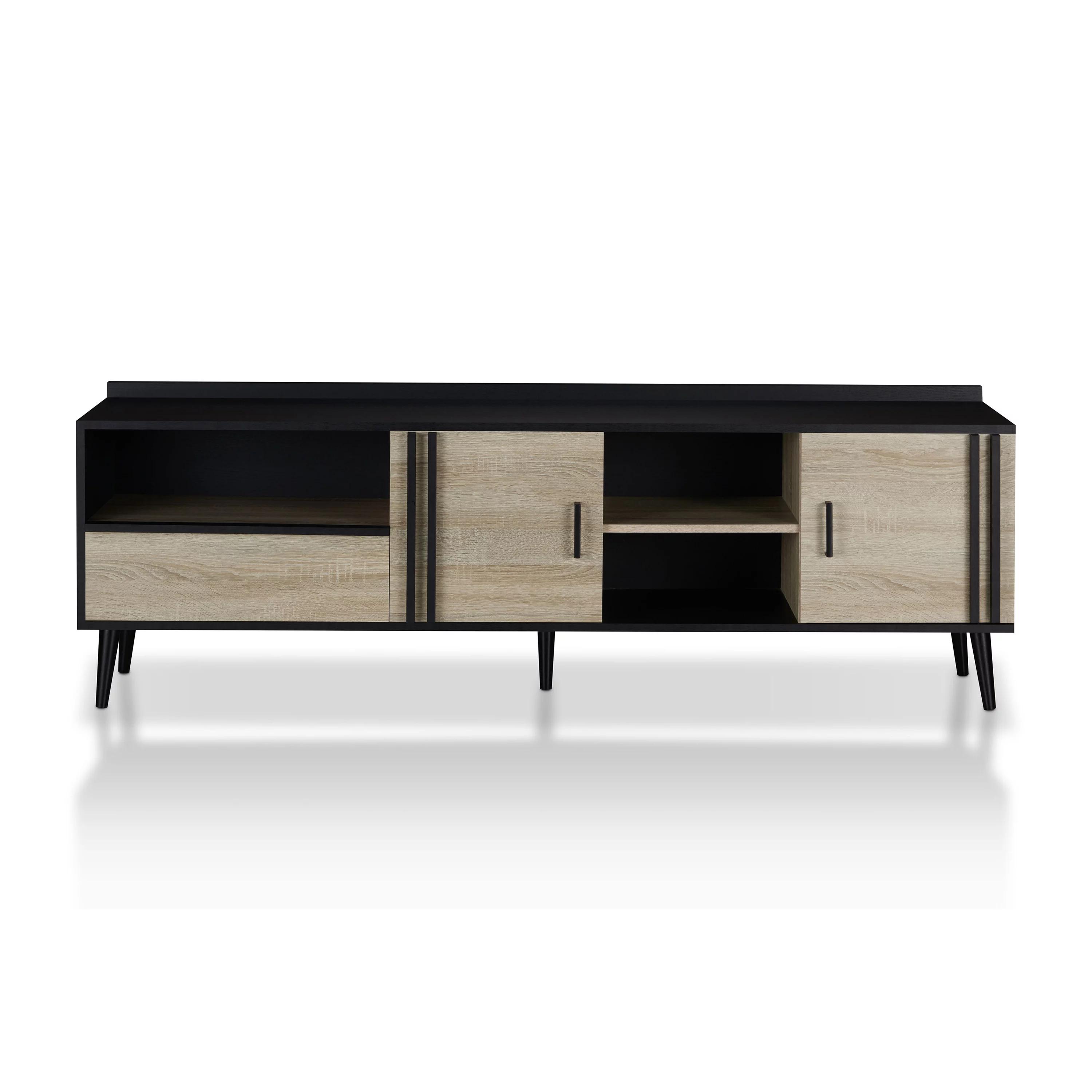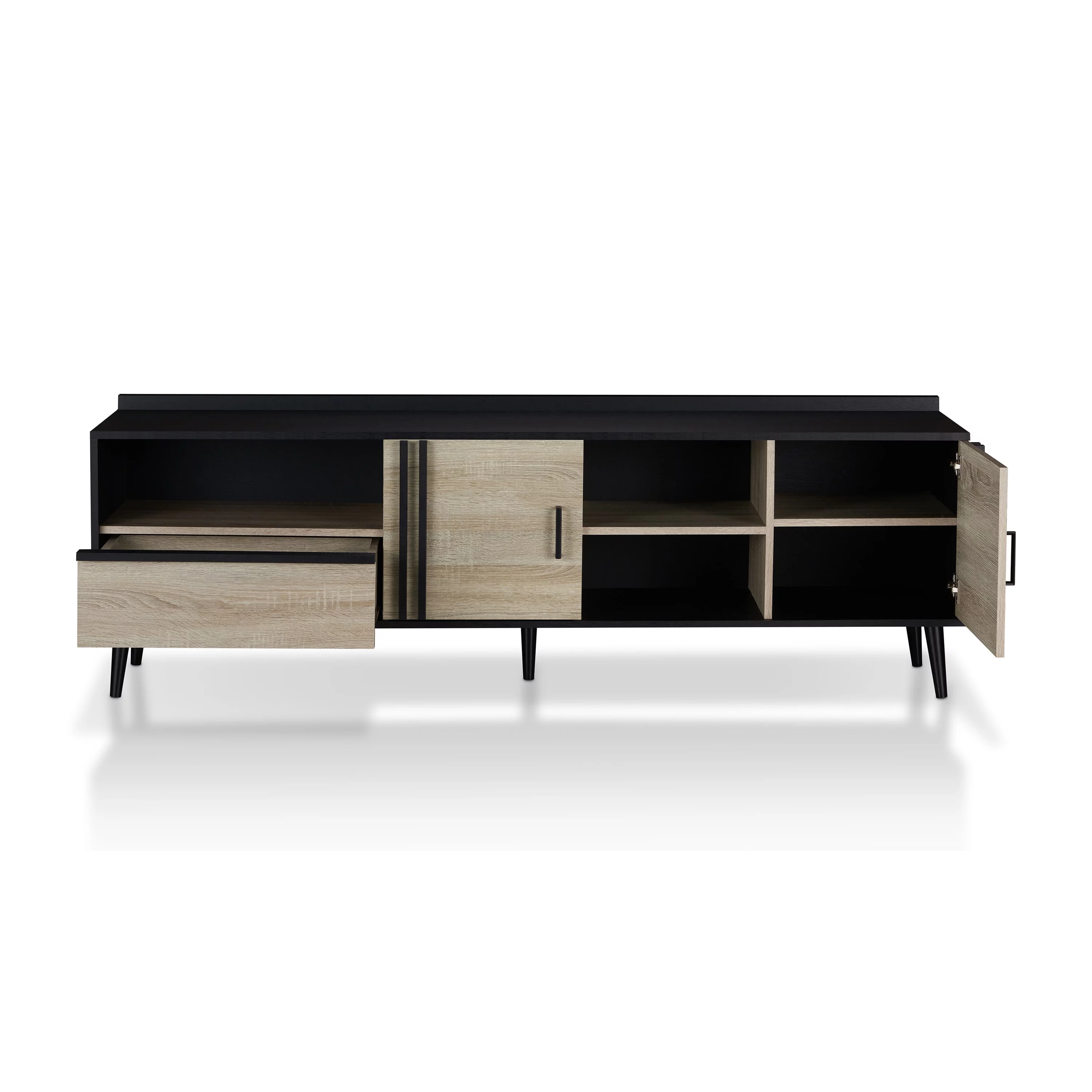 Furniture of America Danette Multi-Storage TV Cabinet, Black and Light Oak