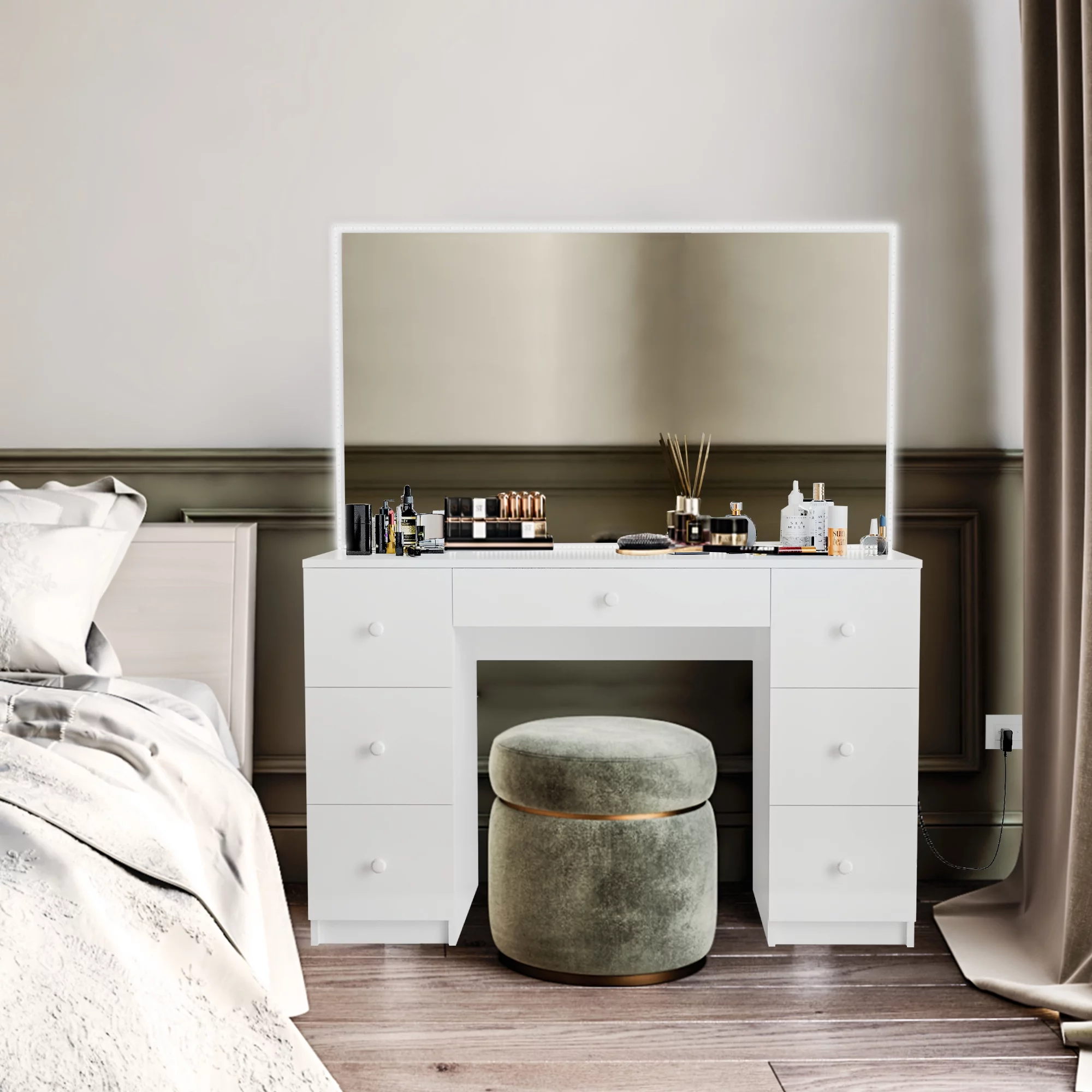 Ember Interiors Emery Modern Painted Vanity Table, Lights, for Bedroom