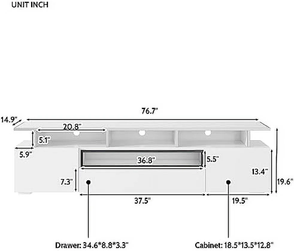 Morden TV Stand with LED Lights, High Glossy Front TV Cabinet,TV Bench up to 63 Inches for Living Room, Bedroom