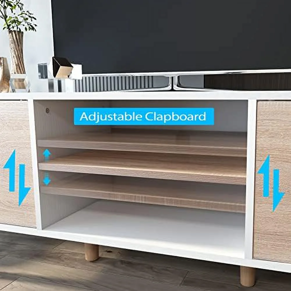 BSHTI 43 inch Rustic Brown TV Console with push-to-open Storage Cabinet for Livingroom