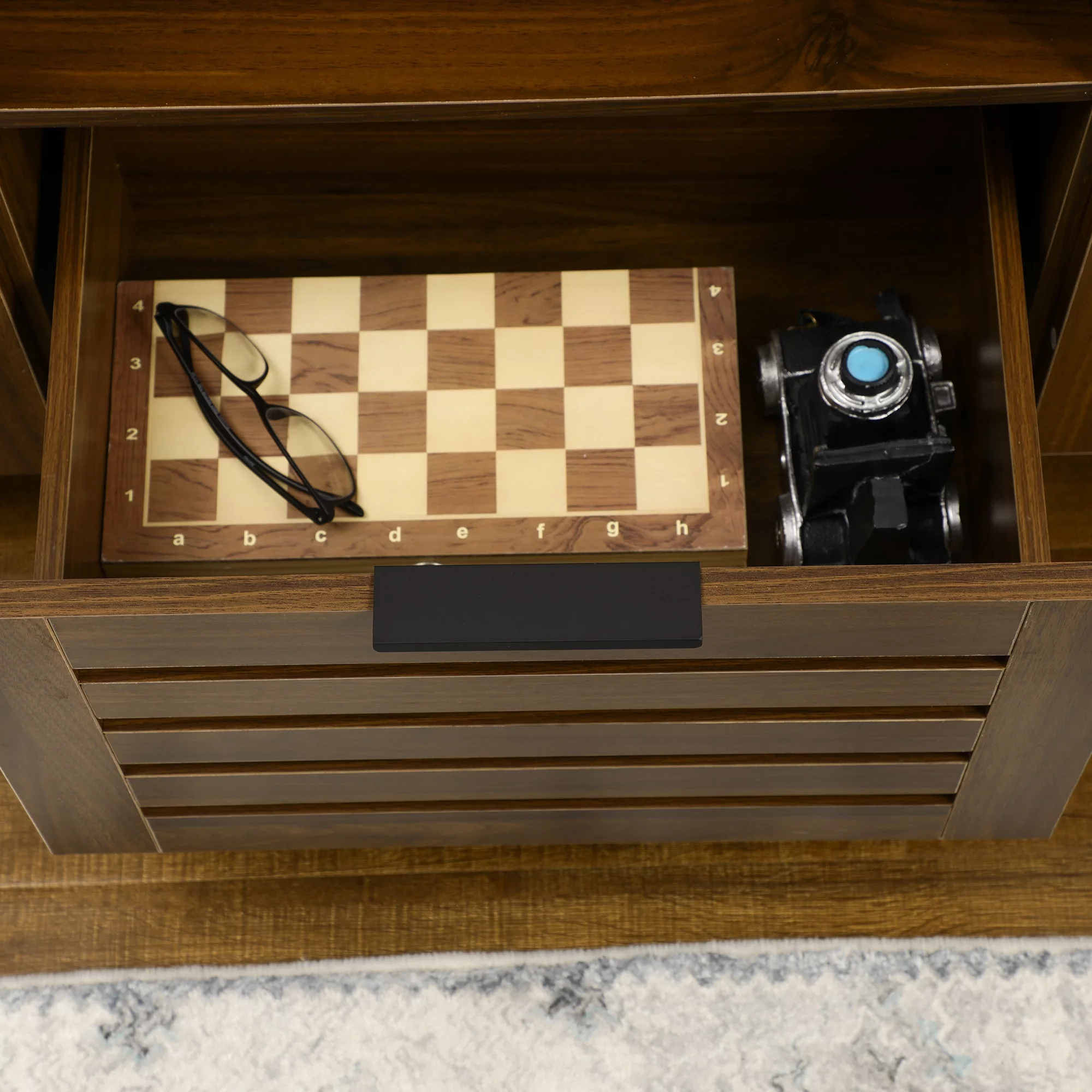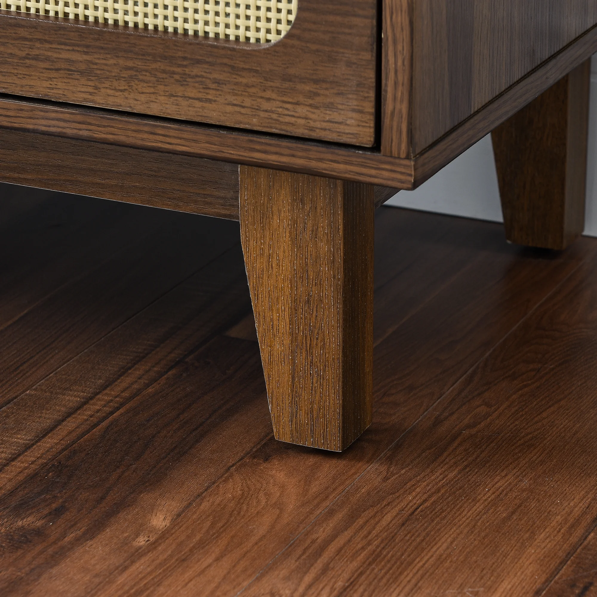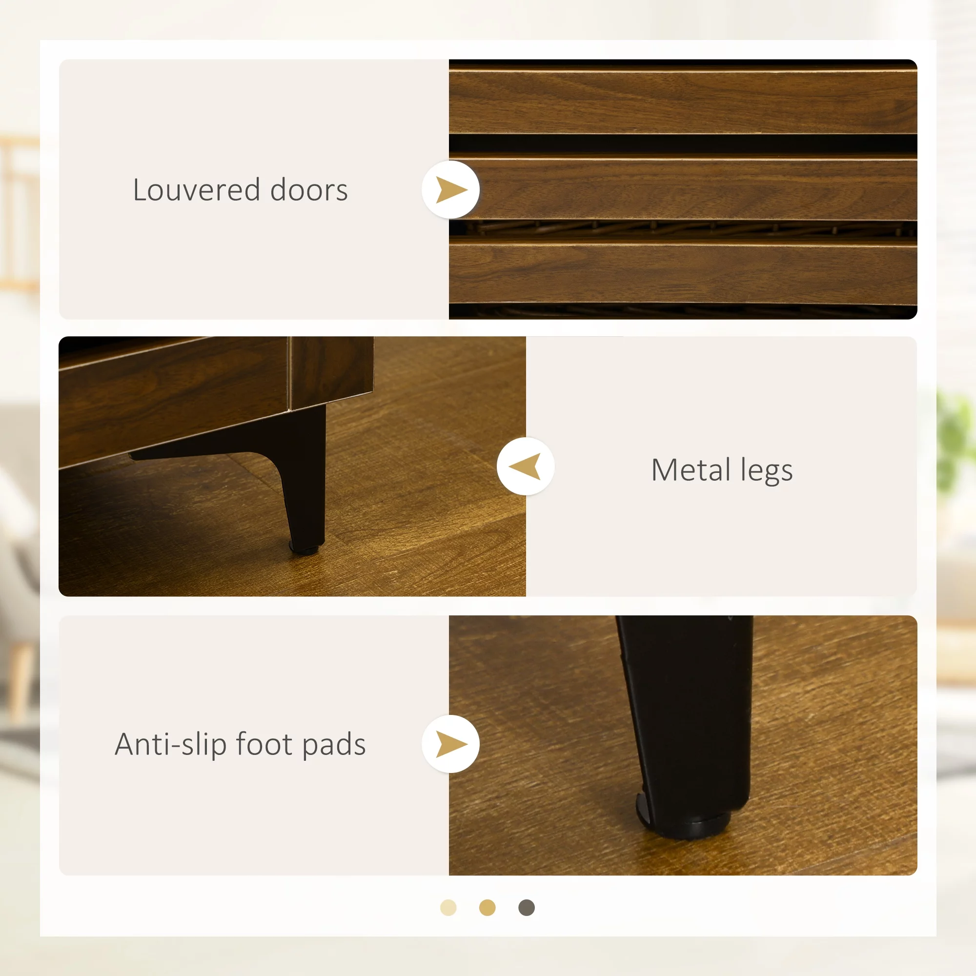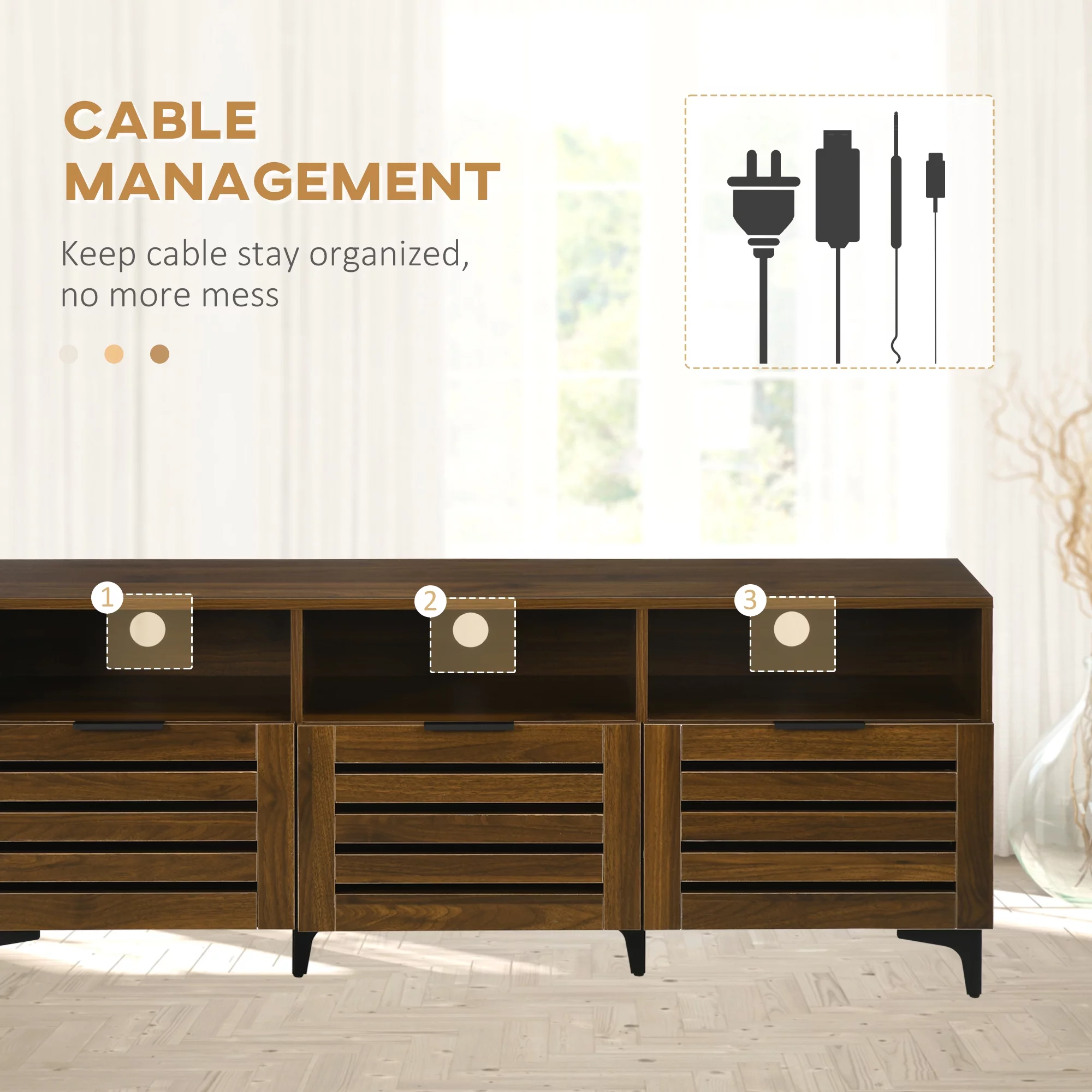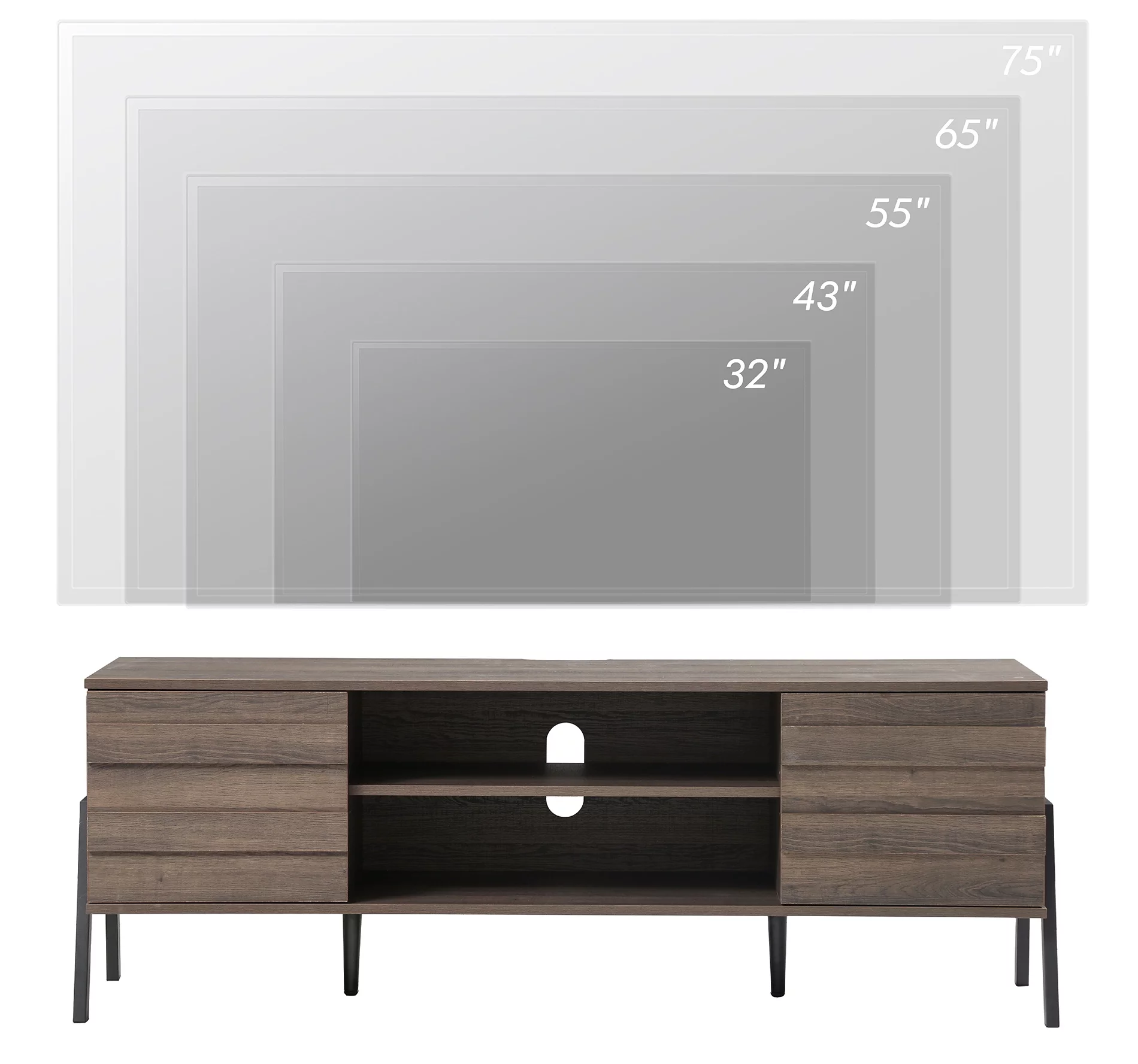 Mid-century LED TV Stand with Push To Open Cabinet and Metal Legs for Living Room, Brown