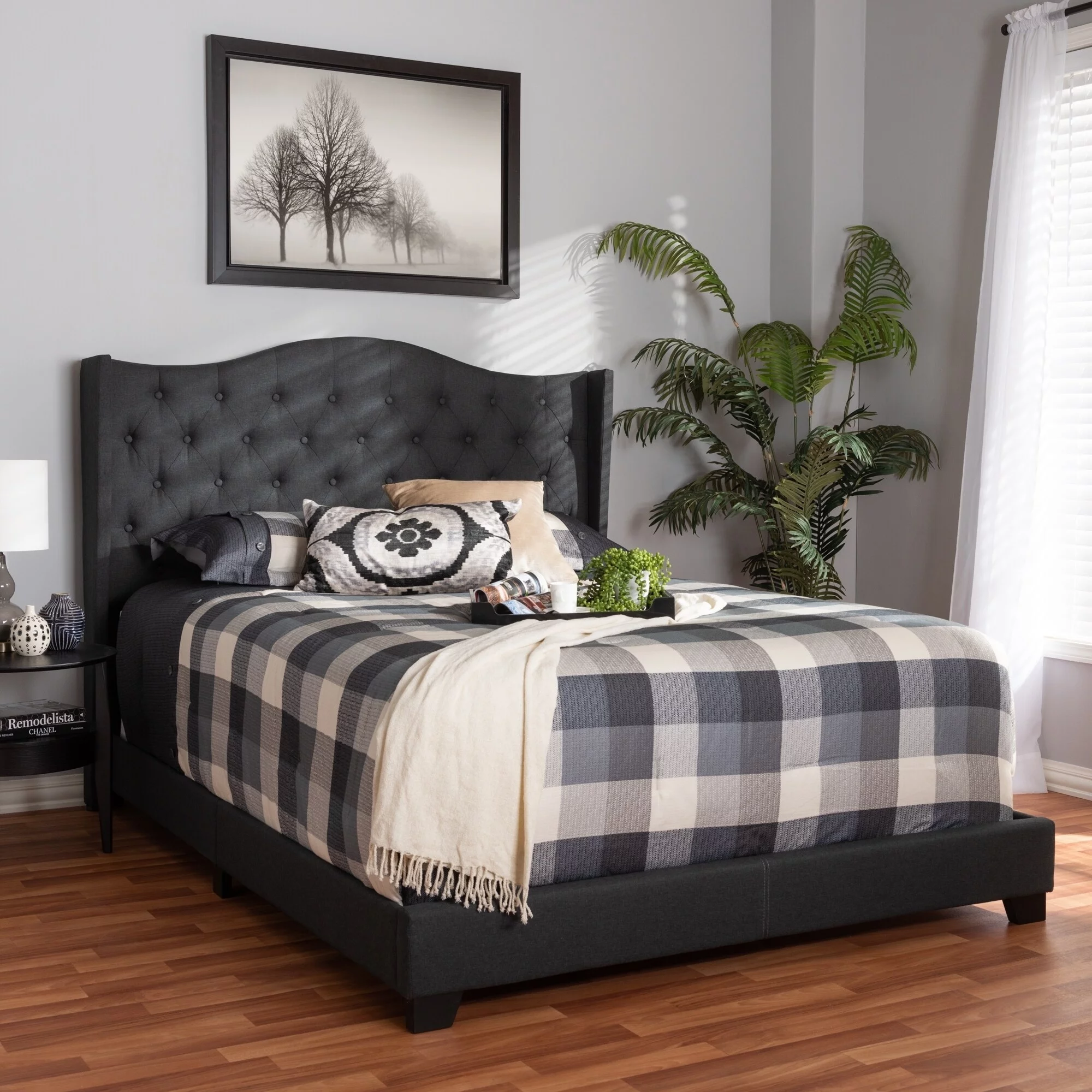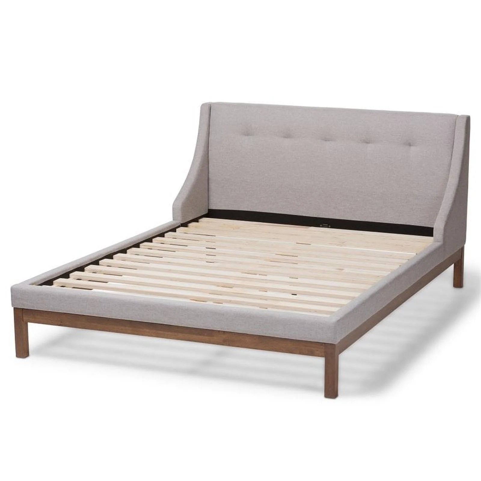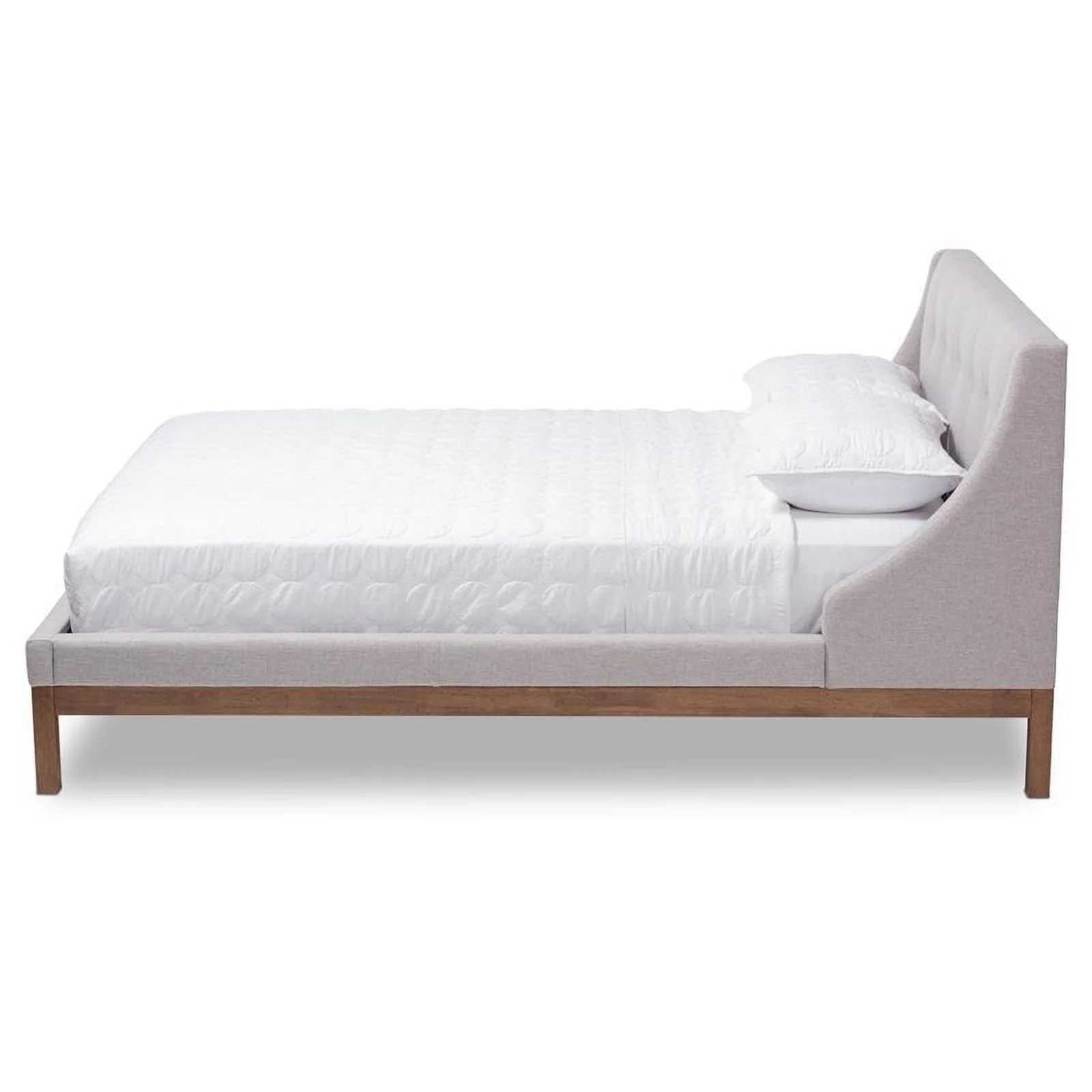 Baxton Studio Louvain Contemporary/Modern Rubberwood Tufted Platform Bed, Queen, Greyish Beige/Brown