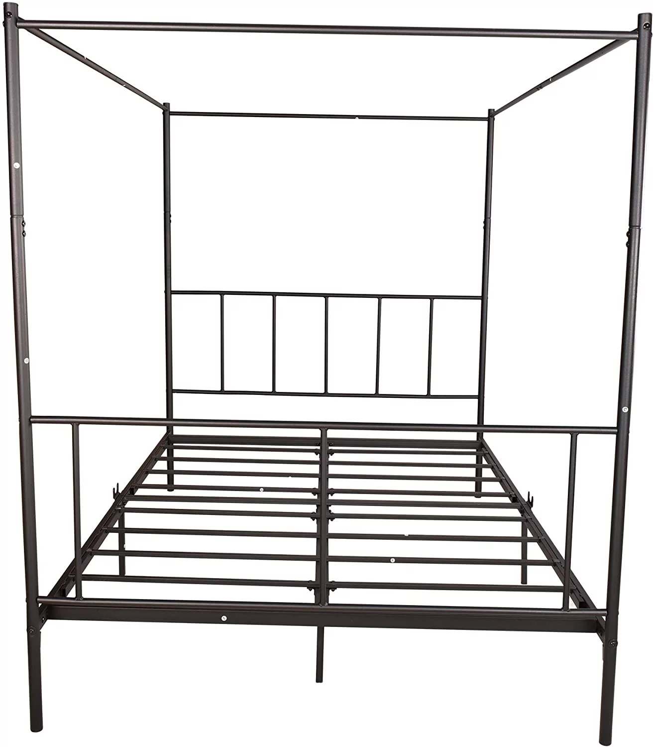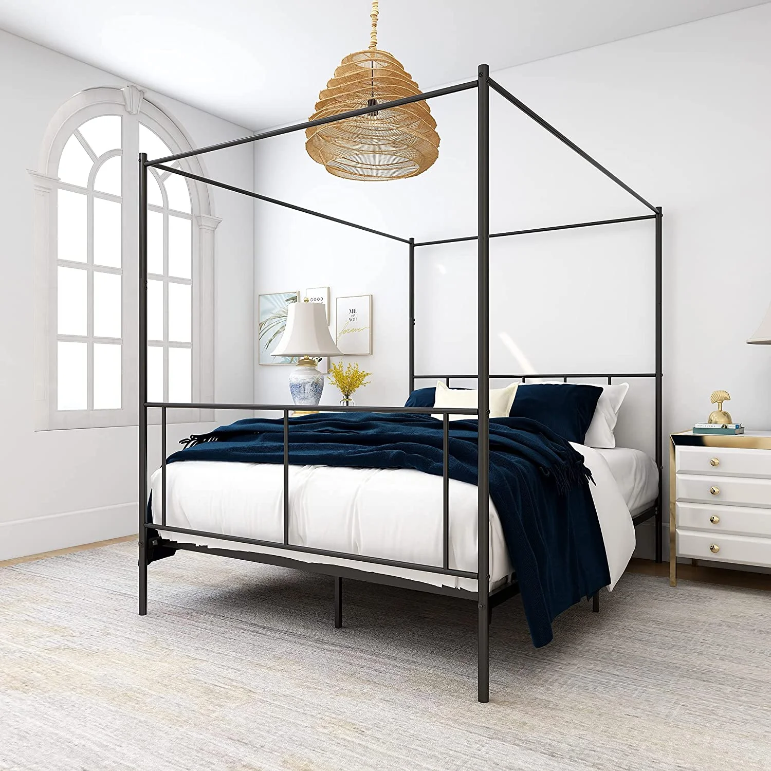 Queen Size Metal Canopy Bed Frame 4 Post Cozy with Headboard and Footboard No Box Spring Needed Black