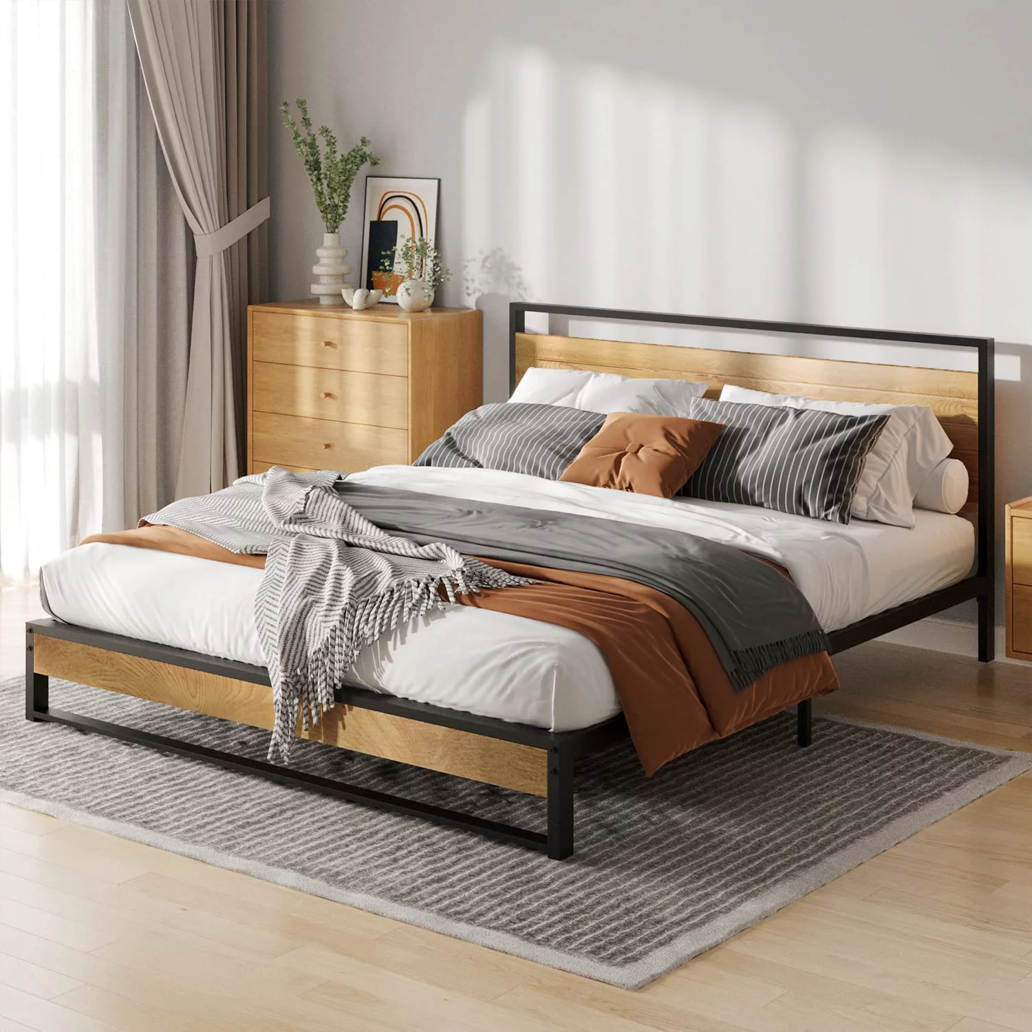 Metal Queen Size Platform Bed Frame with Wood Headboard/Footboard (Queen (U.S. Standard))