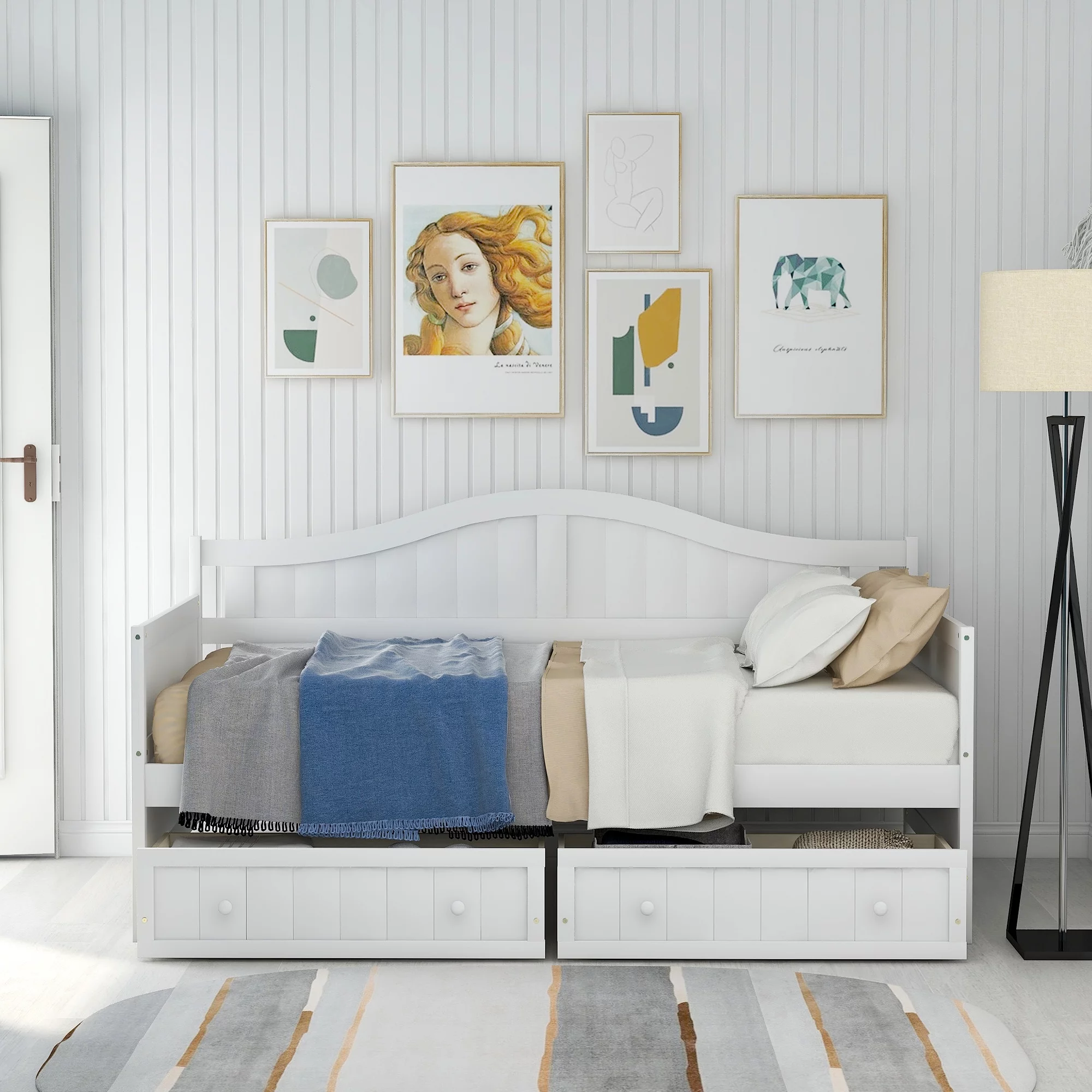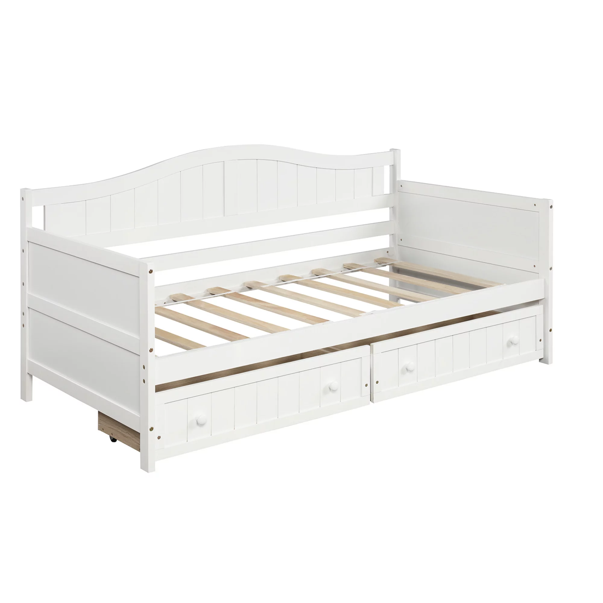 Twin Wooden Daybed with 2 drawers, Sofa Bed for Bedroom Living Room,No Box Spring Needed,White