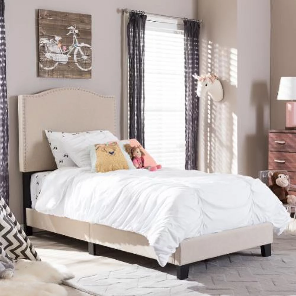 Baxton Studio Amira Transitional Wood Back Support Platform Bed, Twin, Ash Walnut