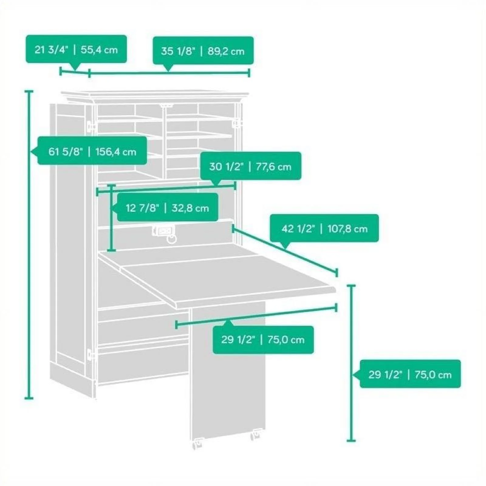 Pemberly Row Contemporary Storage Cabinet with Doors and 4 Adjustable Shelves in Antique Brown