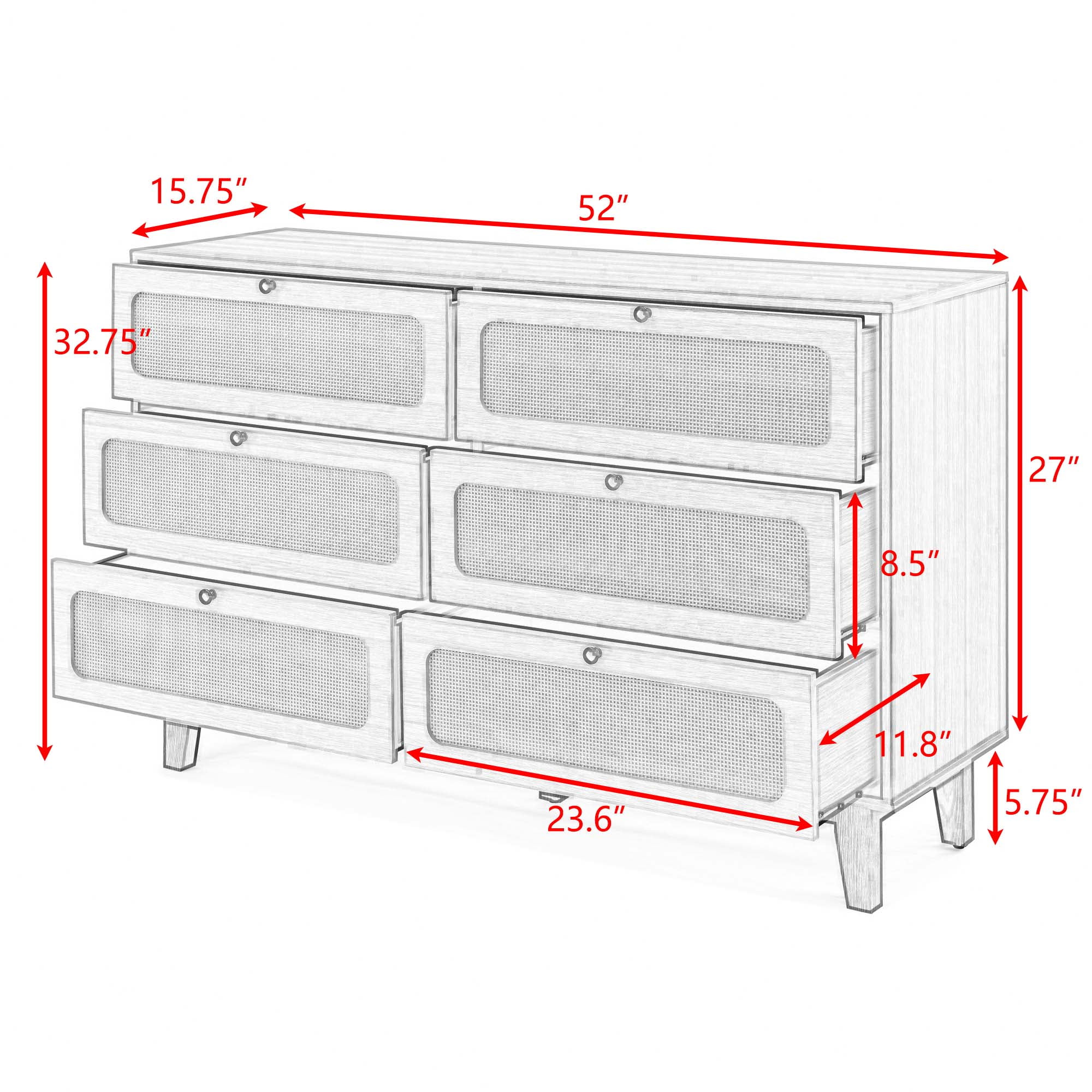 Antique Wooden Dresser: Elegant 6-Drawer Storage Solution for Bedroom, Living Room, and Corridor Spaces