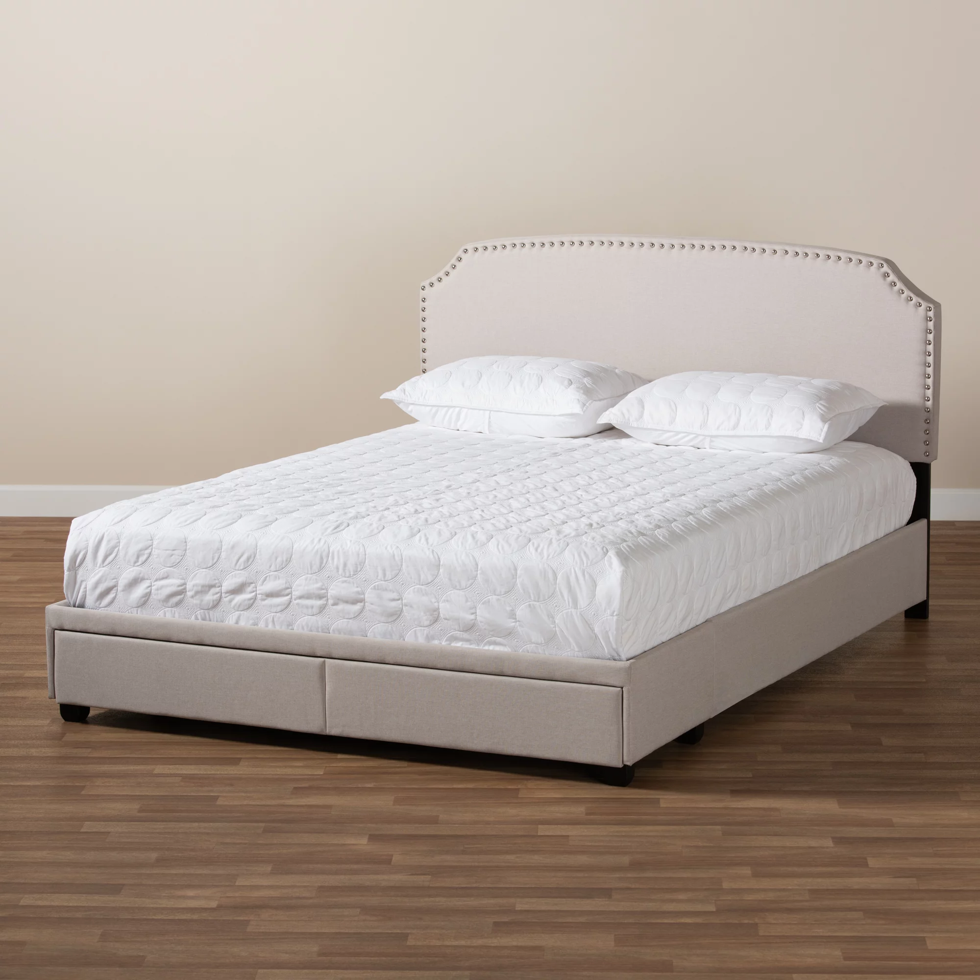 Baxton Studio Larese Beige Fabric Upholstered 2-Drawer Queen Size Platform Storage Bed