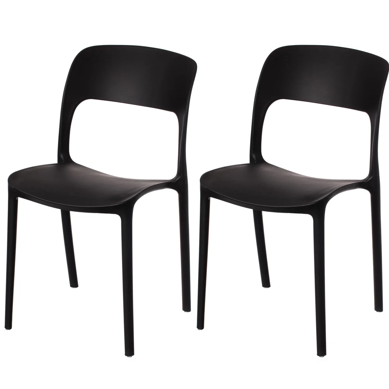 Fabulaxe Modern Plastic Outdoor Dining Chair with Open Curved Back, Red Set of 2