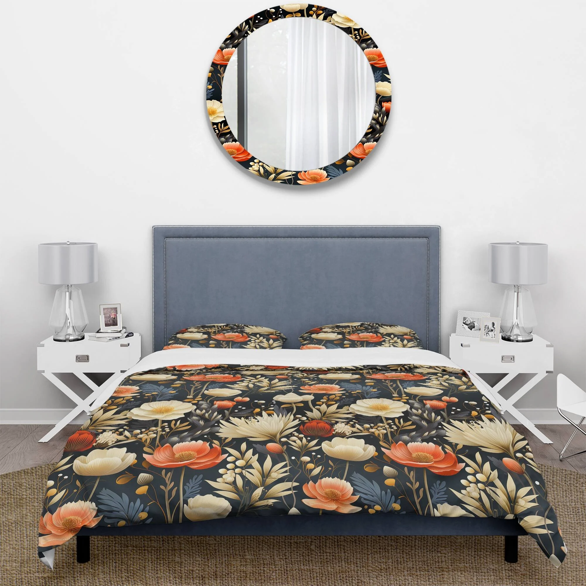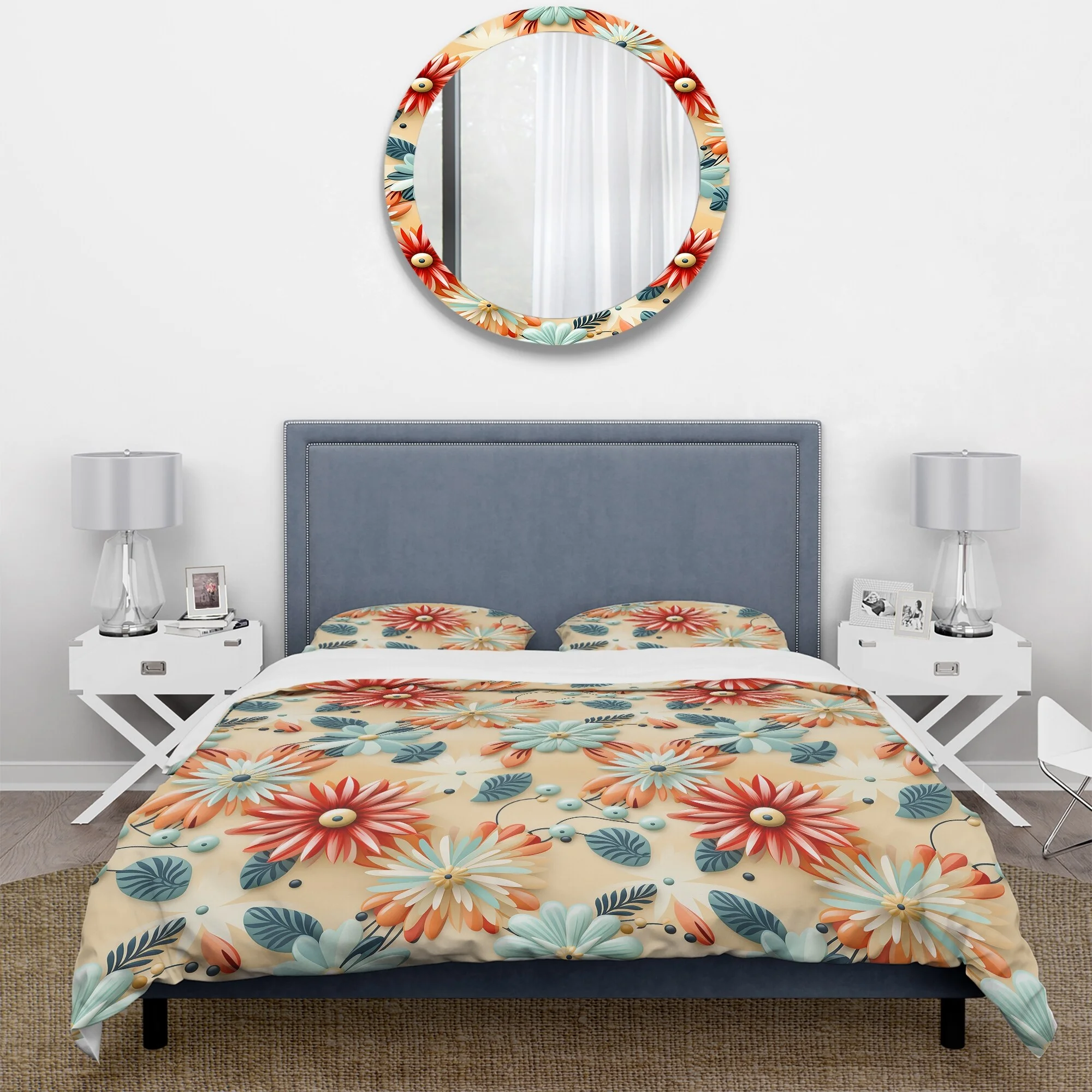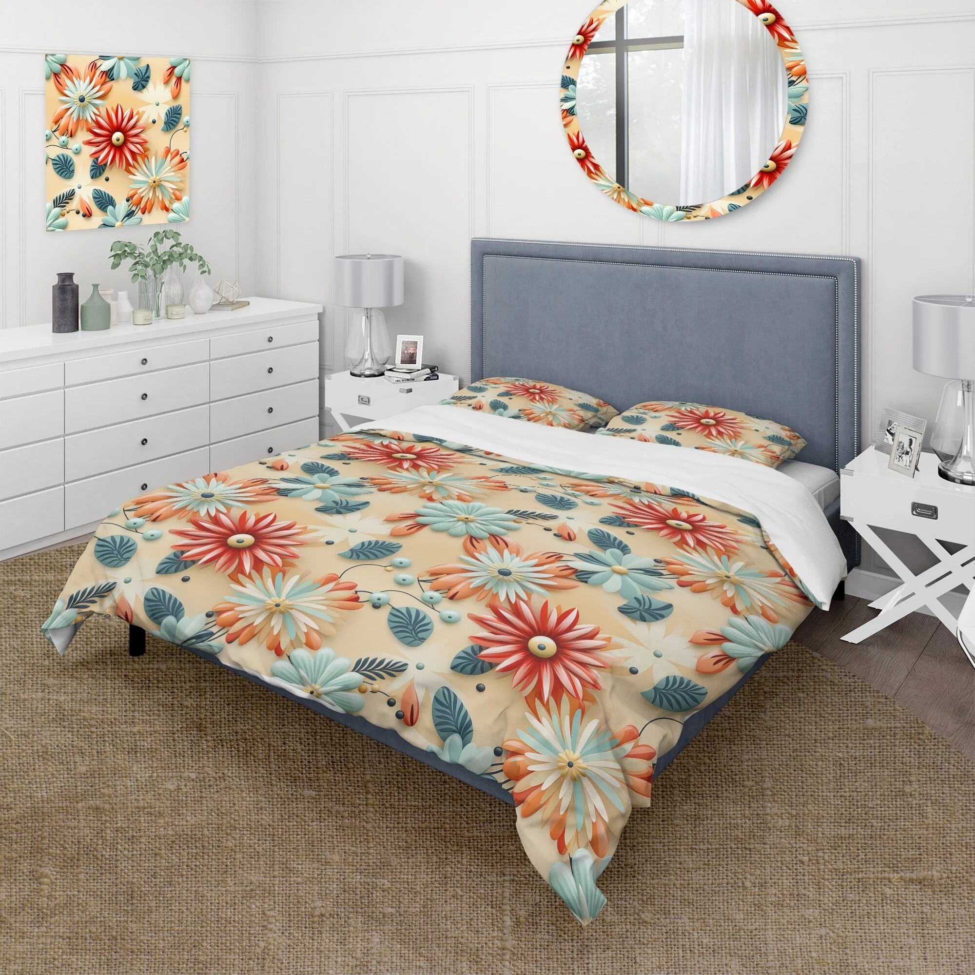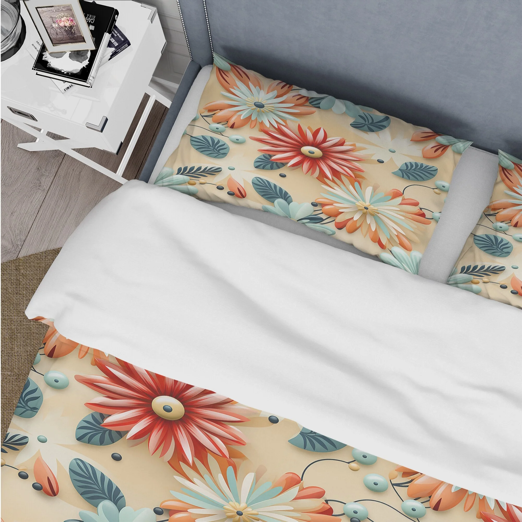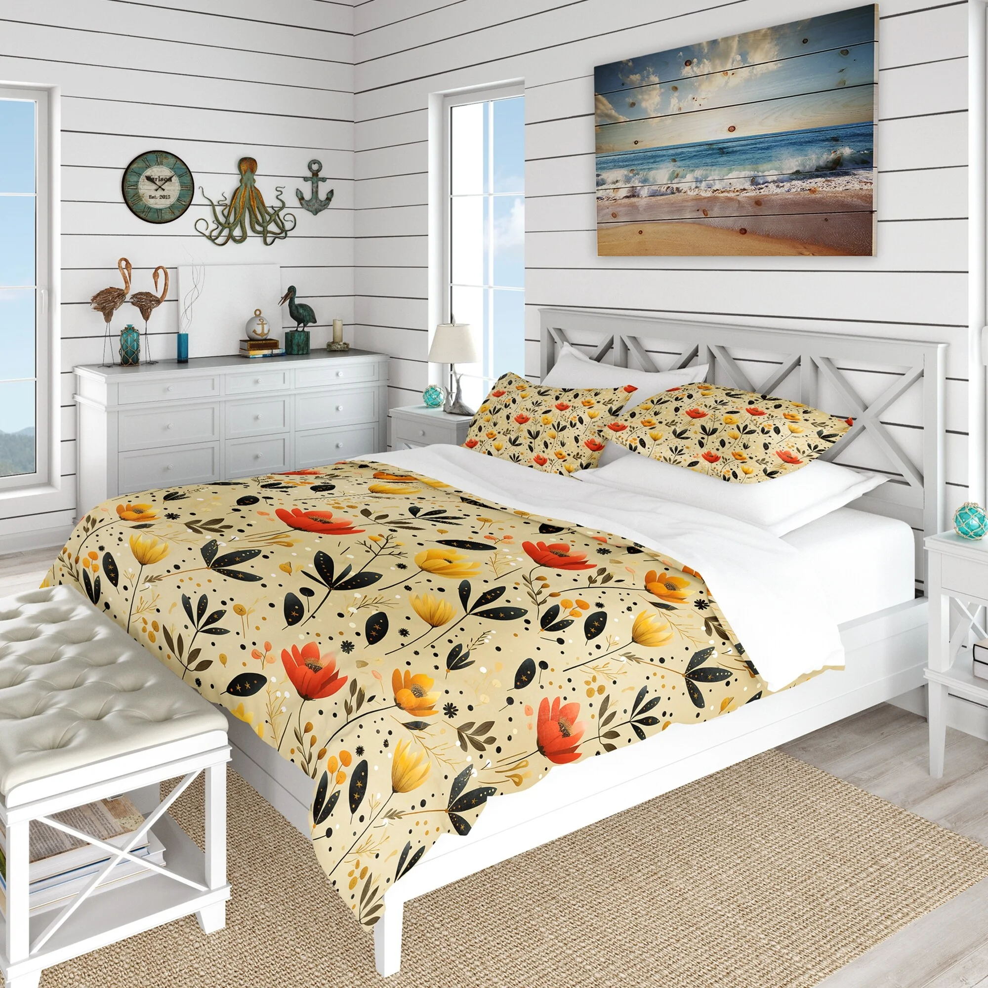 Designart "Whimsical Garden In Bohemian Style XI" Beige Floral Bedding Covert Set - Cottage Bed Set With 2 Shams