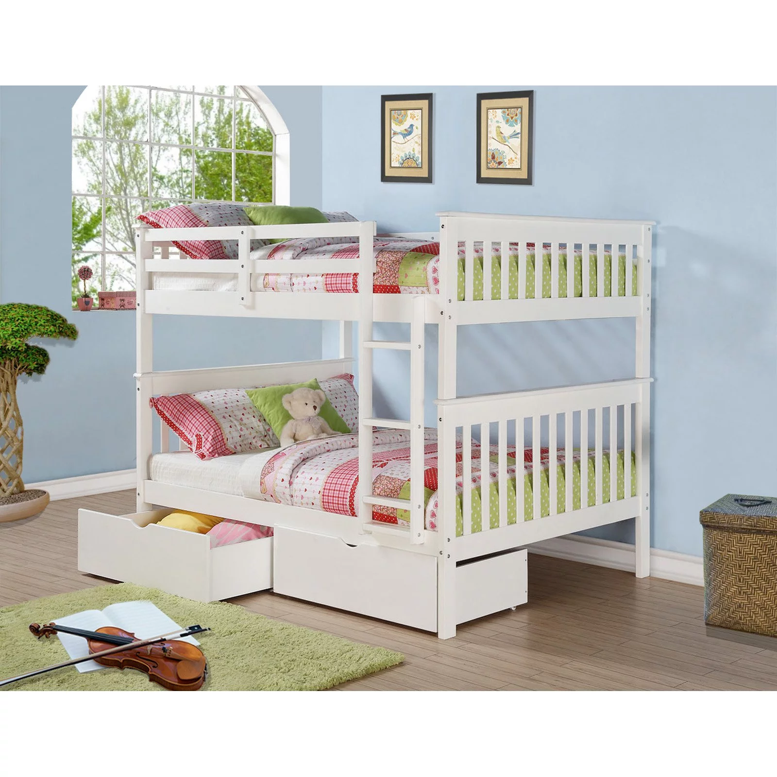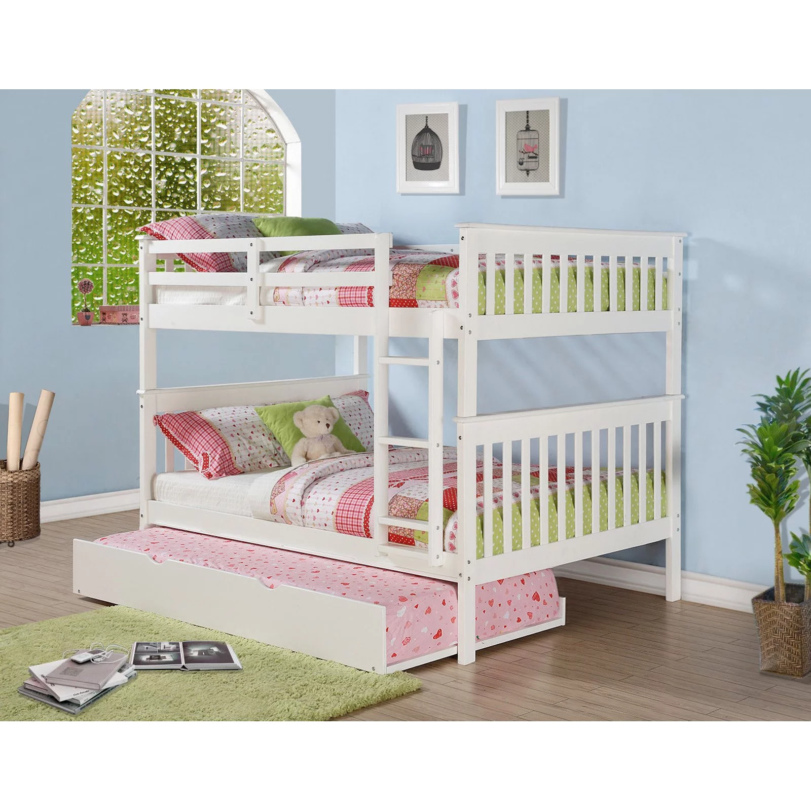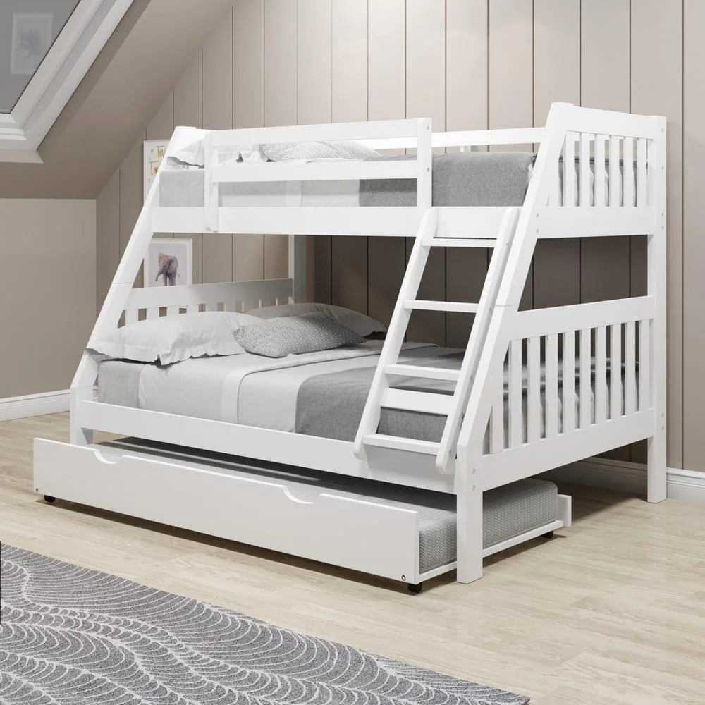 Donco Kids Twin/Full Mission Bunk Bed W/Twin Trundle Bed In White Finish