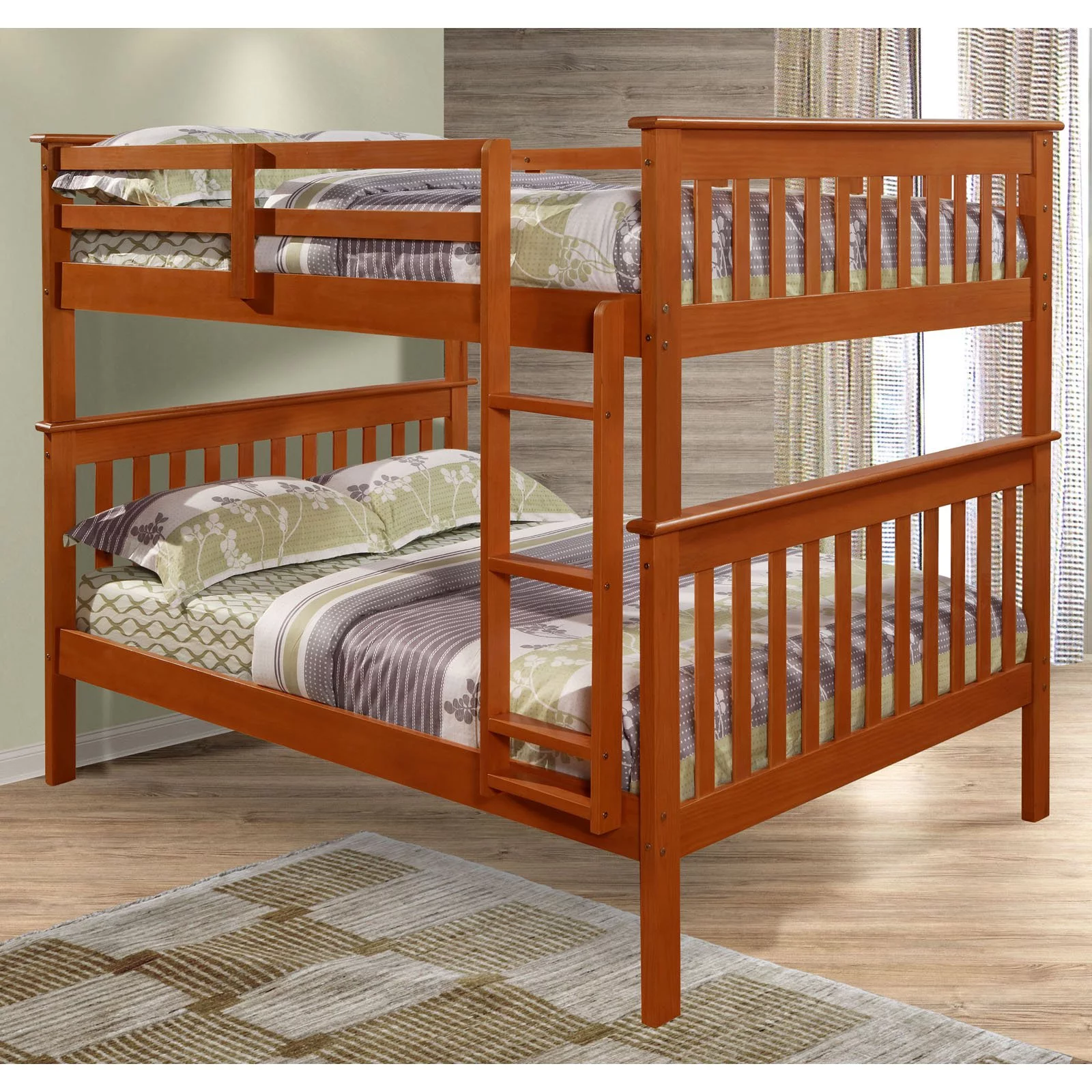PD-122-3BG-TF-505BG Twin Over Full Size Mission Bunk Bed with Storage Drawers, Brushed Grey