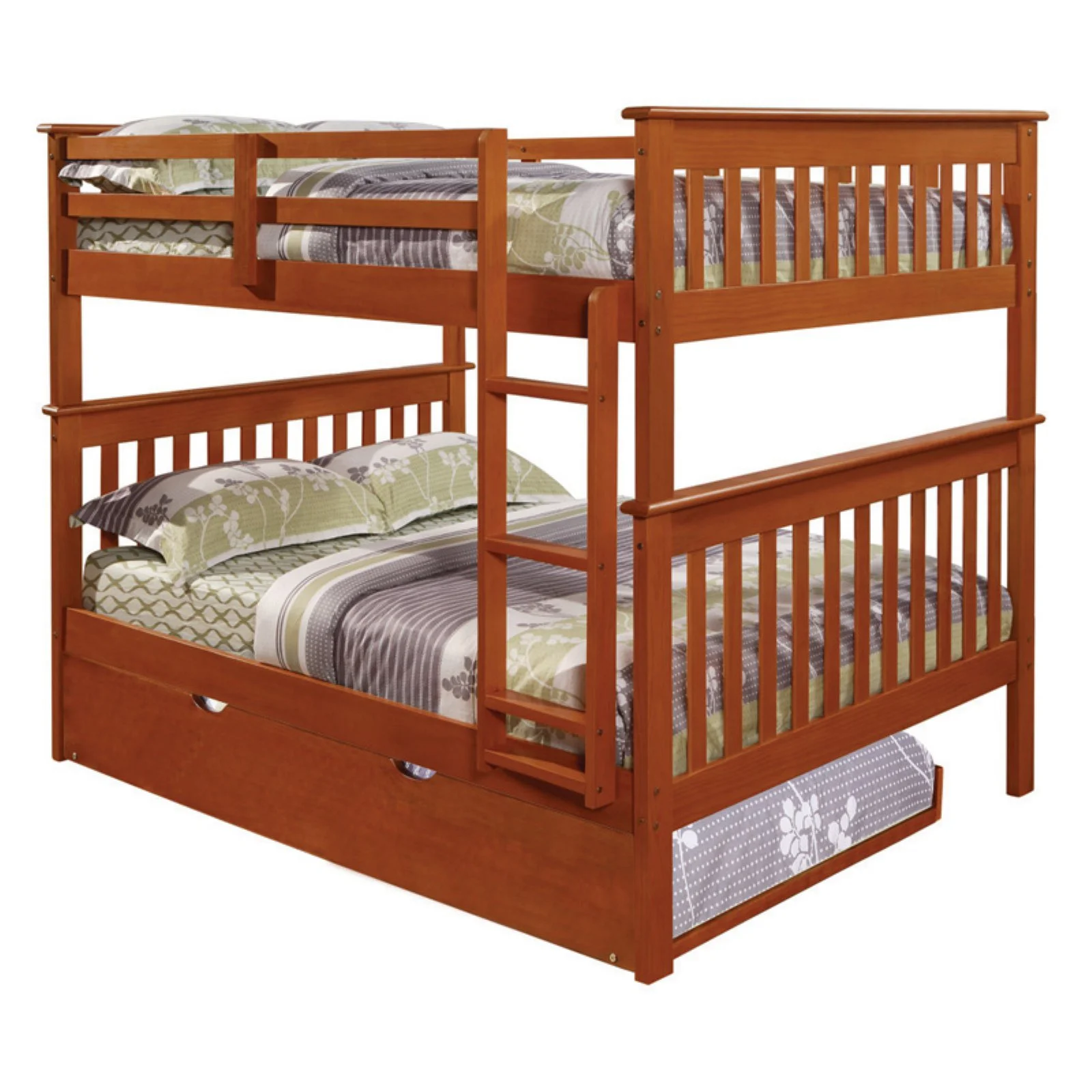 PD-122-3BG-TF-503BG Twin Over Full Size Mission Bunk Bed with Twin Trundle - Brushed Grey