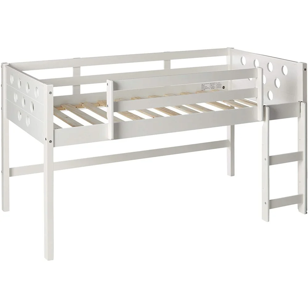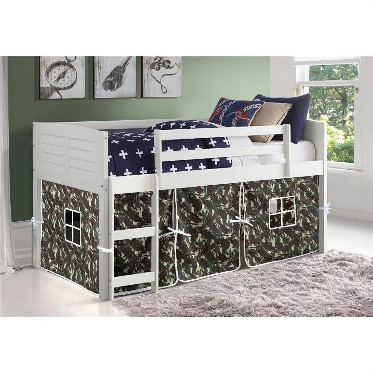Donco Kids PD-795AW-C Twin Louver Low Tent Loft in White with Camo Tent
