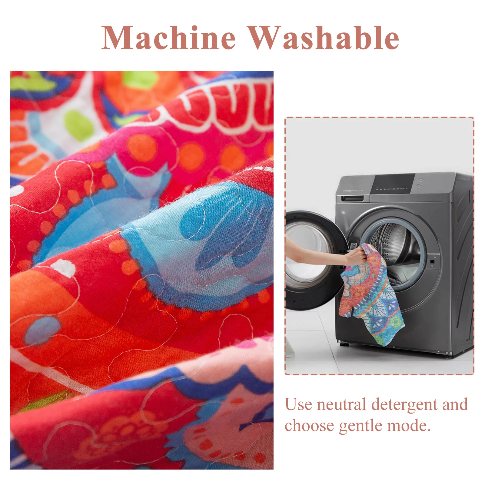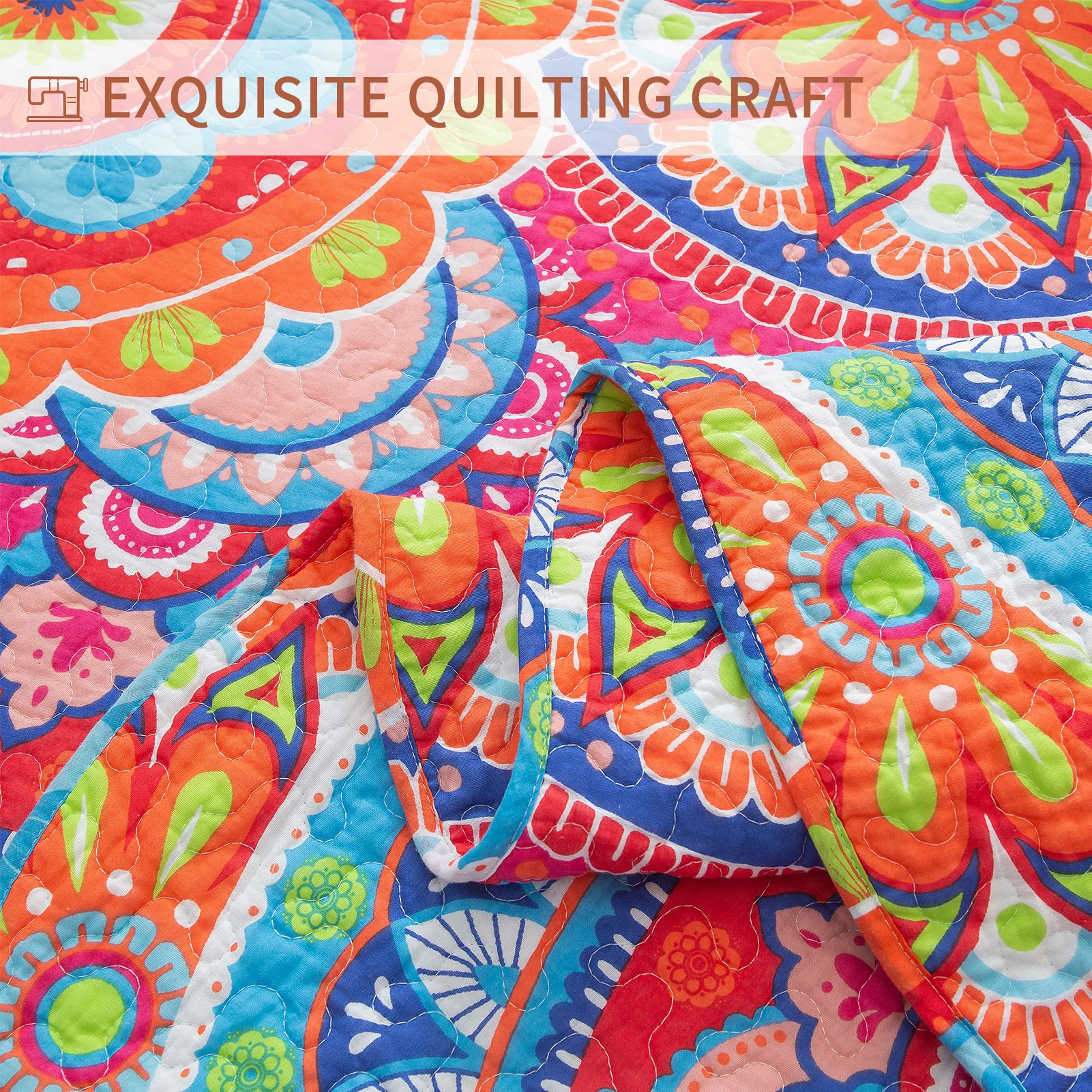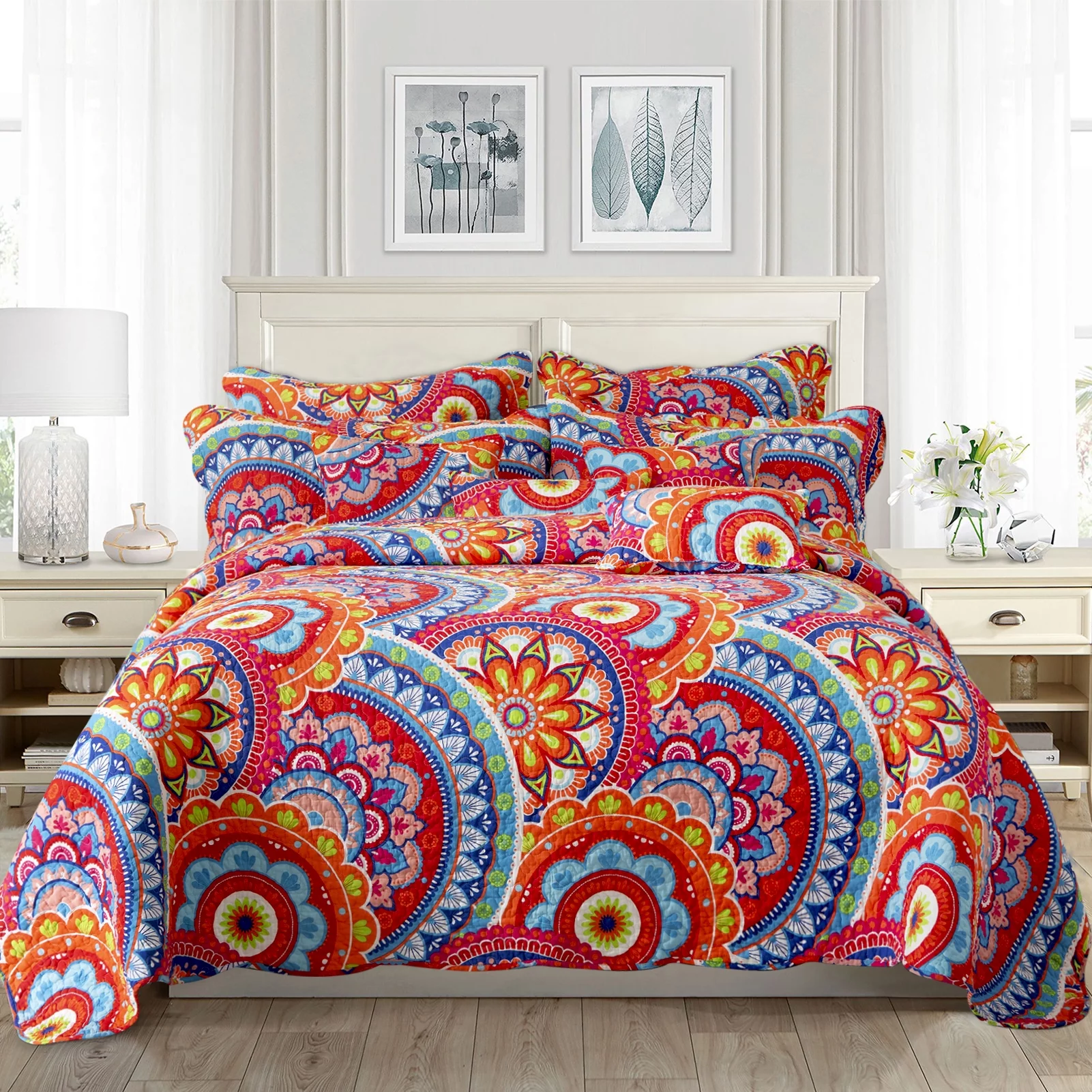 BYBYME 9-Piece Floral Pattern Cotton Quilt Set Orange-Bohemian - Queen