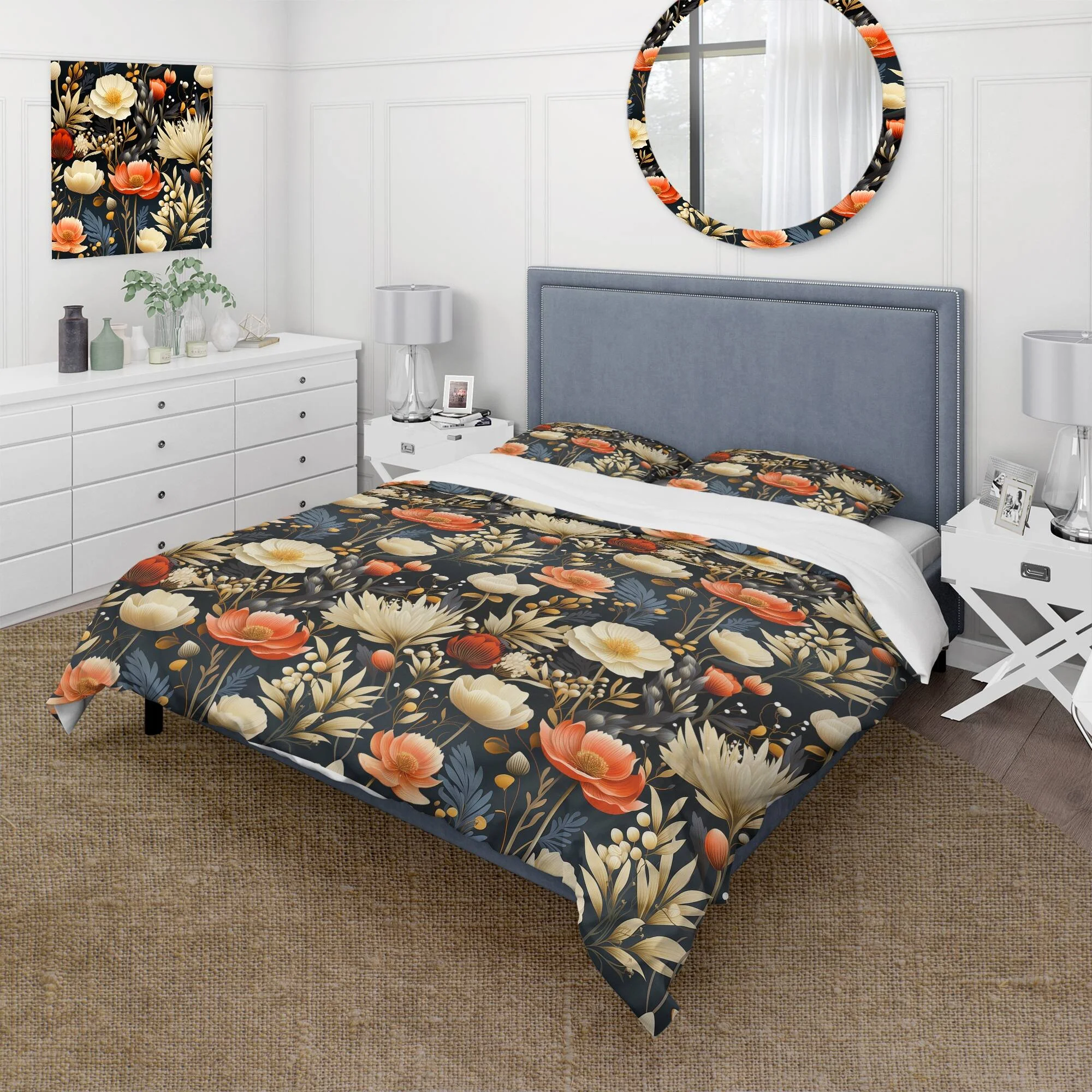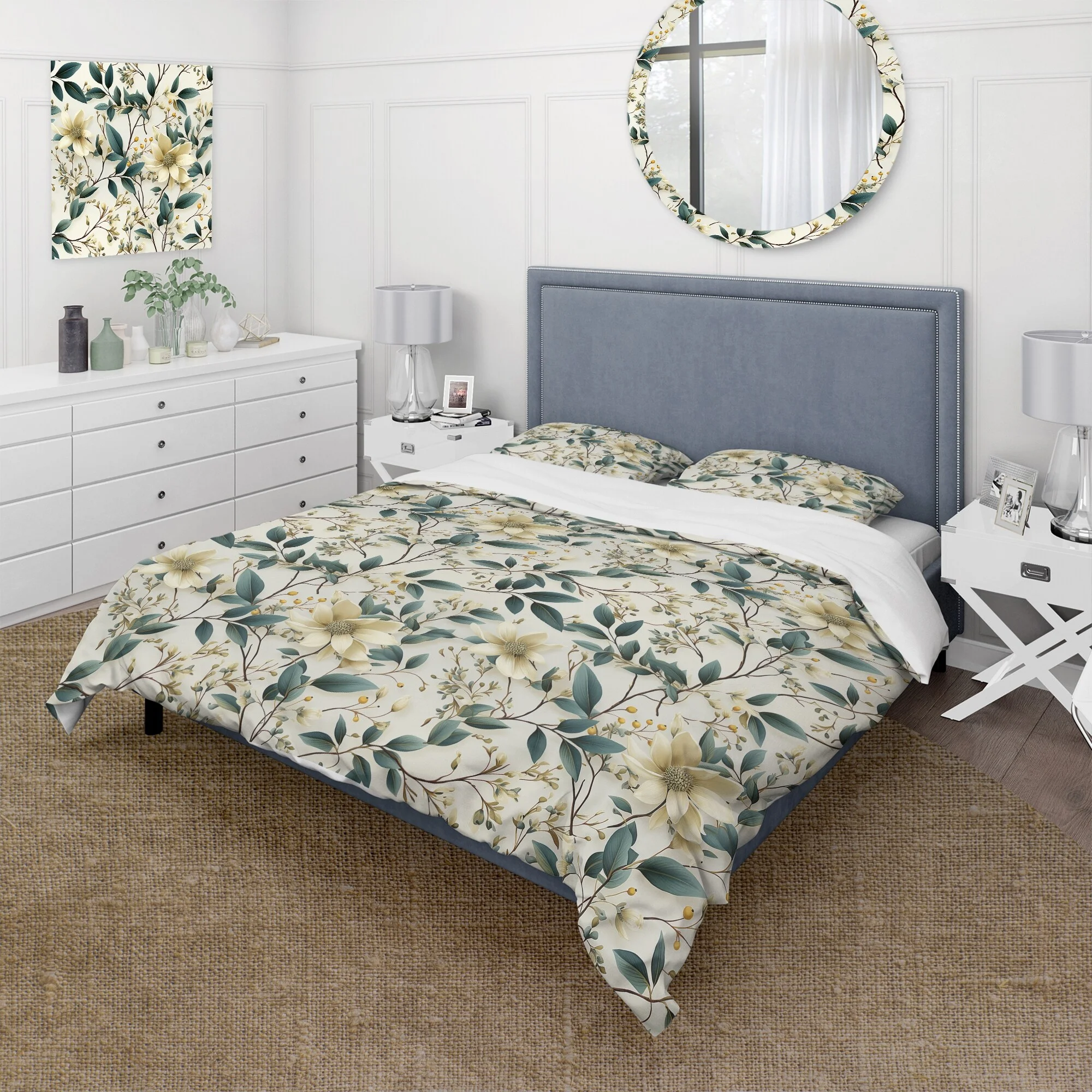 DESIGN ART Designart "Whispering Vines" Floral Bedding Cover Set With 2 Shams Full - Queen