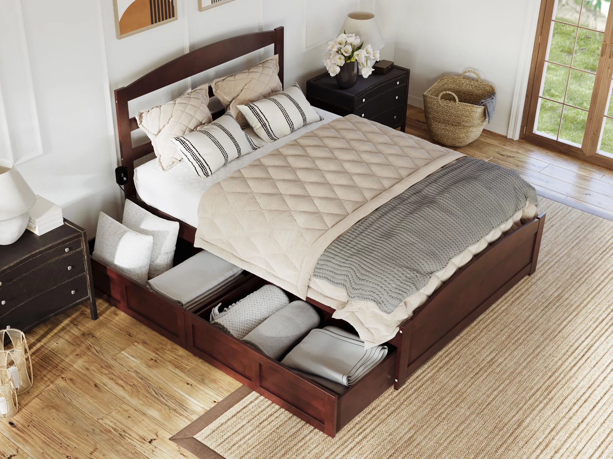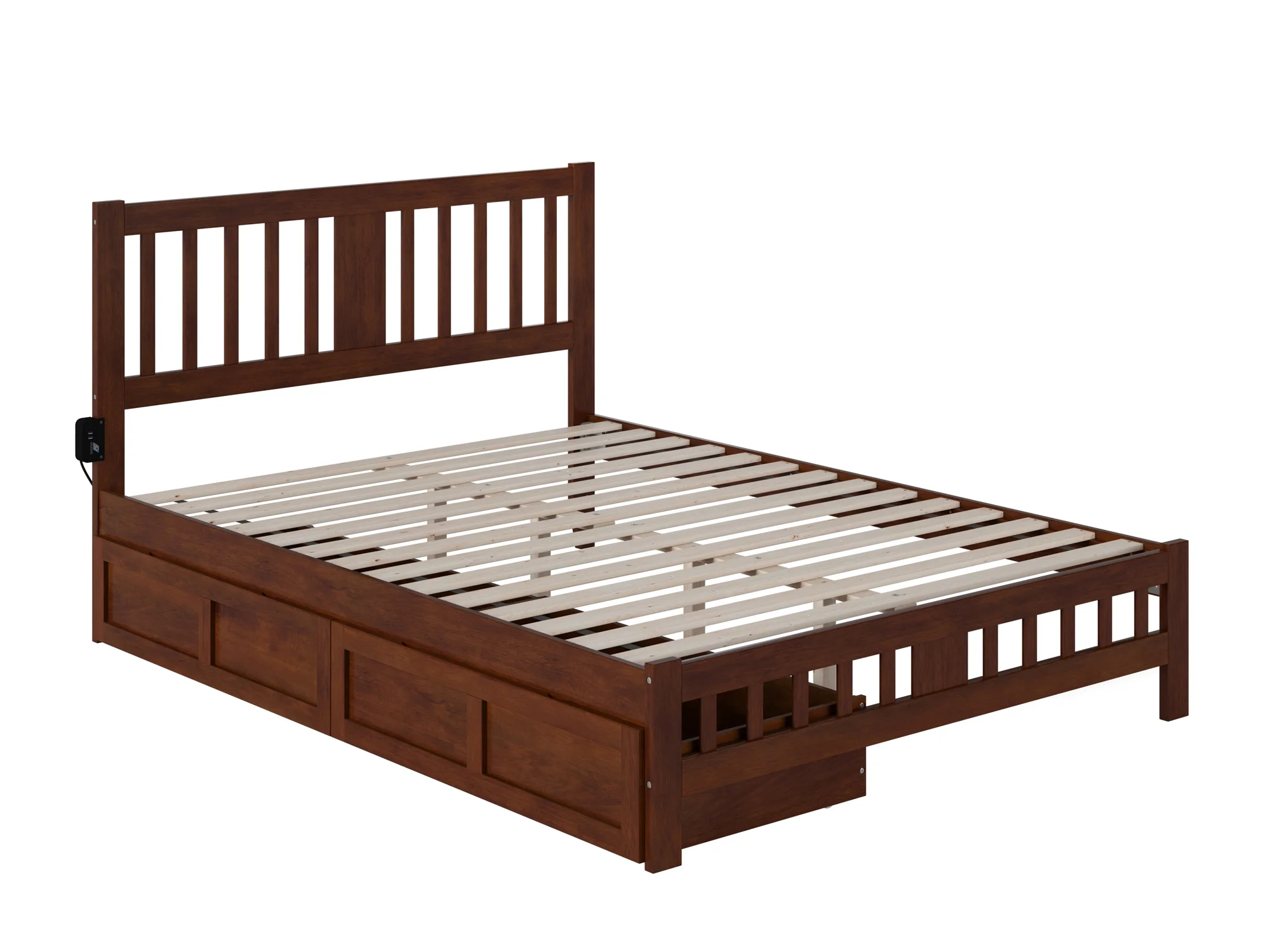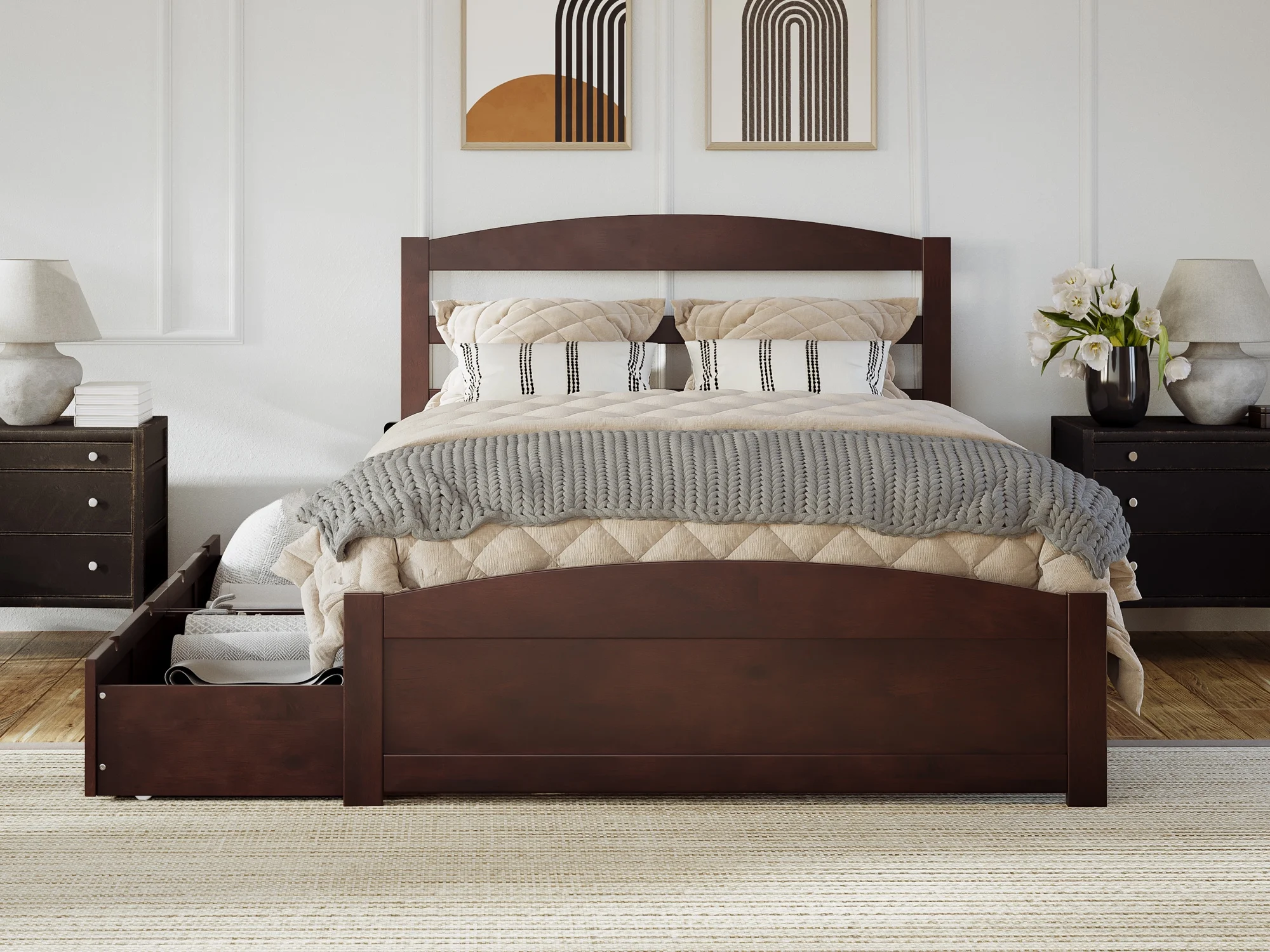 AFI Warren Queen Wood Platform Bed with Headboard Footboard & 2 Storage Drawers, Walnut