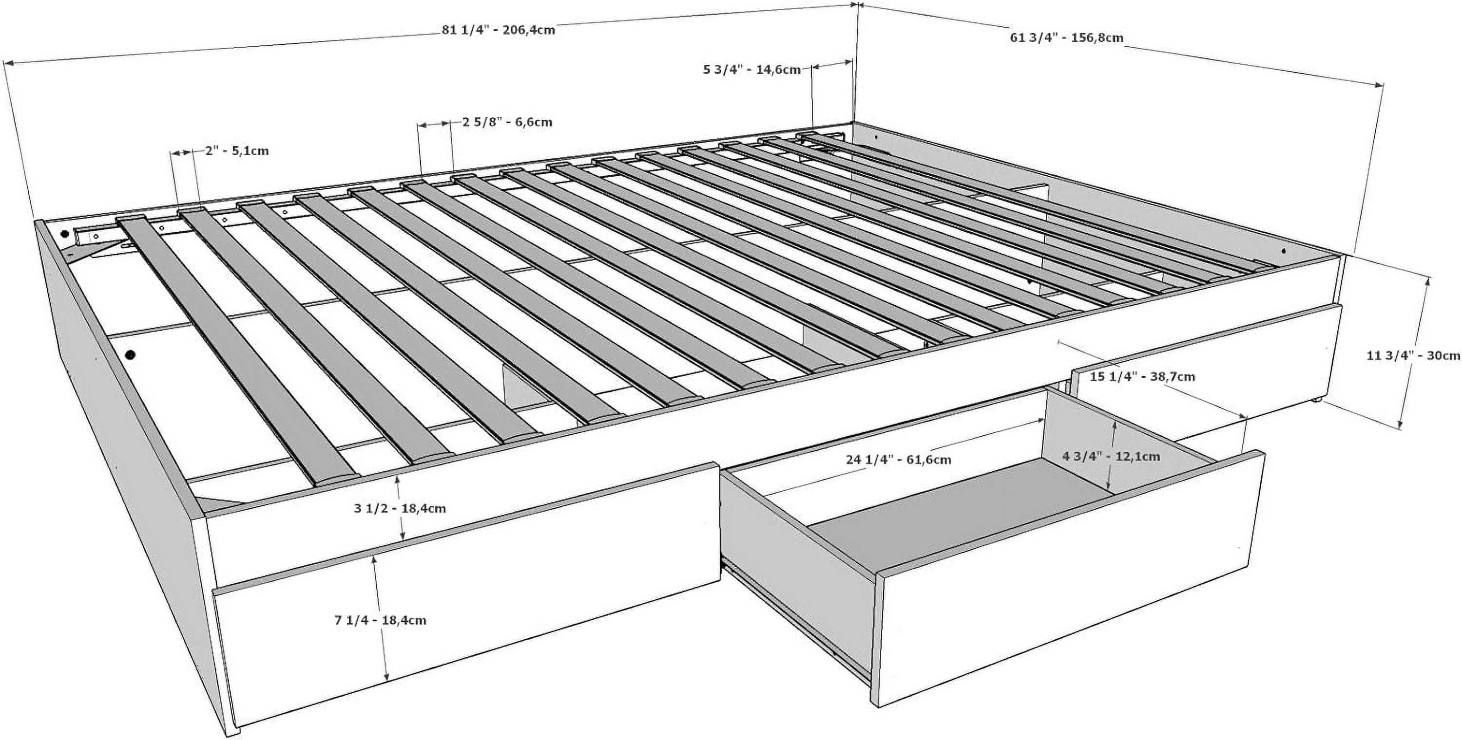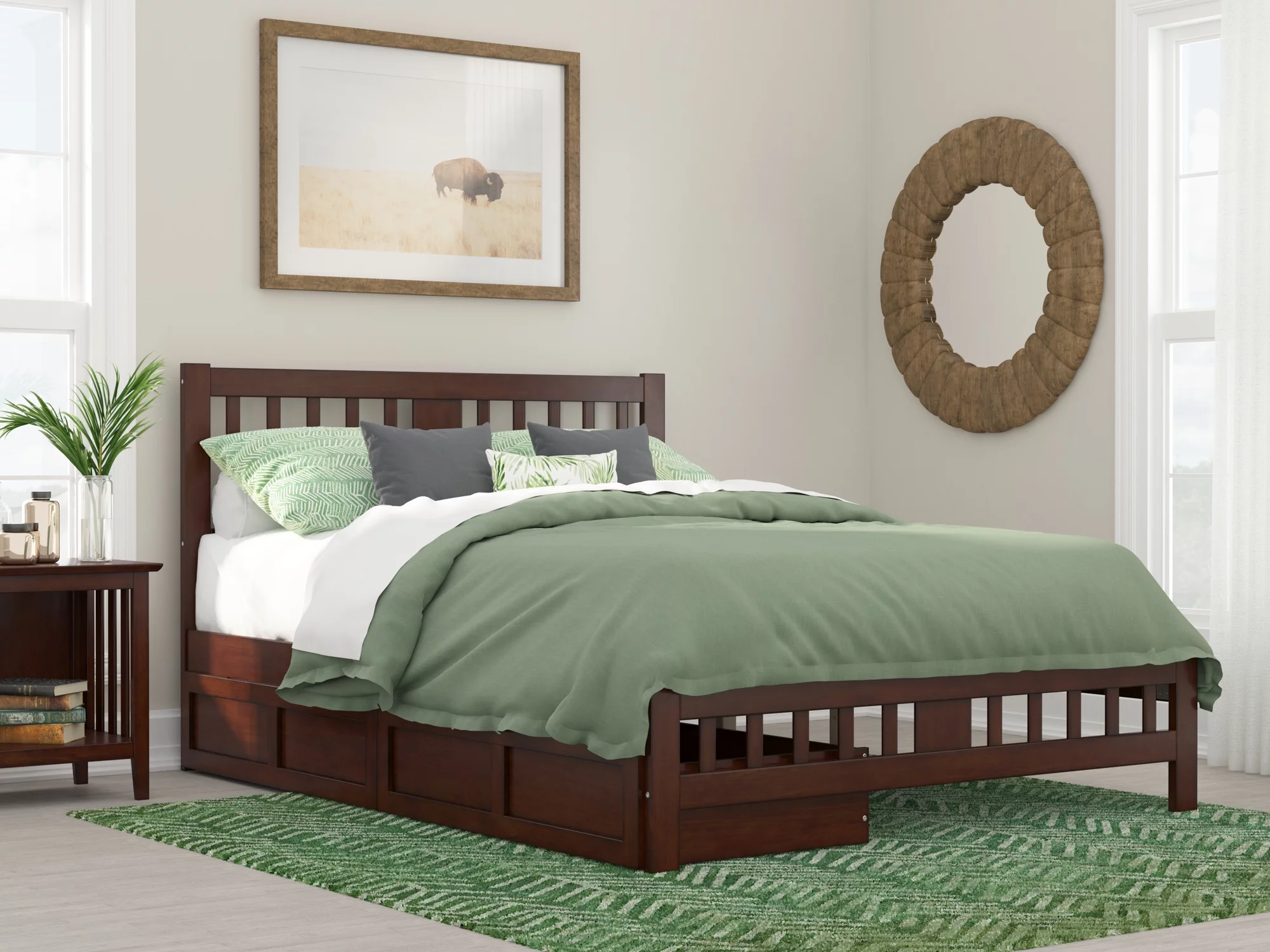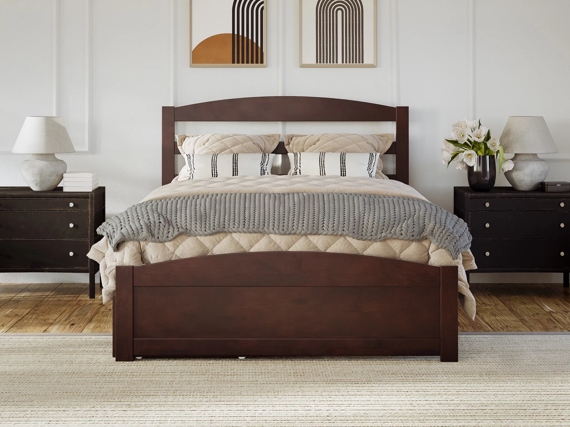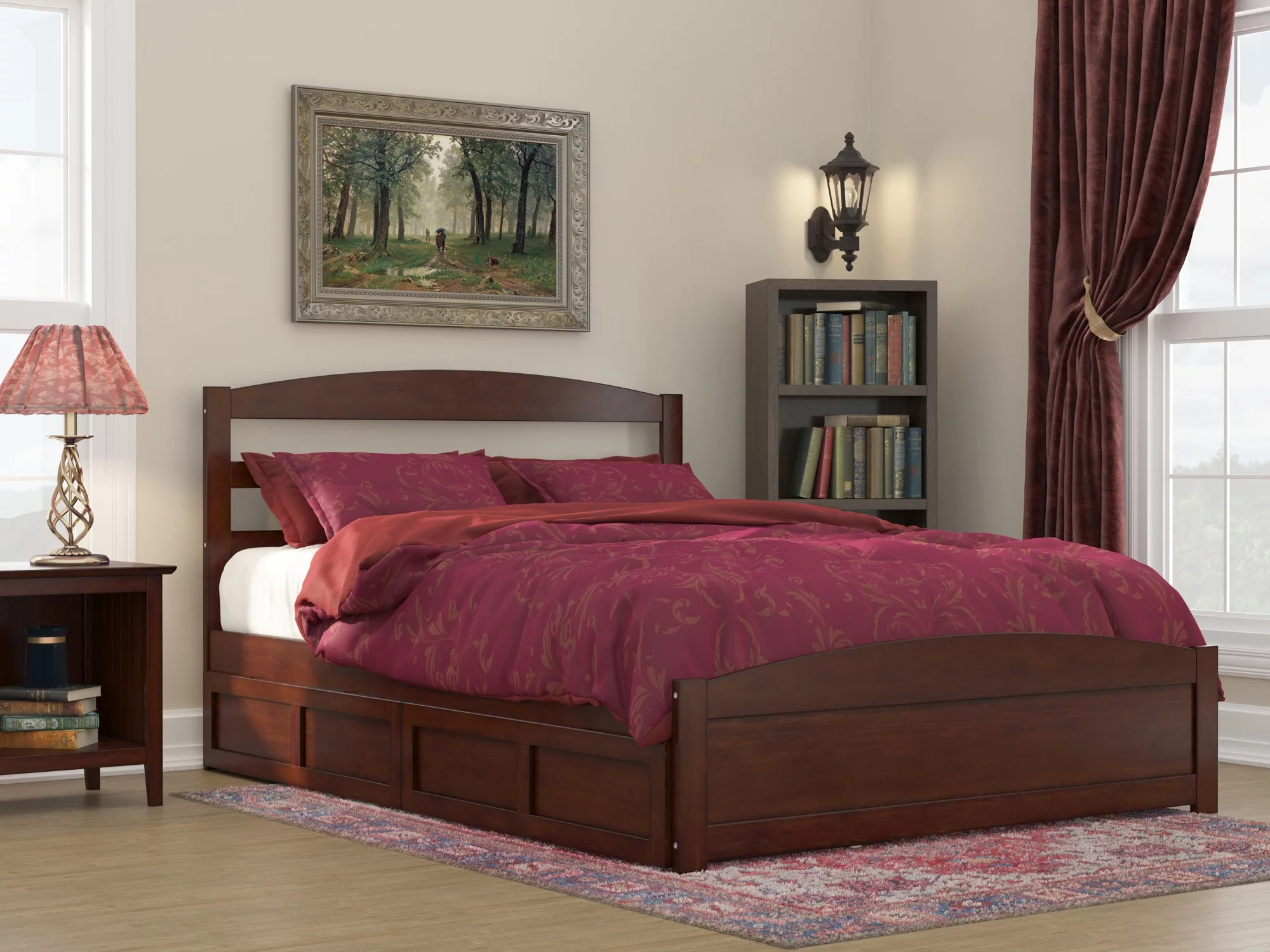 AFI Warren Queen Wood Platform Bed with Headboard Footboard & 2 Storage Drawers, Walnut