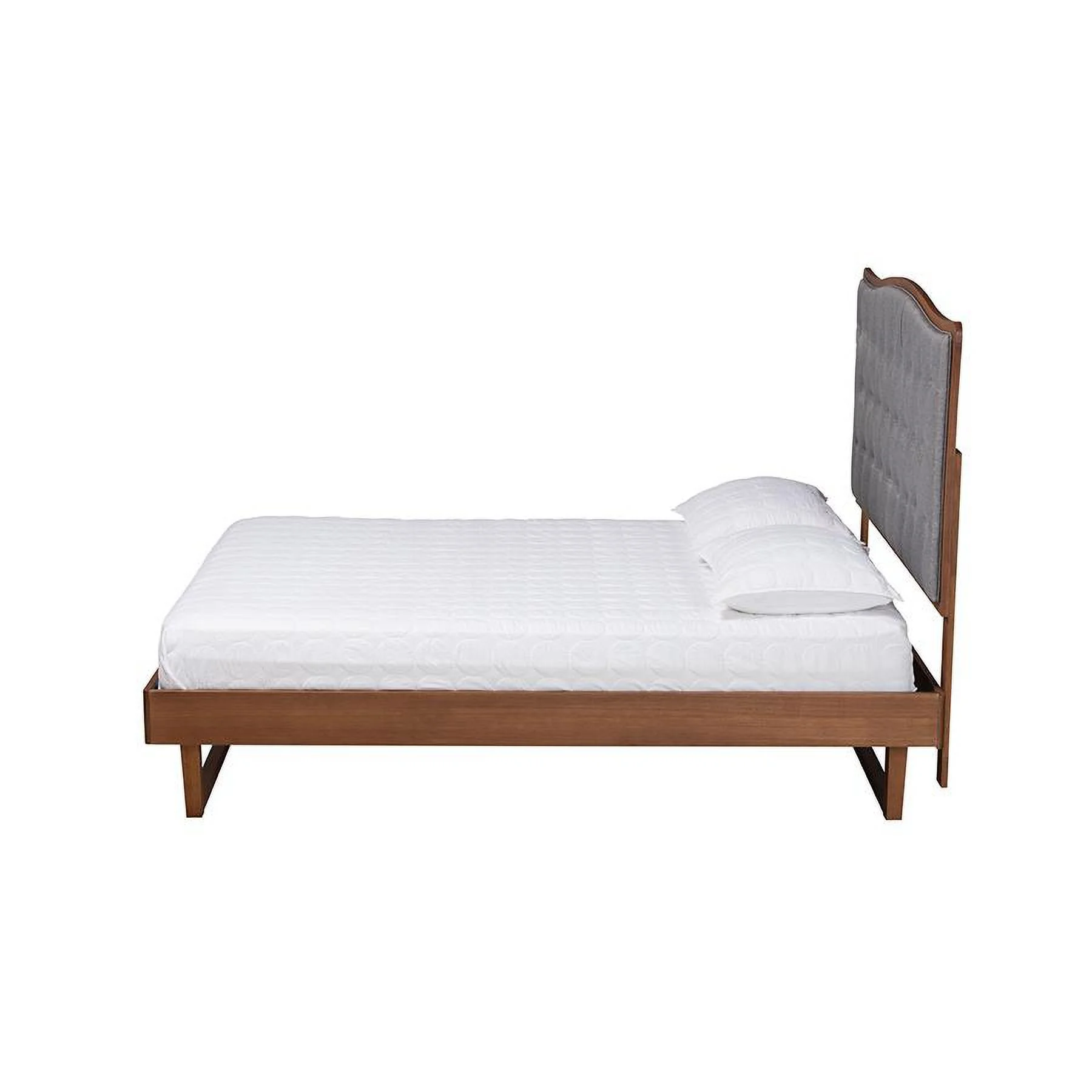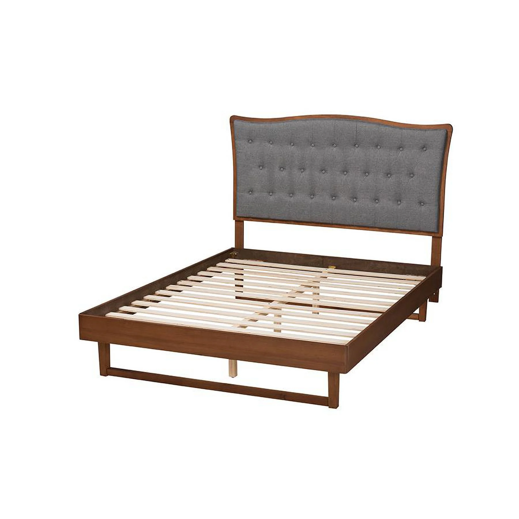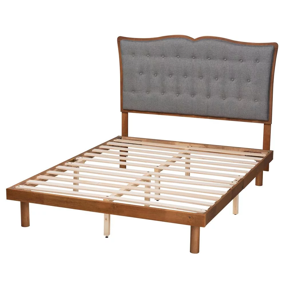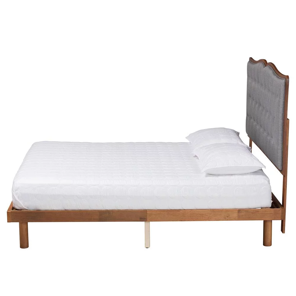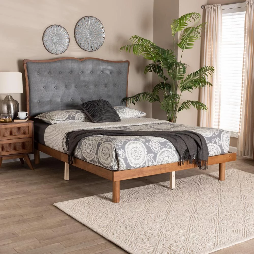 Baxton Studio Sereno Gray Fabric and Walnut Brown Wood Queen Size Platform bed