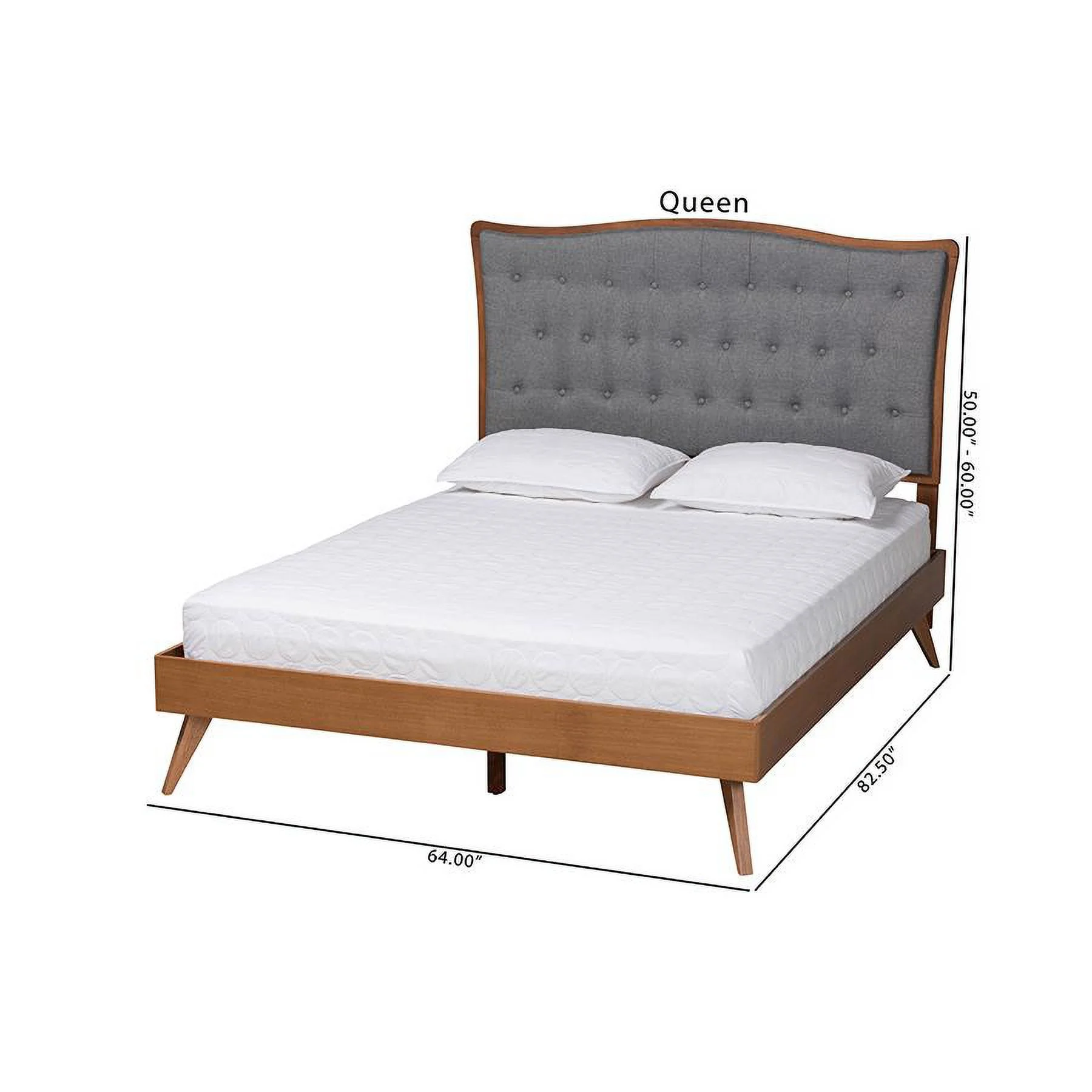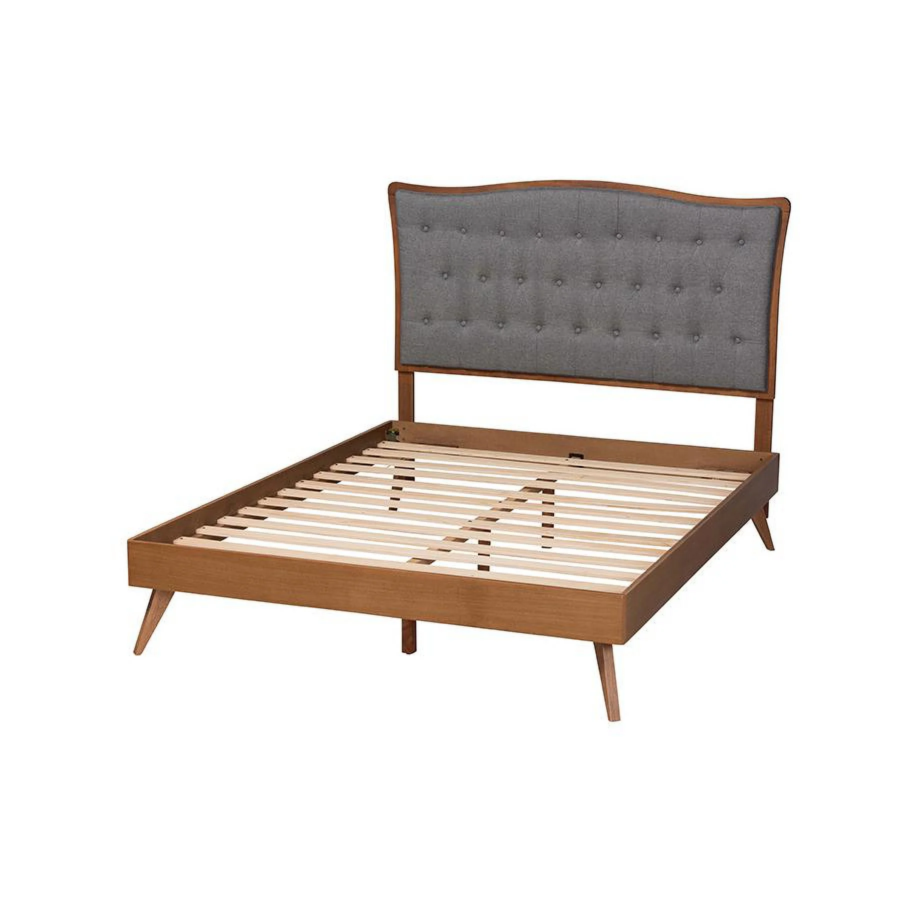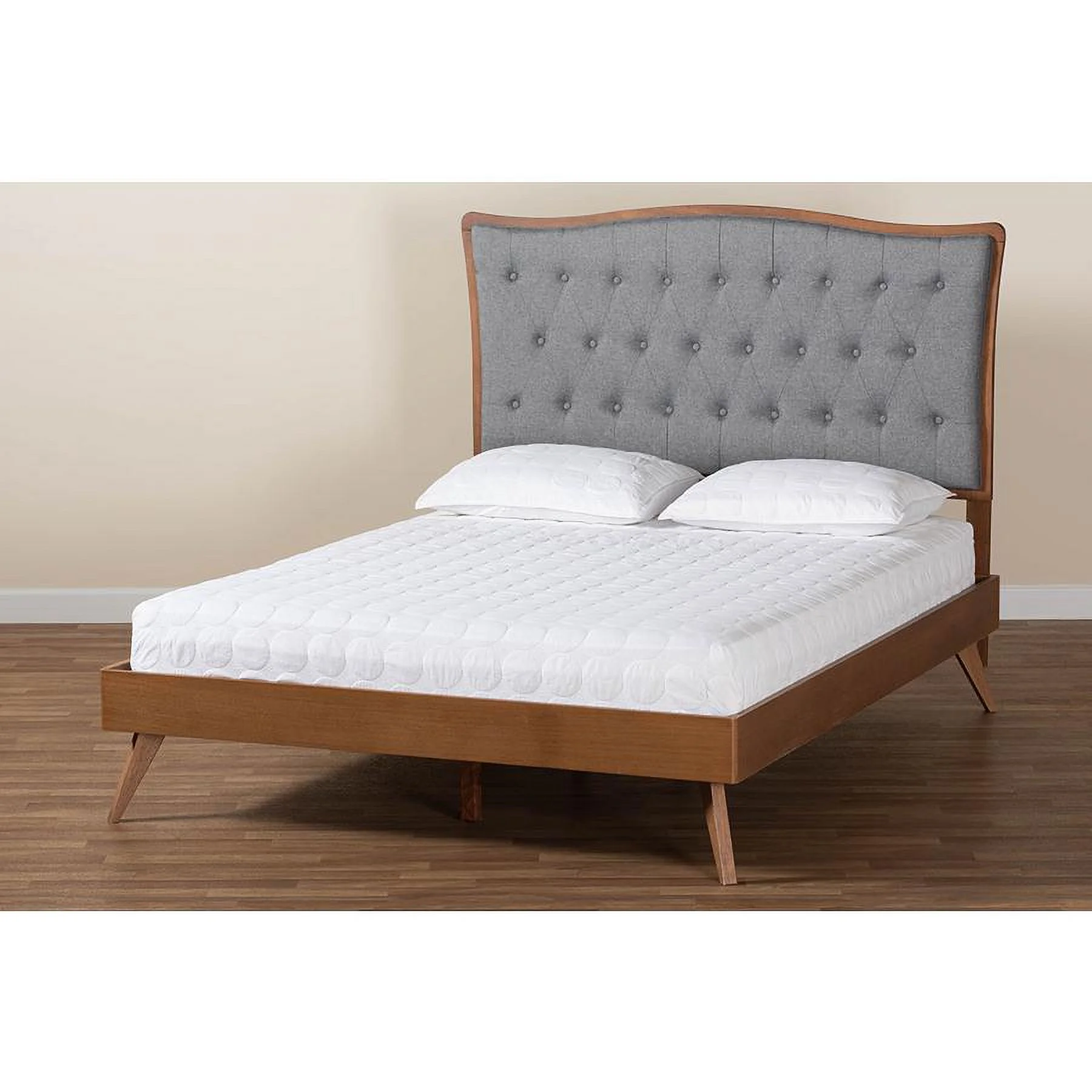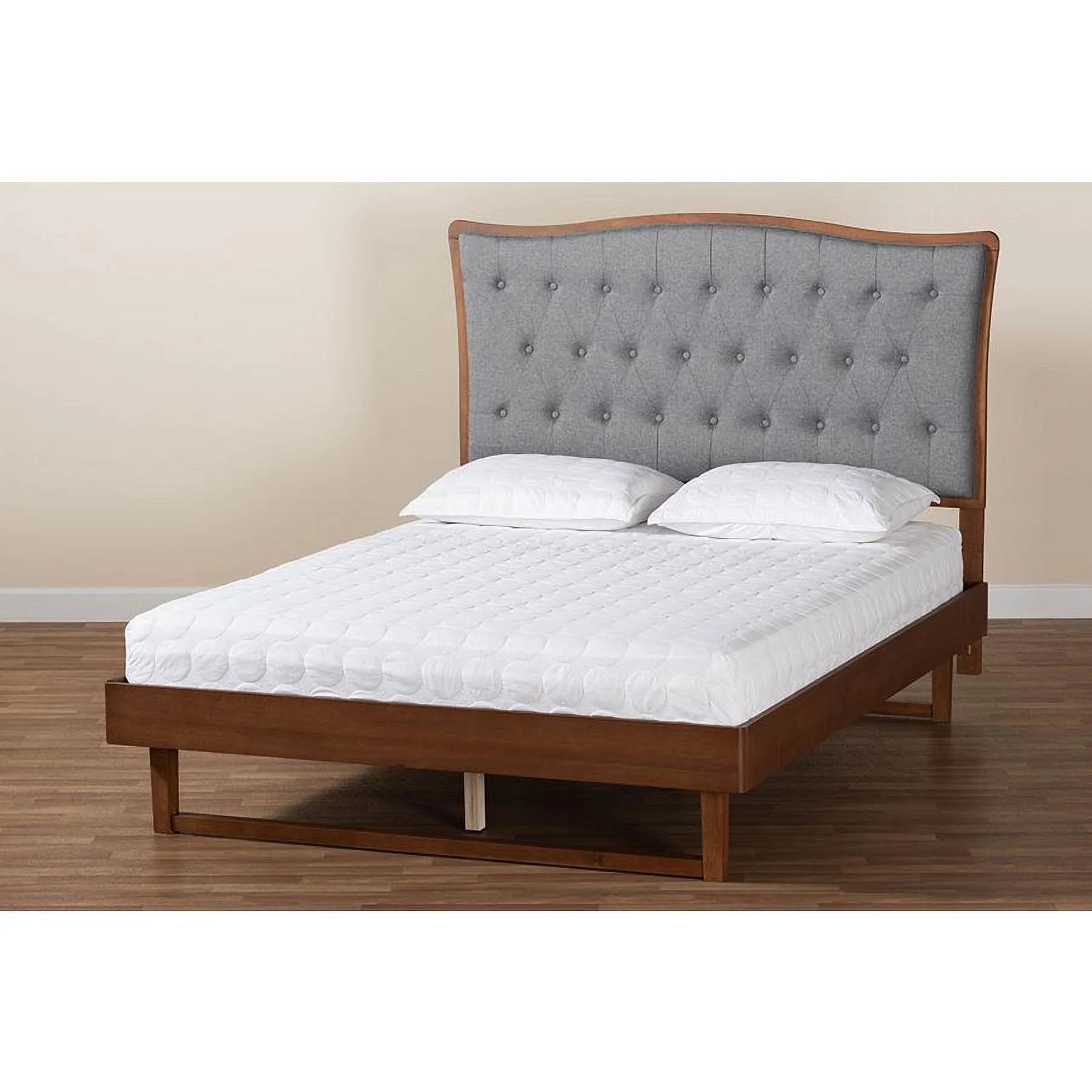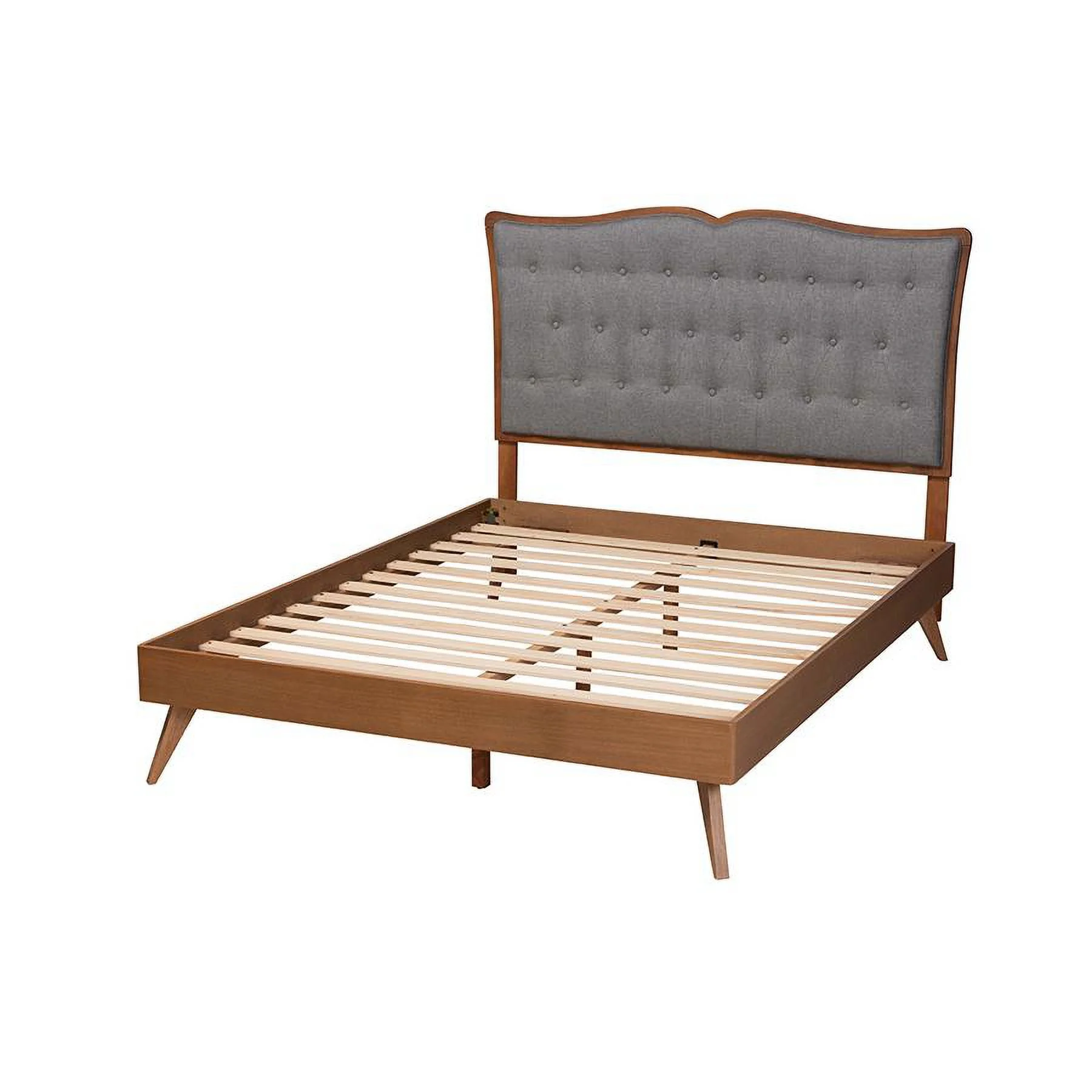 Baxton Studio Sereno Gray Fabric and Walnut Brown Wood Queen Size Platform bed