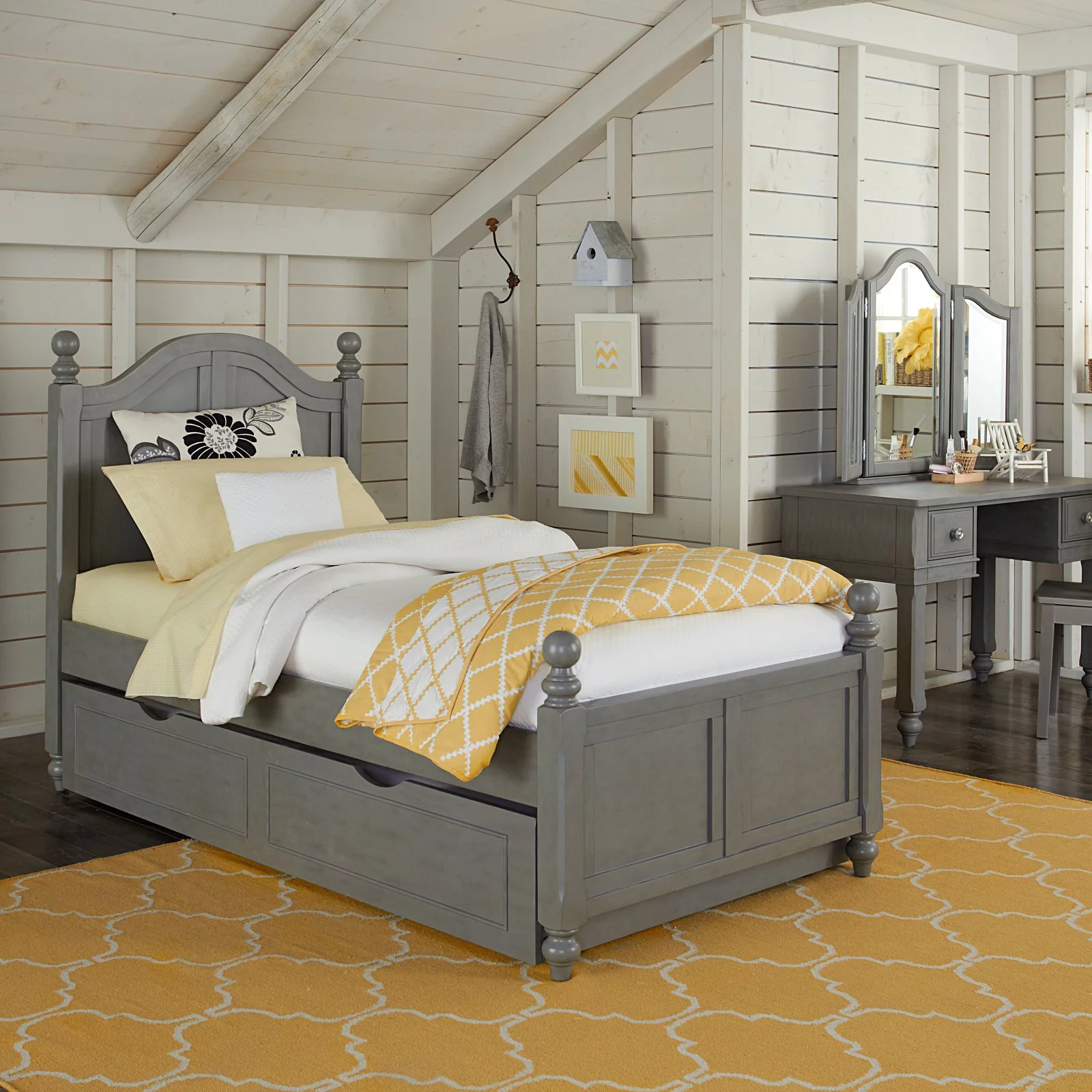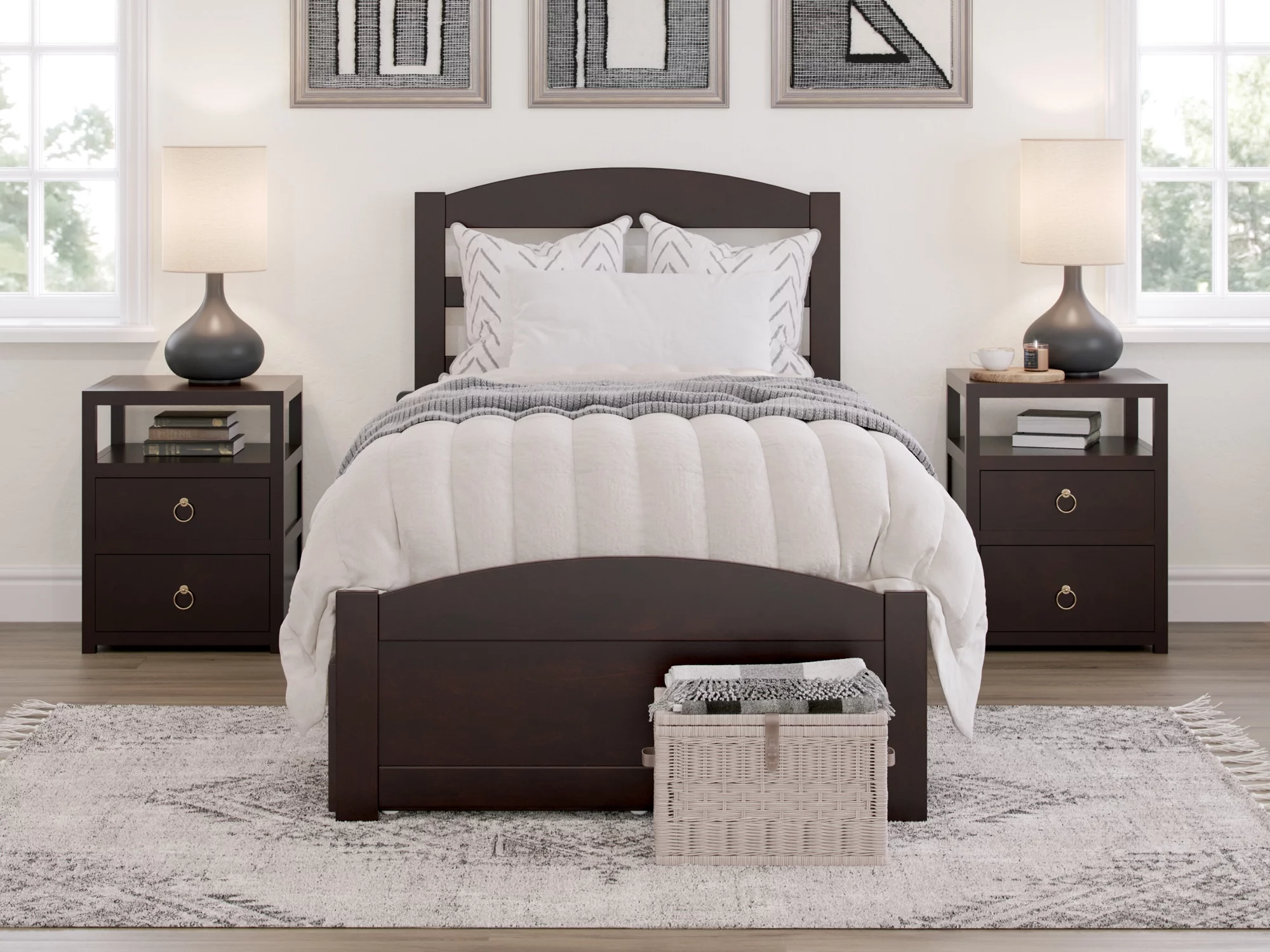 Nantucket Queen Platform Bed with Matching Footboard and TXL Trundle in Walnut