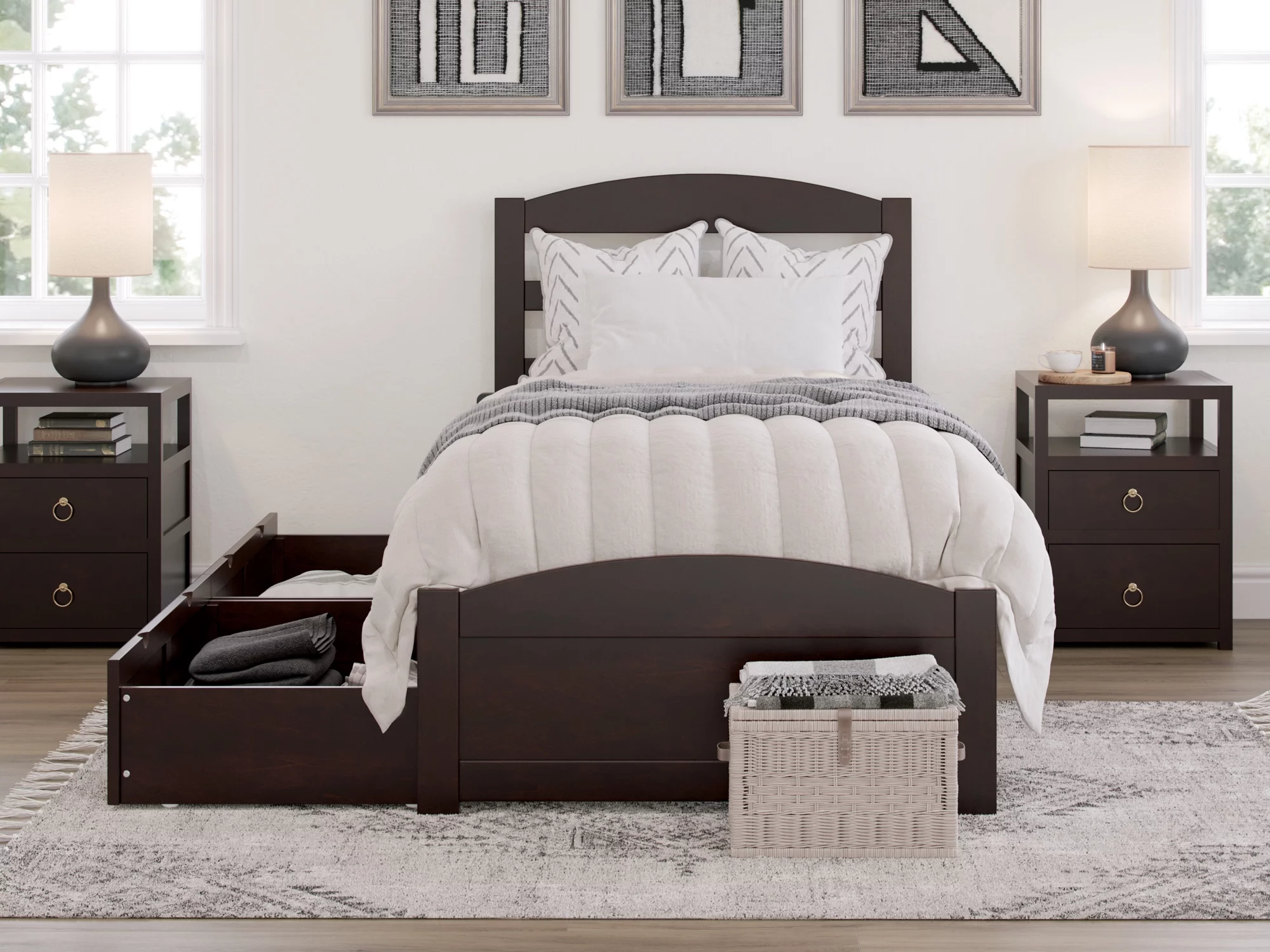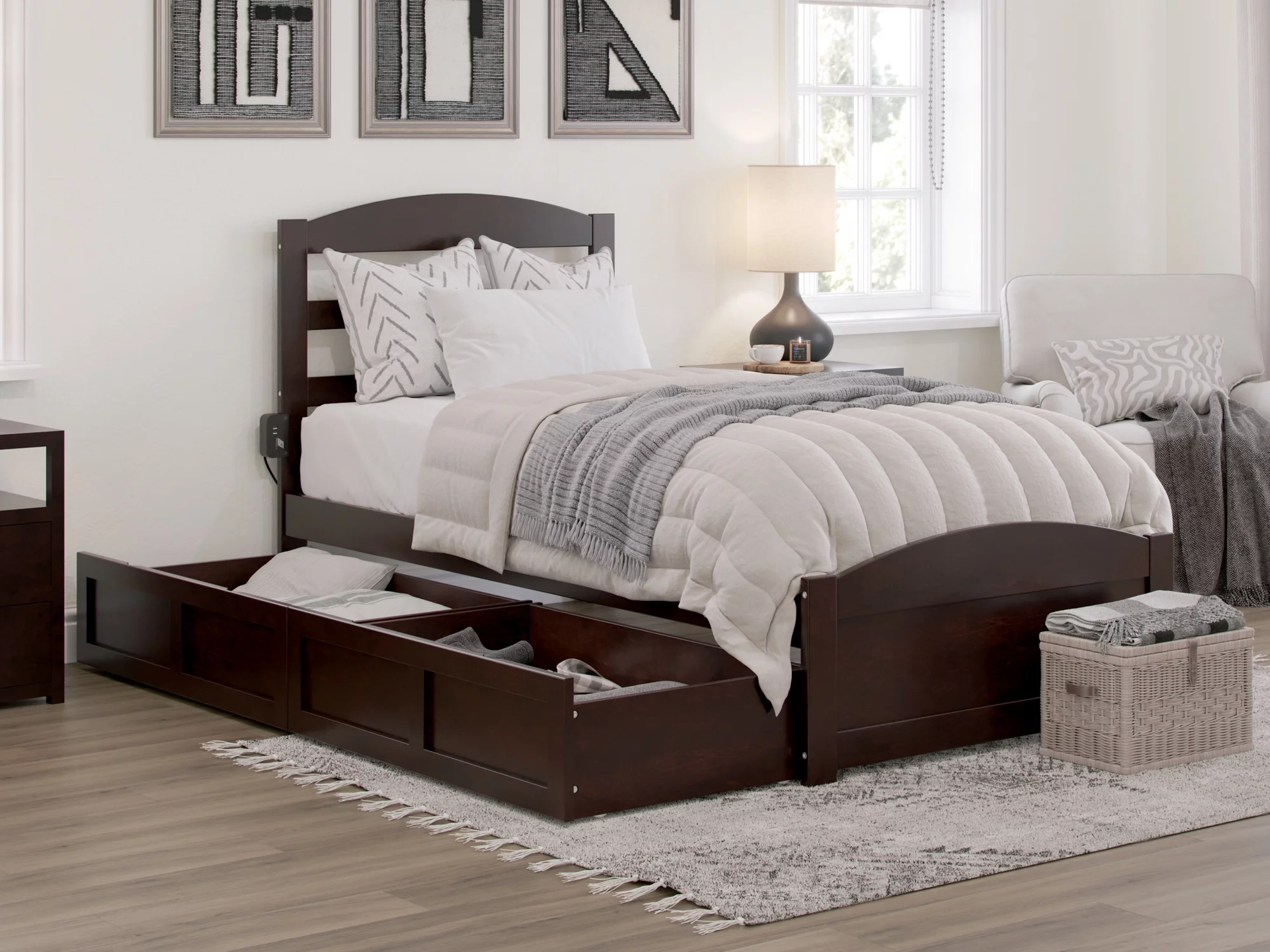 AFI Warren Twin Wood Platform Bed with Headboard Footboard & 2 Storage Drawers, Espresso