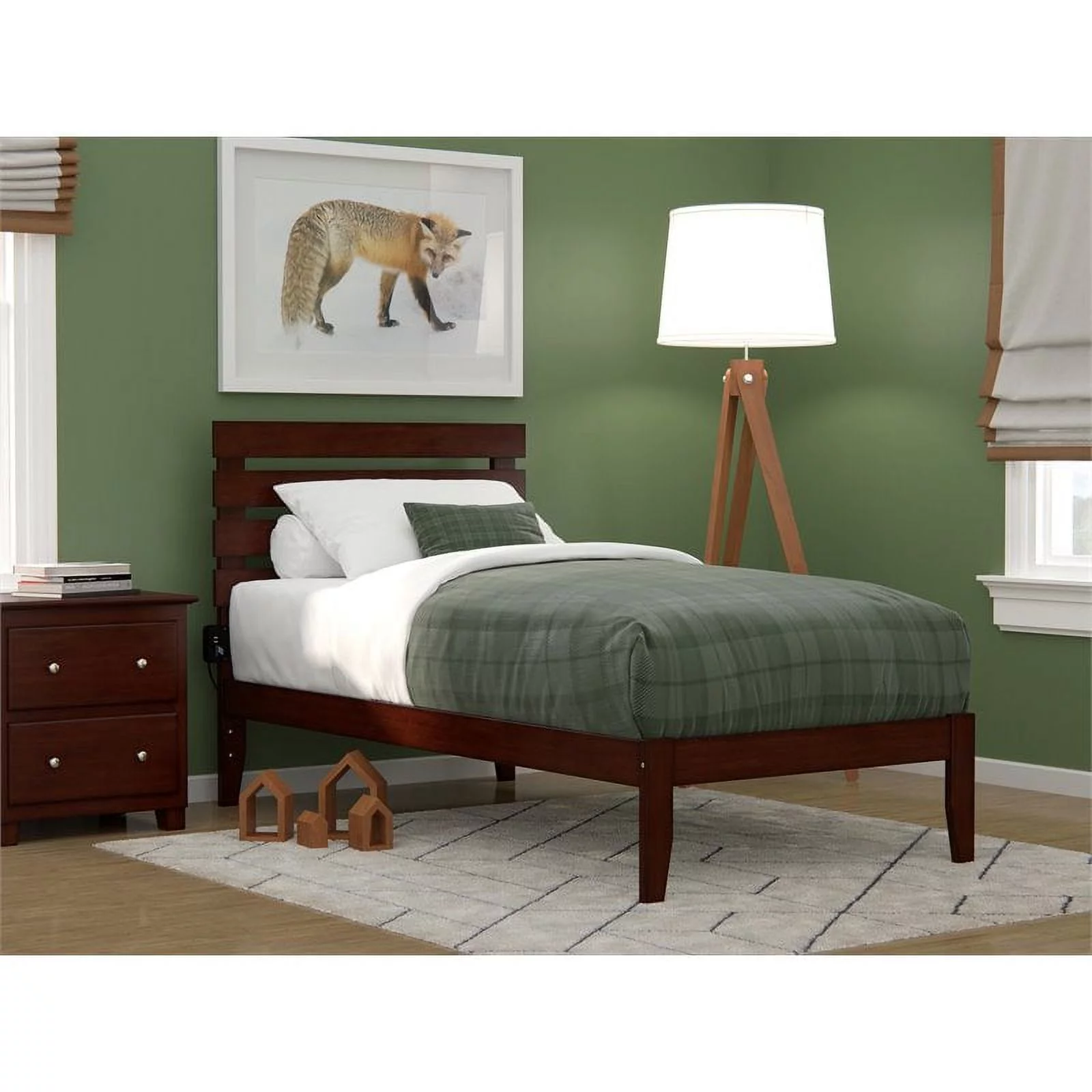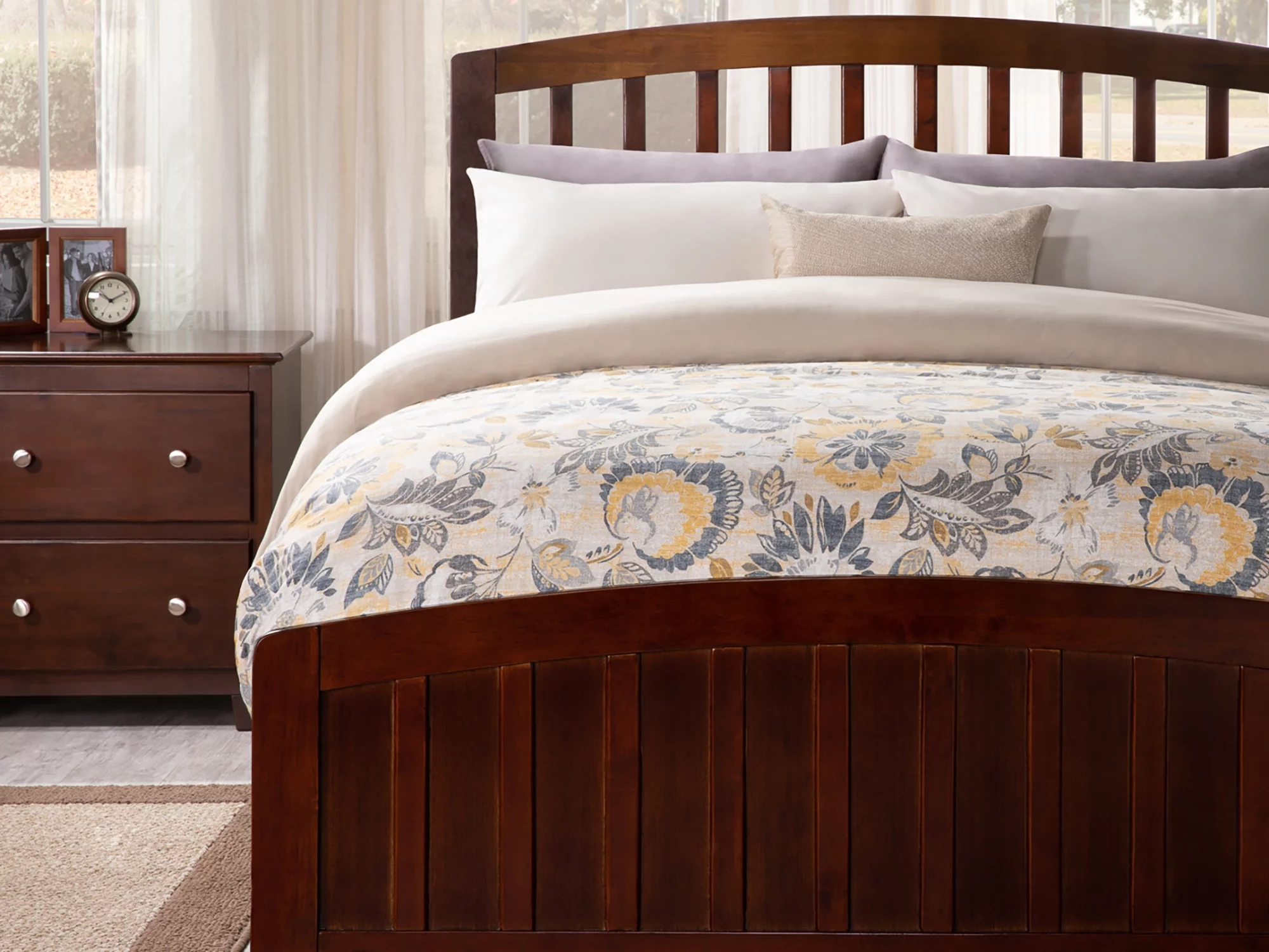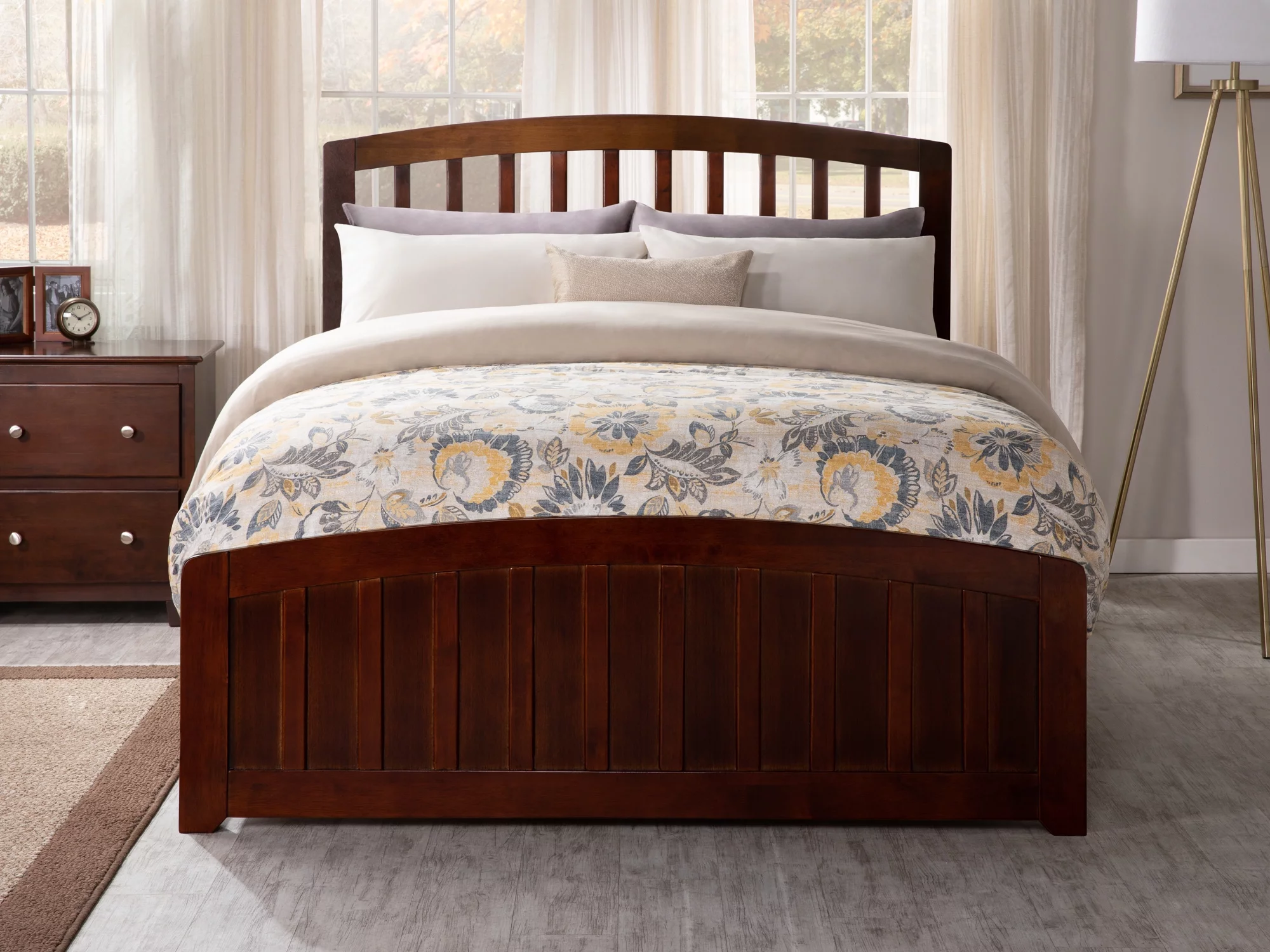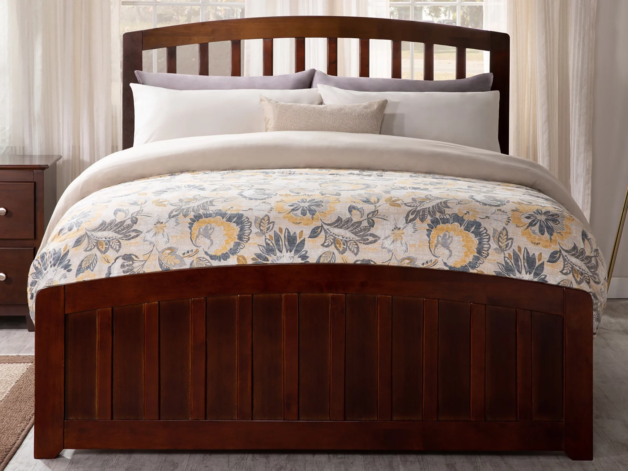 AFI Richmond Full Wood Platform Bed with Slatted Headboard and Footboard, Walnut