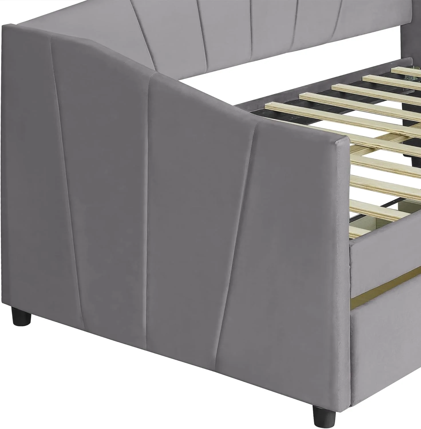 Velve Upholsered Daybed Wih wo Sorage Drawers, Woode Daybed Frame (Gray)