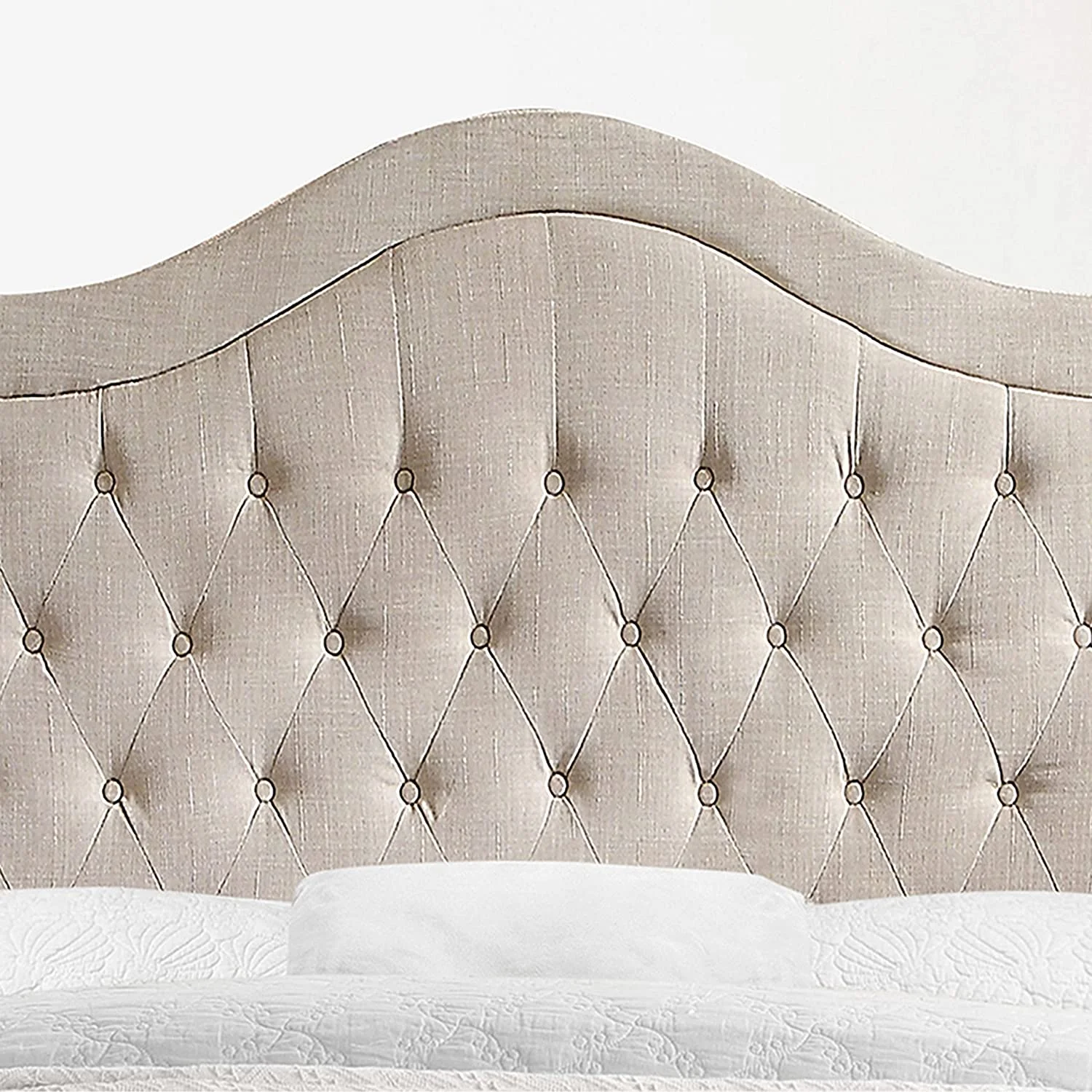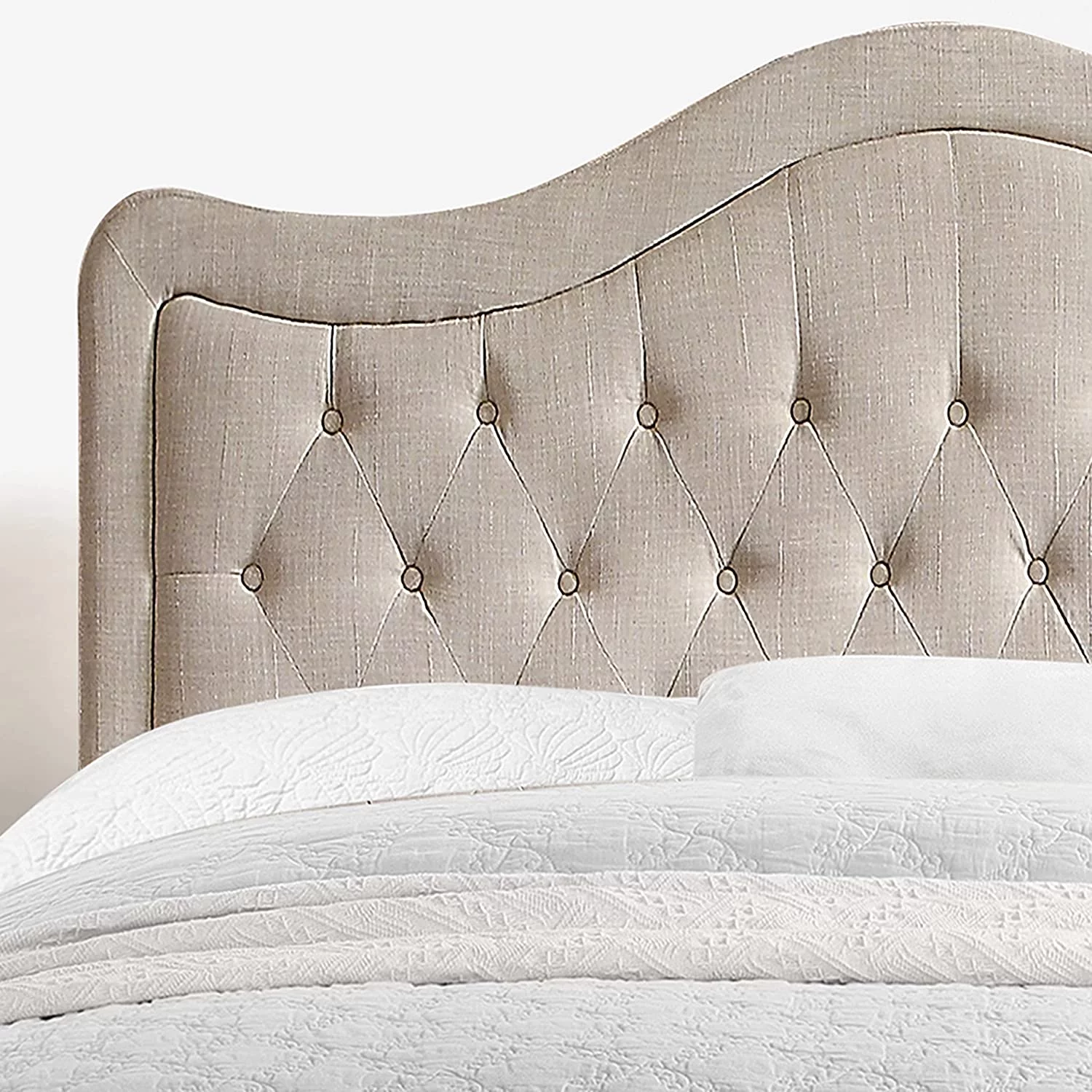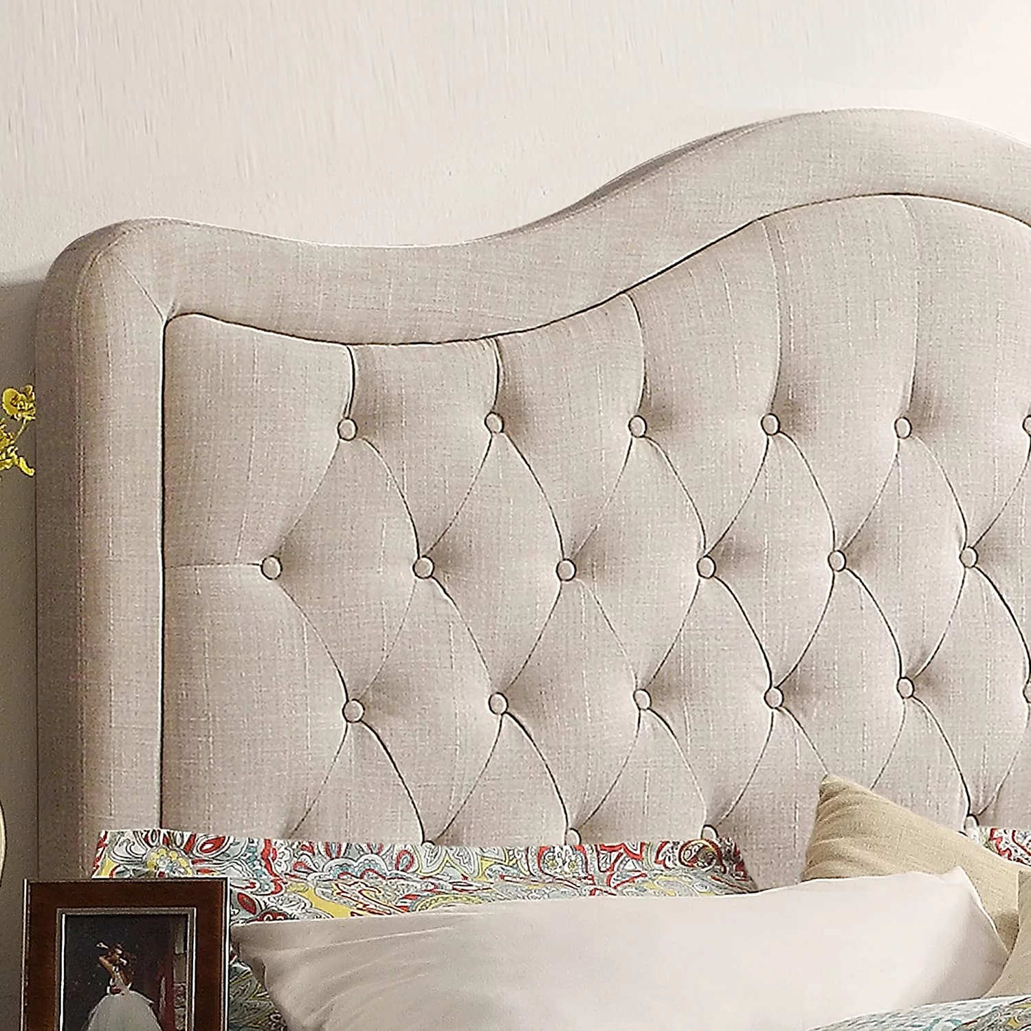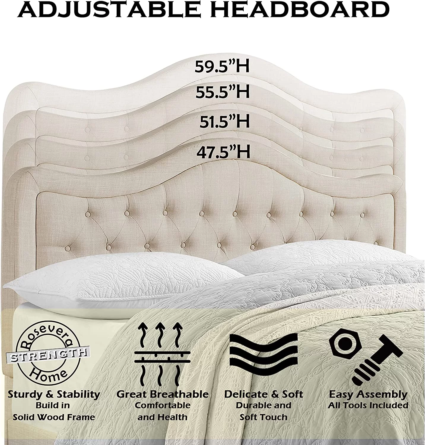 QCAI Grayson Adjustable Headboard Bed with Fine Polyester and Button Tufting for Bedroom, Full, Sand