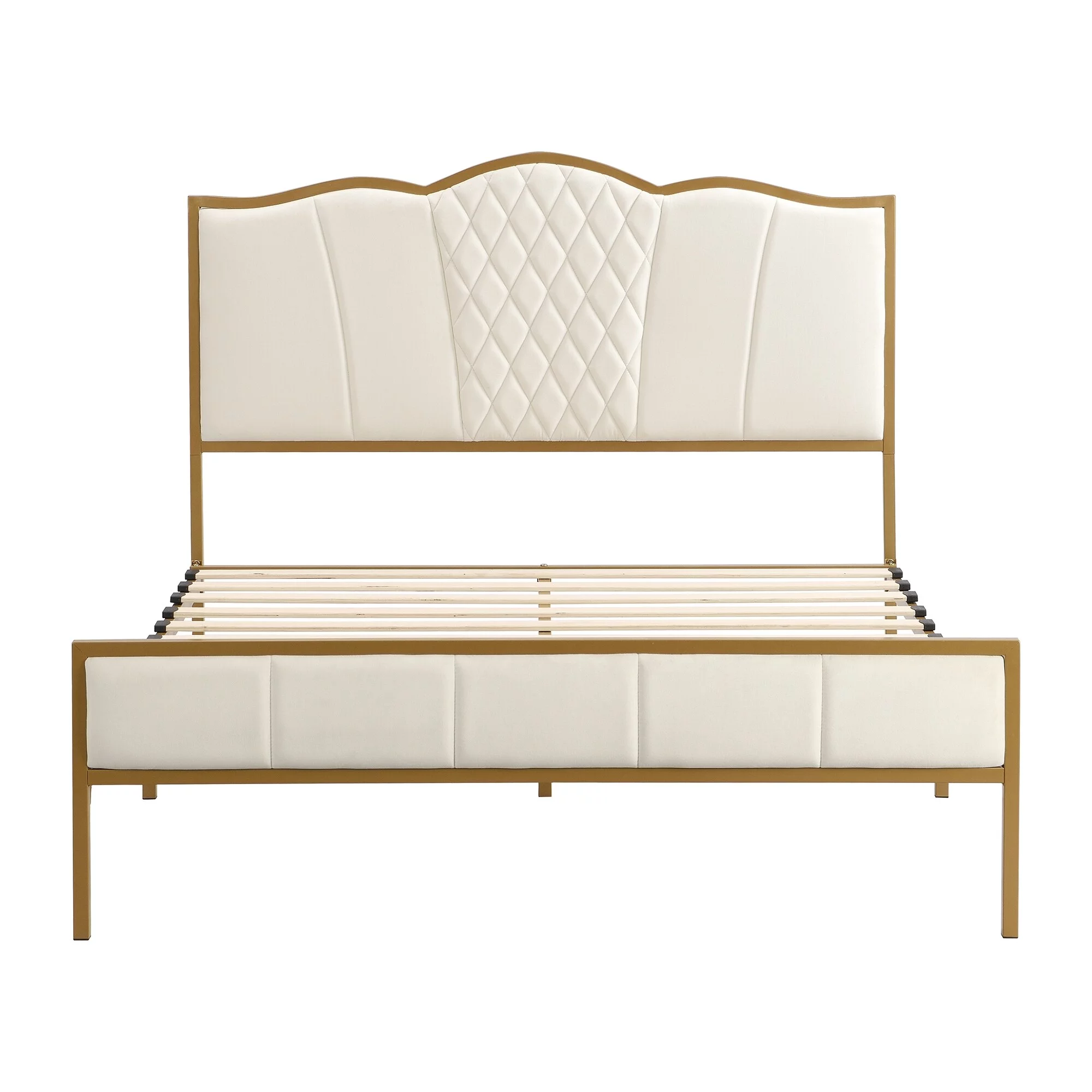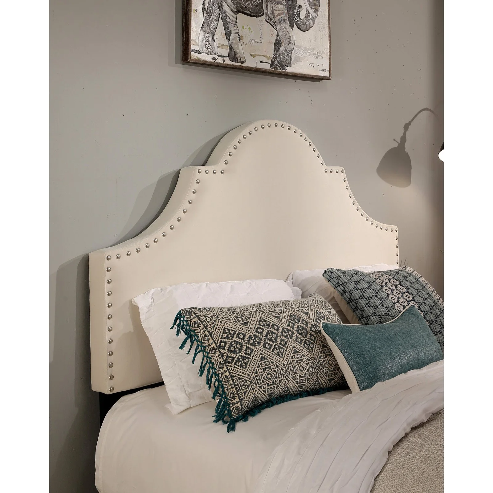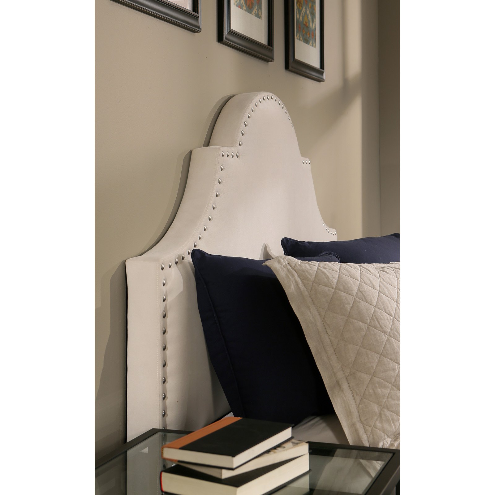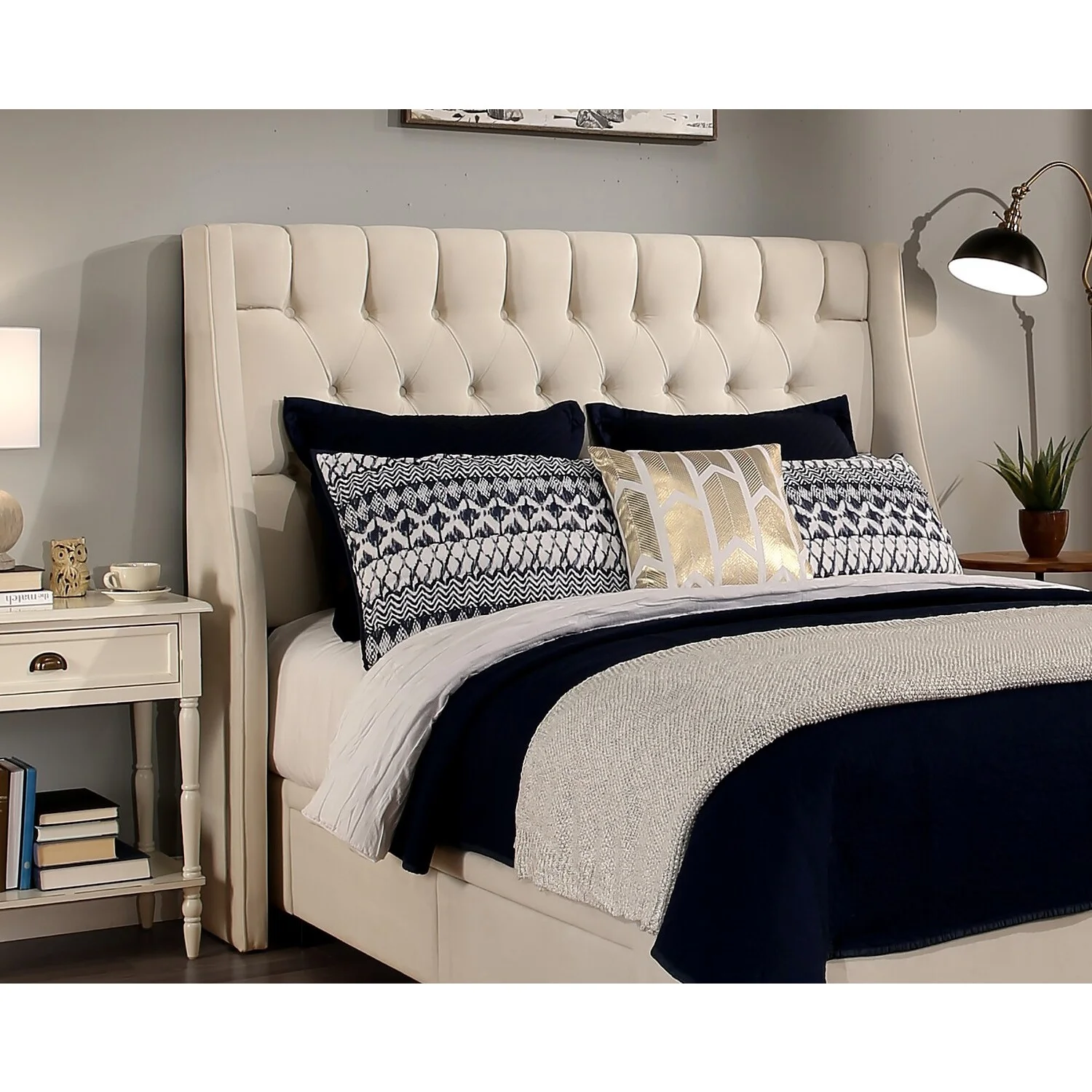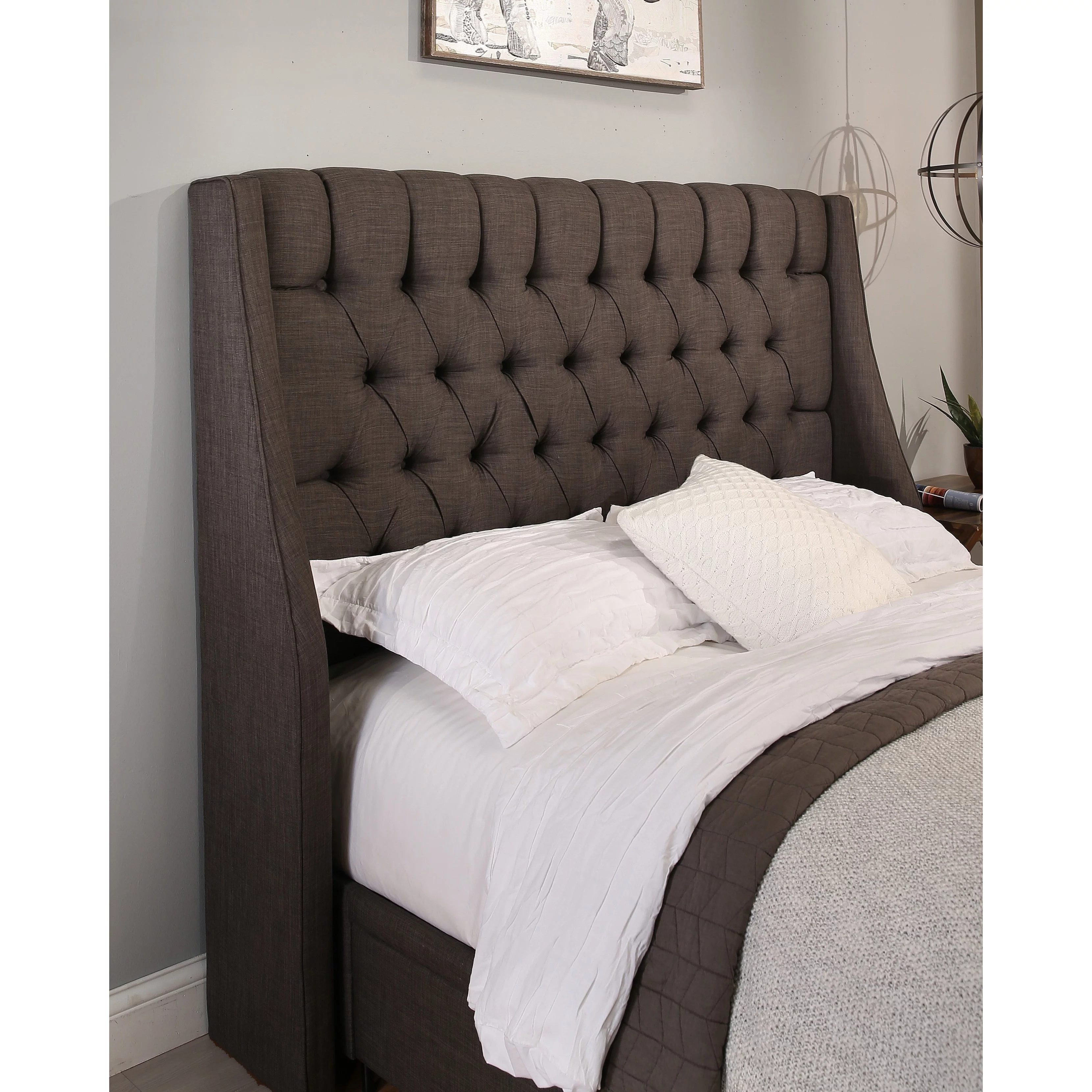 QCAI Grayson Adjustable Headboard Bed with Fine Polyester and Button Tufting for Bedroom, Full, Sand