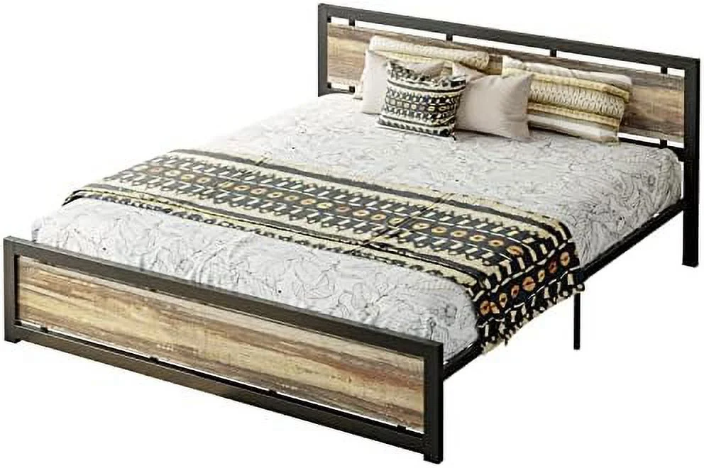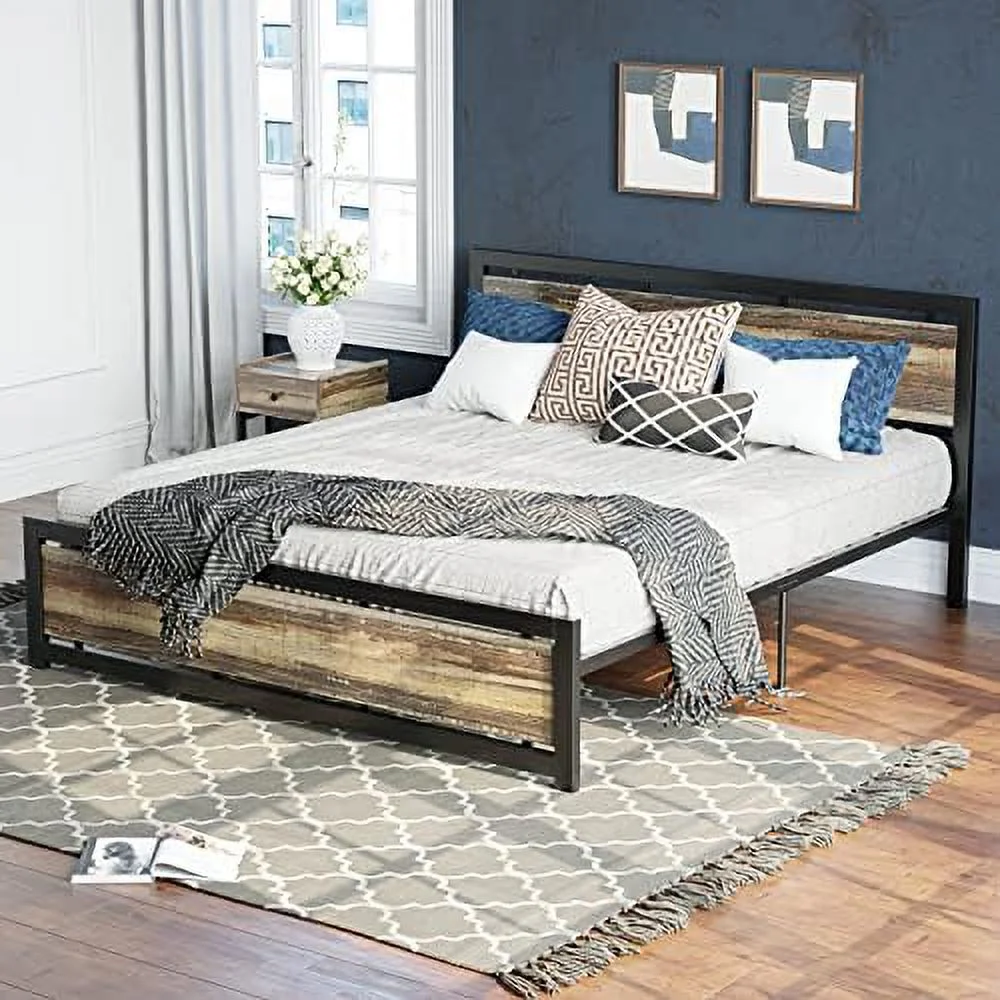 Baxton Studio Hawthorn Gray Fabric and Brown Wood Queen Size Platform Bed