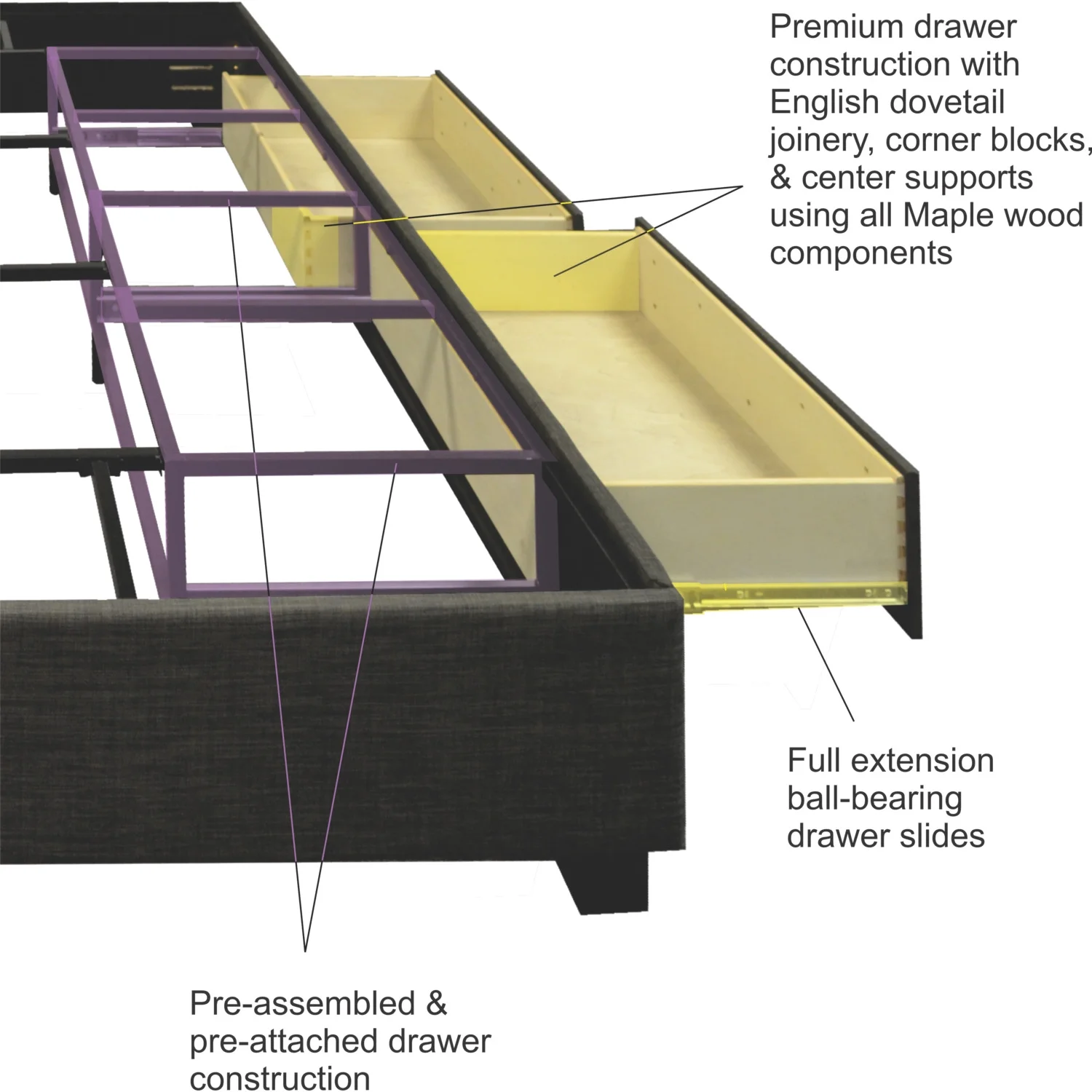 Republic Design House Cambridge Upholstered "Steel-Core" Platform Bed with 2 Drawers