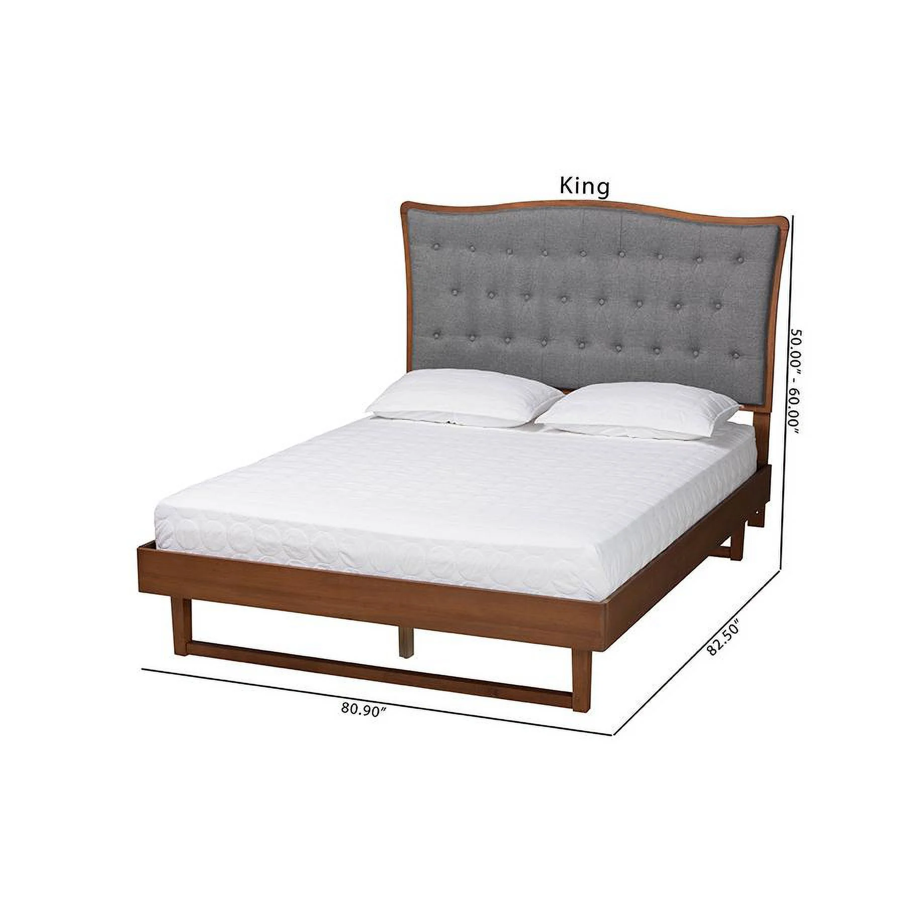 Baxton Studio Bryn Gray Fabric and Walnut Brown Wood King Size Platform Bed