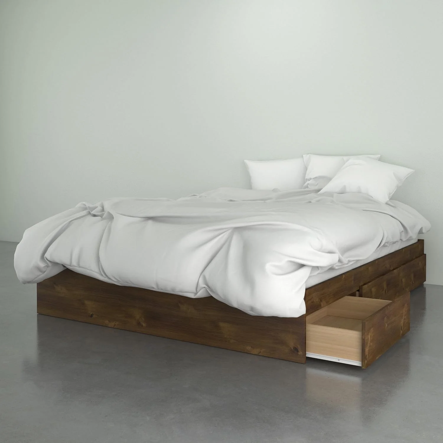 Nantucket Queen Wood Platform Bed with Footboard and Storage Drawers in Walnut