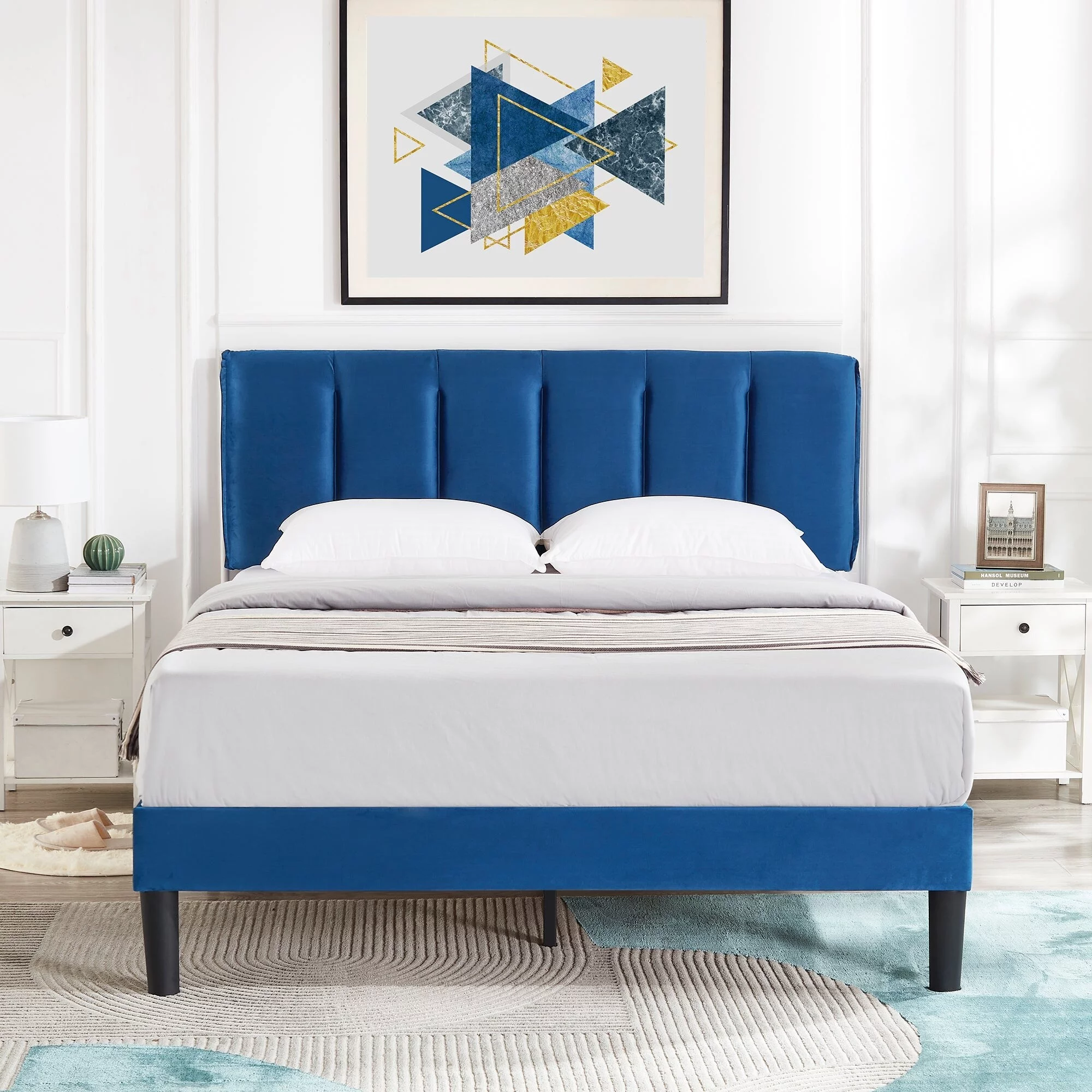 Javlergo Tufted Upholstered Bed Frame with Adjustable Height Headboard Blue - Queen