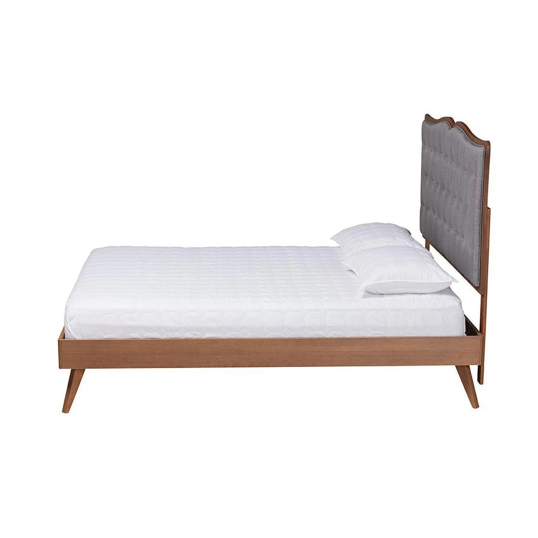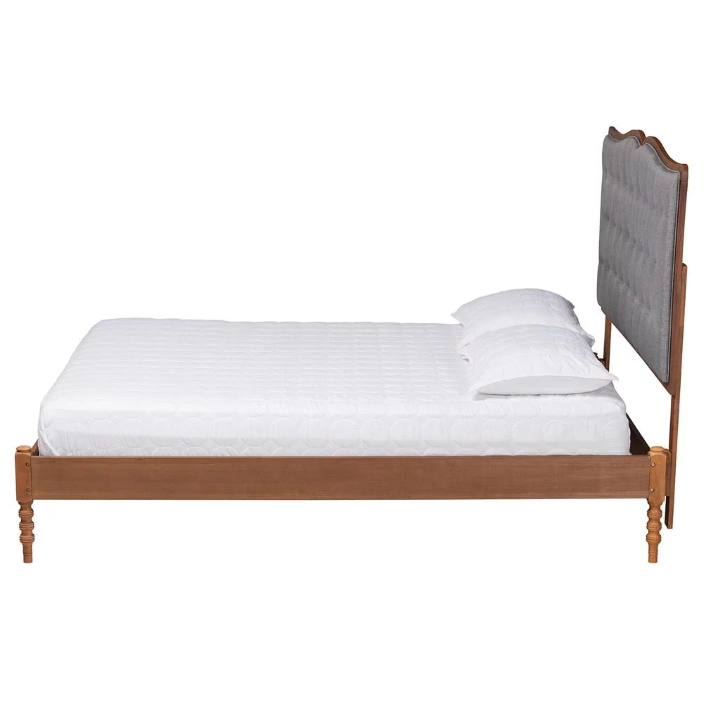 Baxton Studio Bellini Gray Fabric and Walnut Brown Wood Queen Size Platform Bed