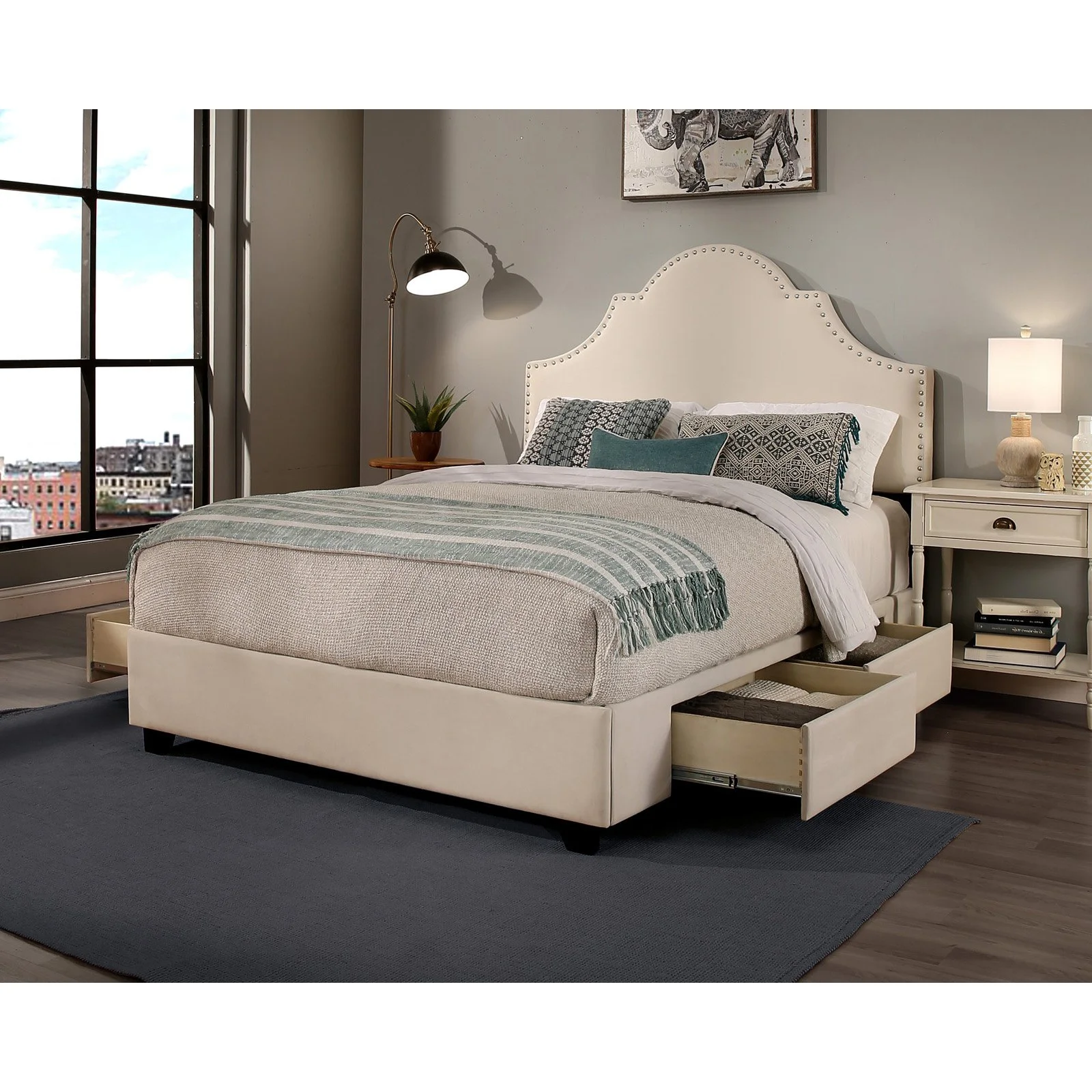 Republic Design House Audrey Upholstered "Steel-Core" Platform Bed with 4 Drawers