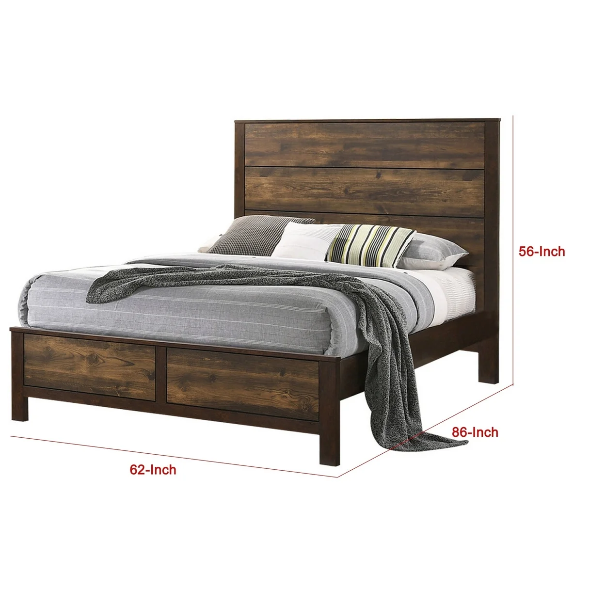 Roki Platform Queen Size Bed with Panel Design Rustic Dark Brown Finish- Saltoro Sherpi